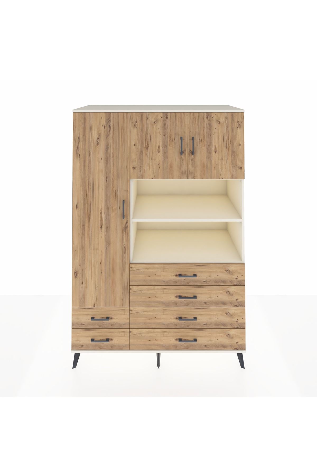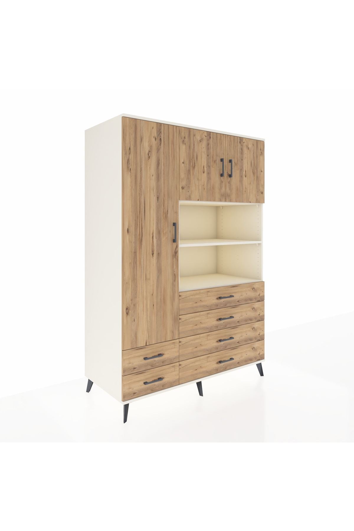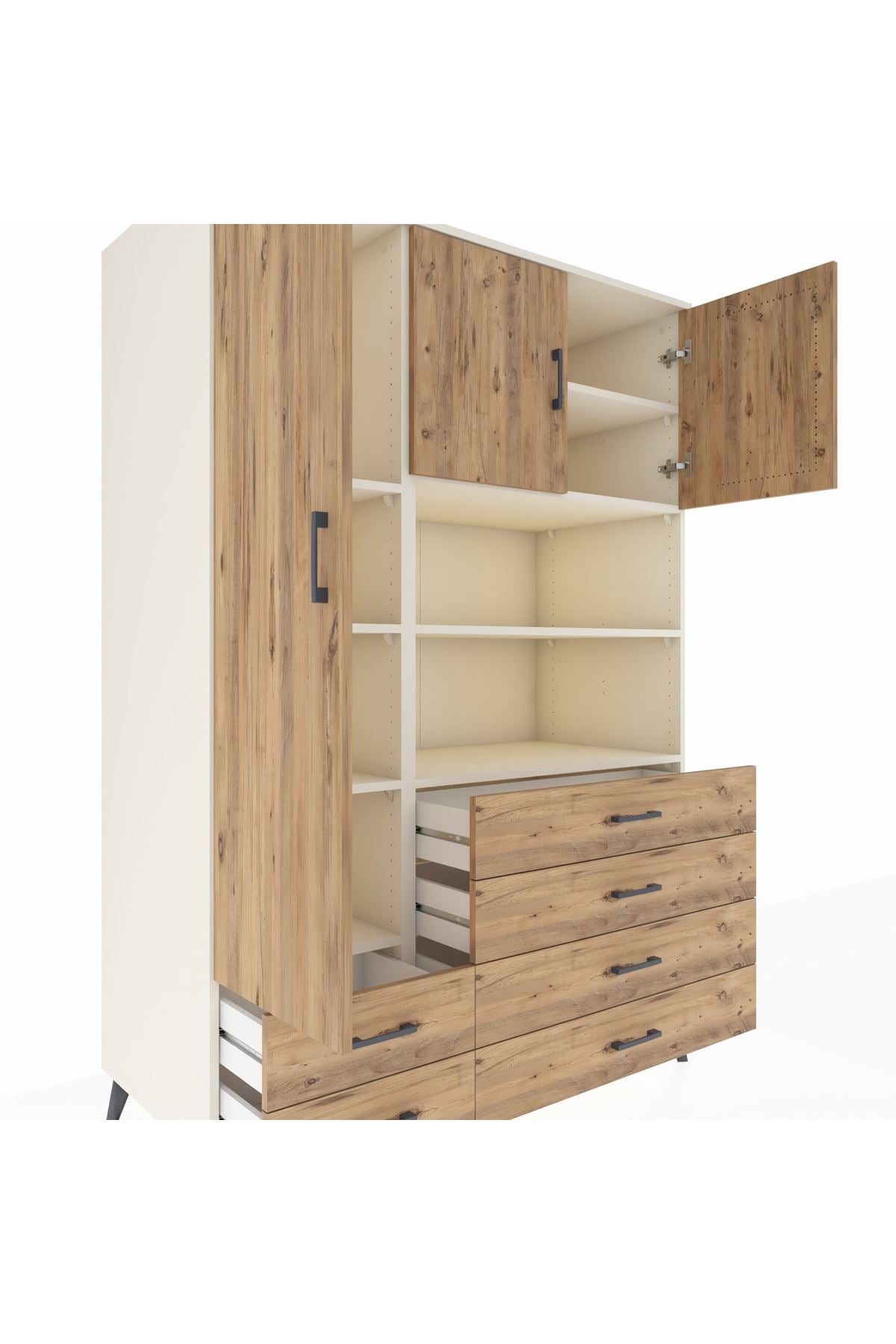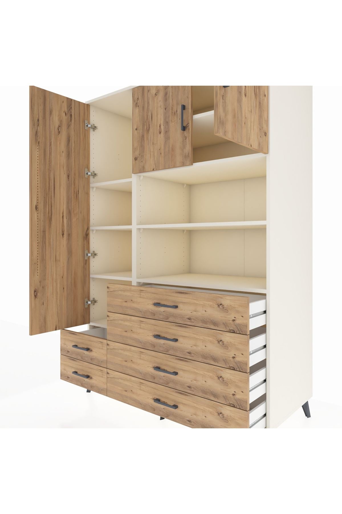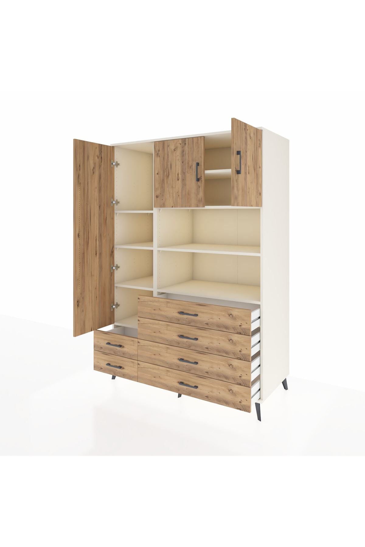 Kronos Dolap 8 Raflı 6 Çekmeceli 3 Kapaklı 132x59x195 Aytaşı-Çam/Çam