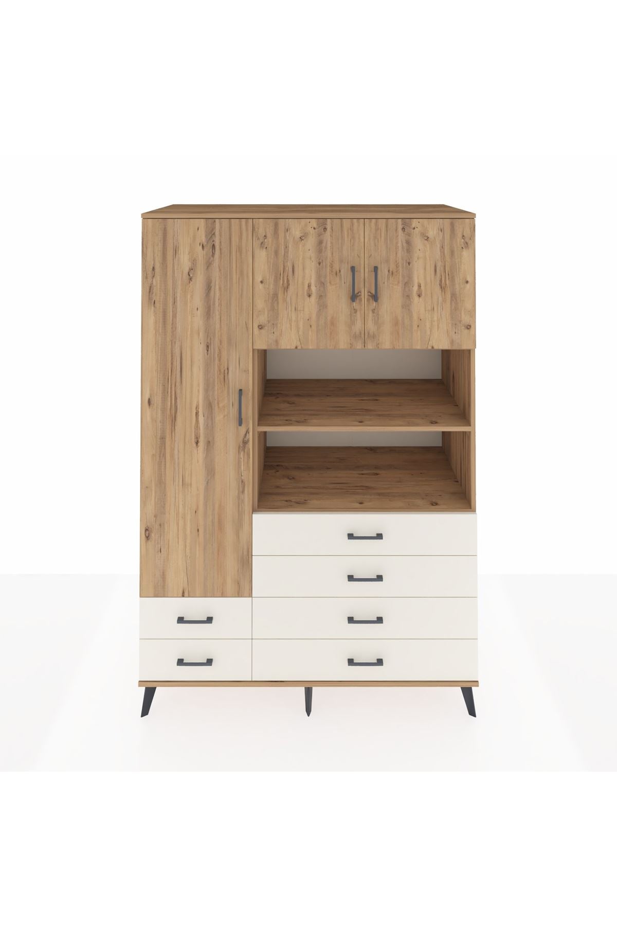 🌞 Kronos Dolap 8 Raflı 6 Çekmeceli 3 Kapaklı 132x59x195 Çam-Çam/Aytaşı