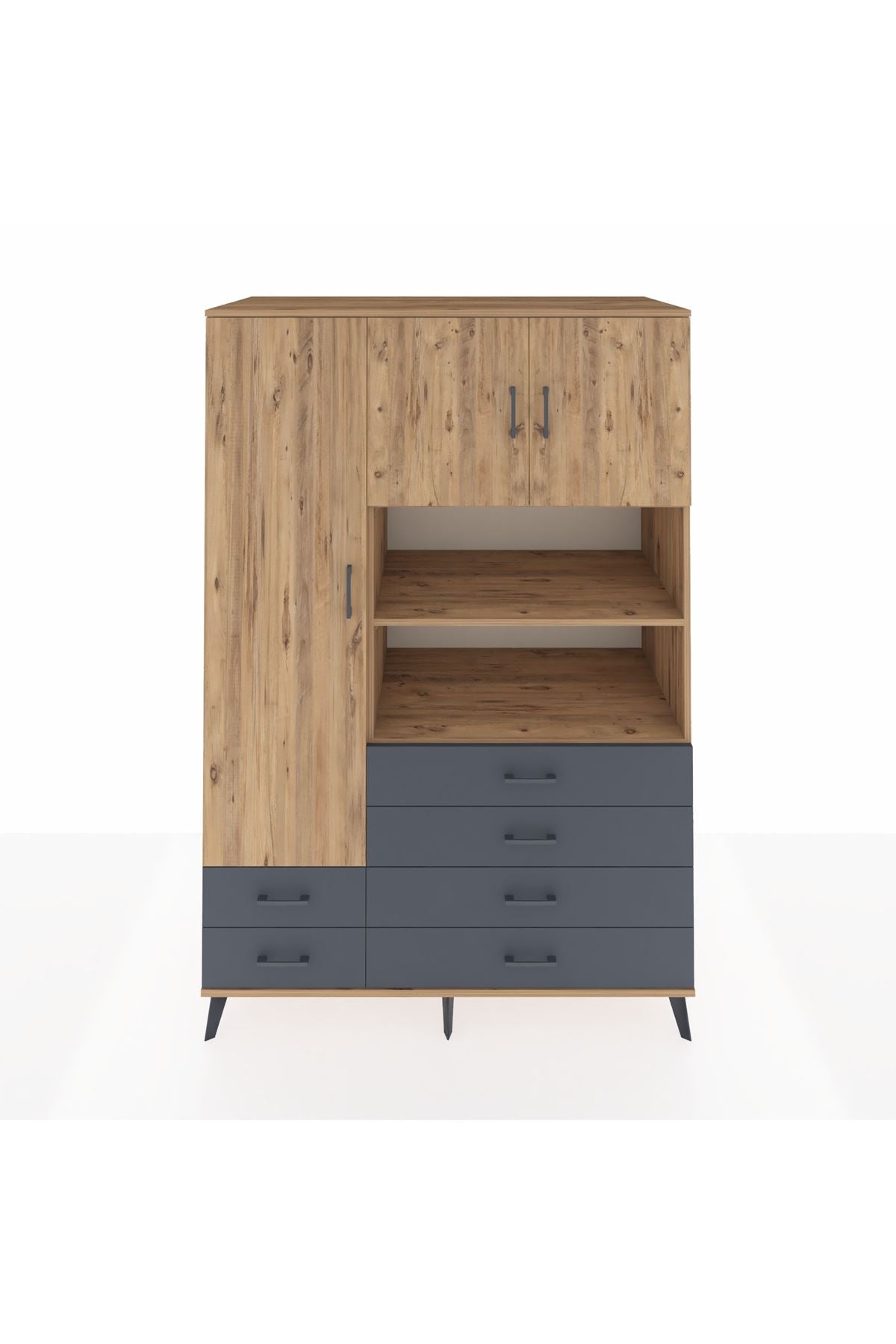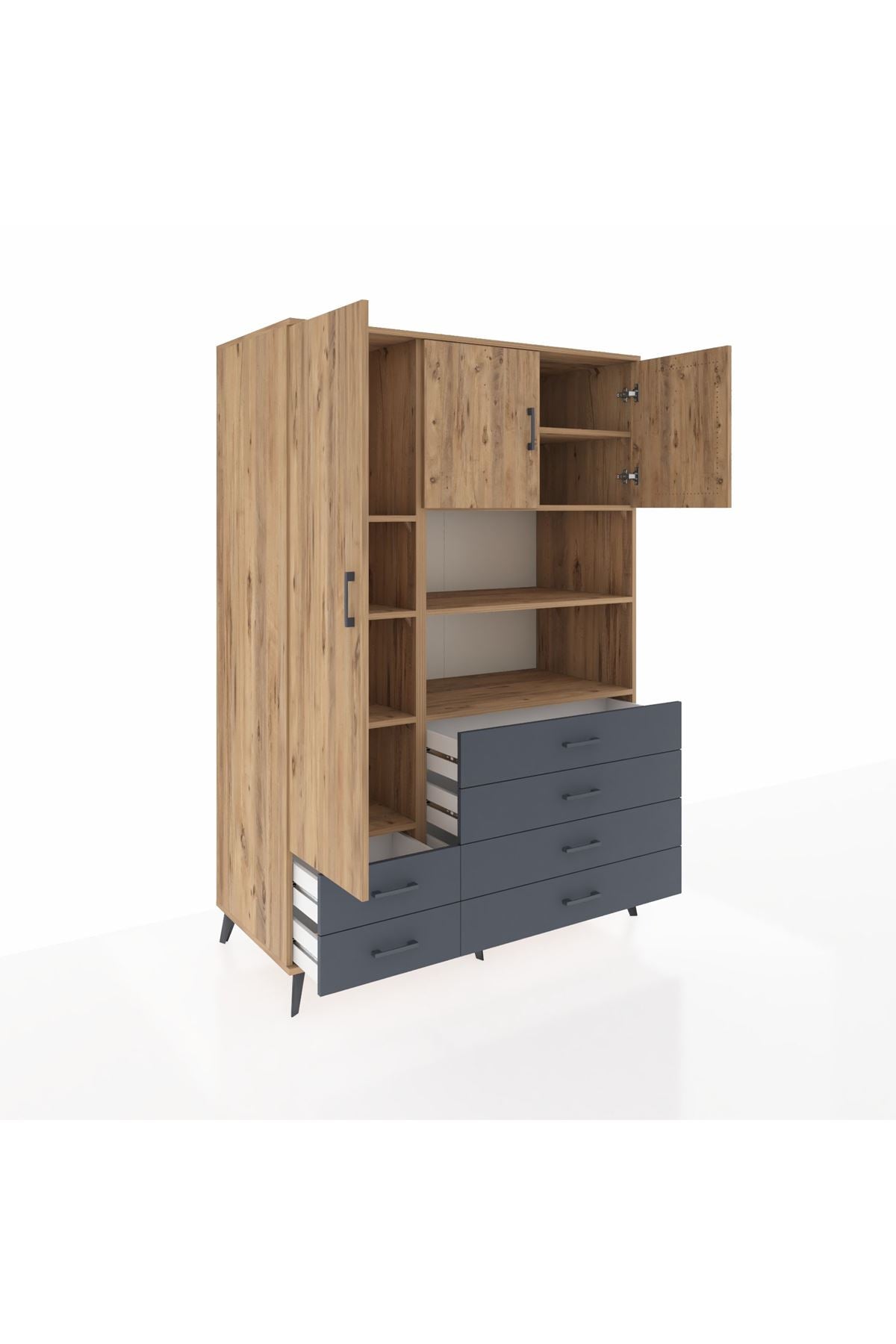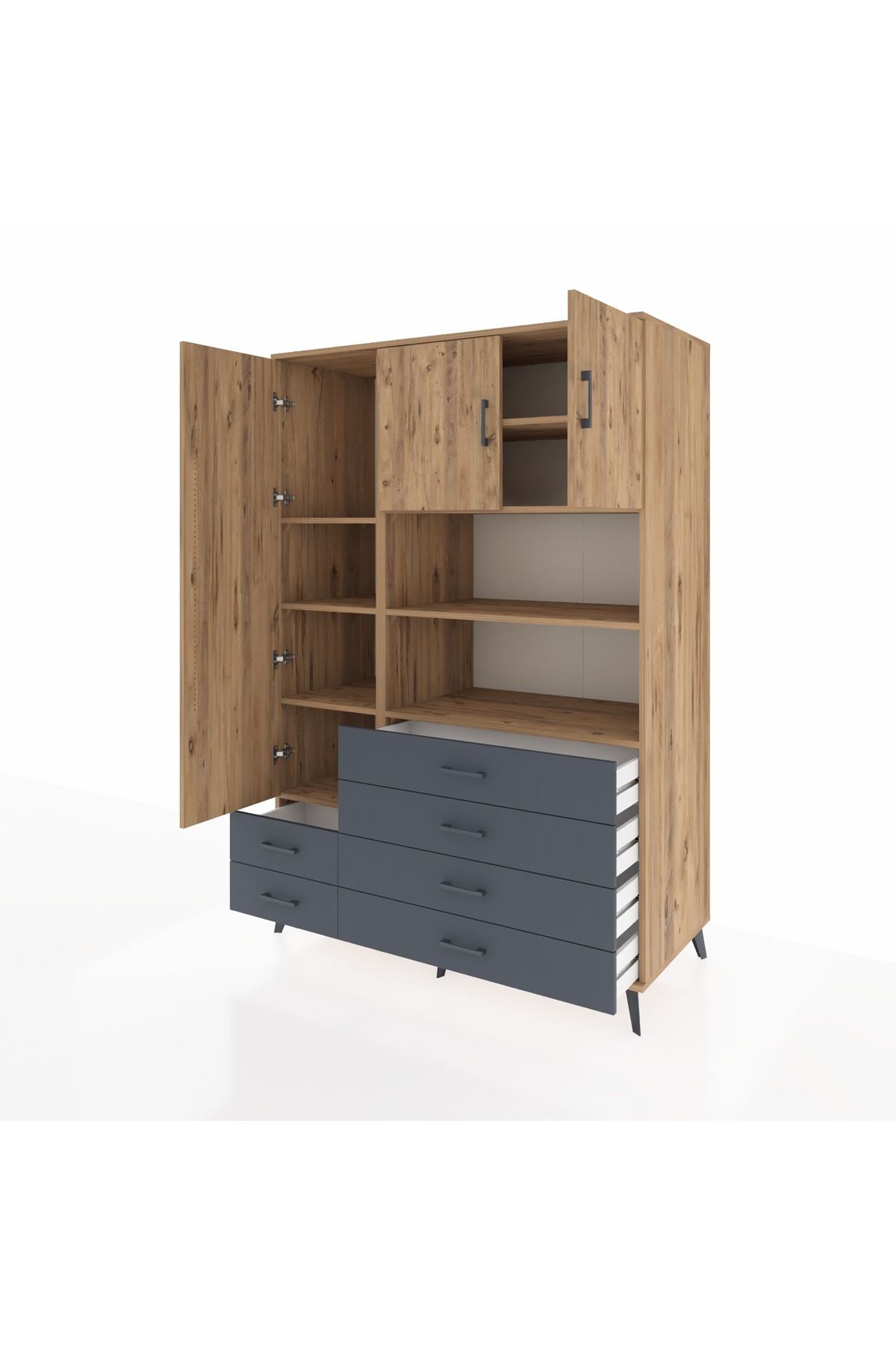 Kronos Dolap 8 Raflı 6 Çekmeceli 3 Kapaklı 132x59x195 Çam-Çam/Antrasit