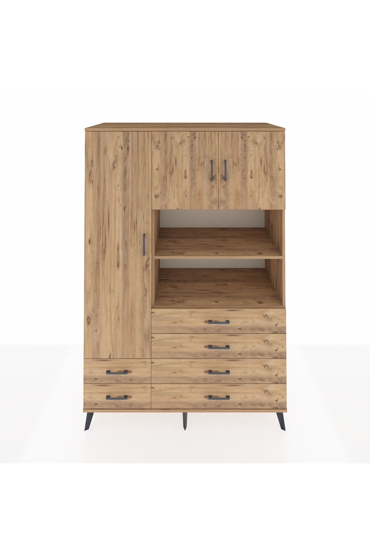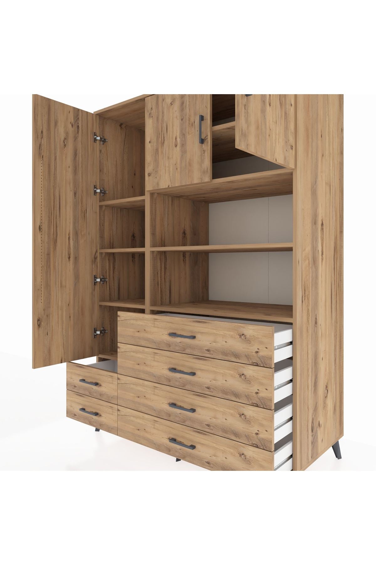 Kronos Dolap 8 Raflı 6 Çekmeceli 3 Kapaklı 132x59x195 Çam-Çam/Çam
