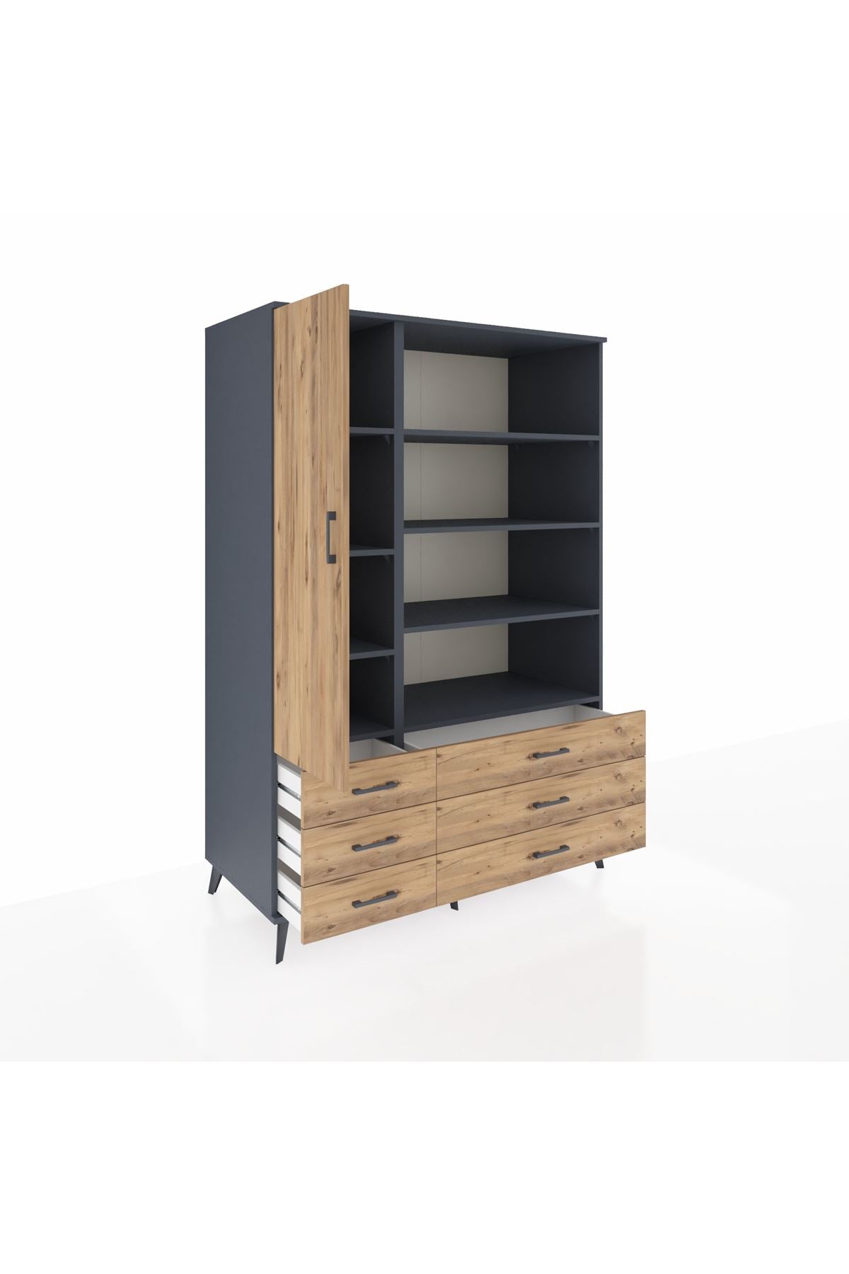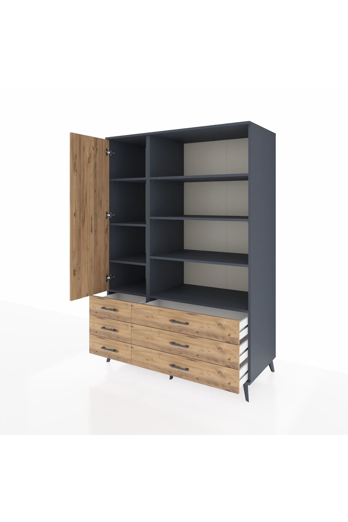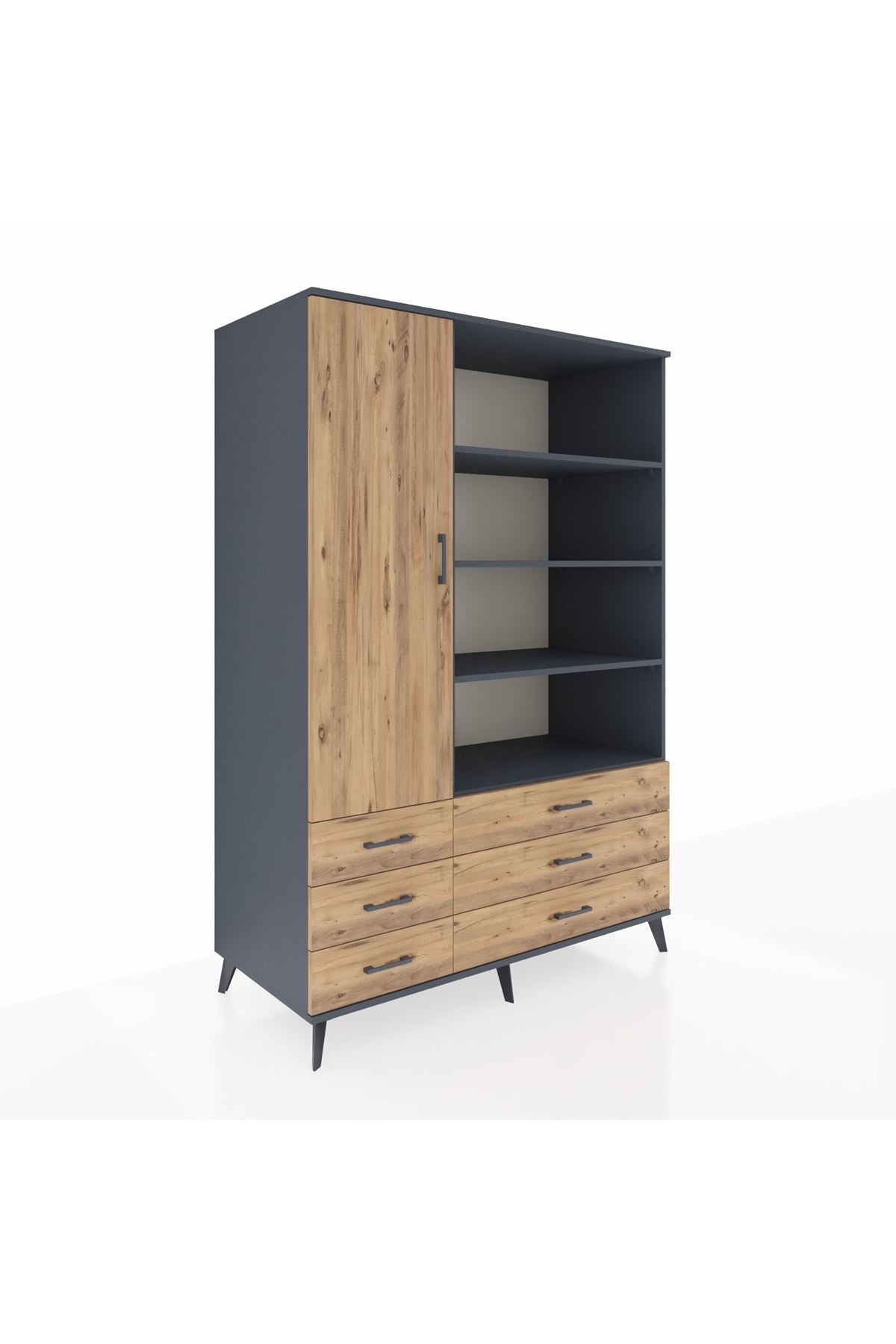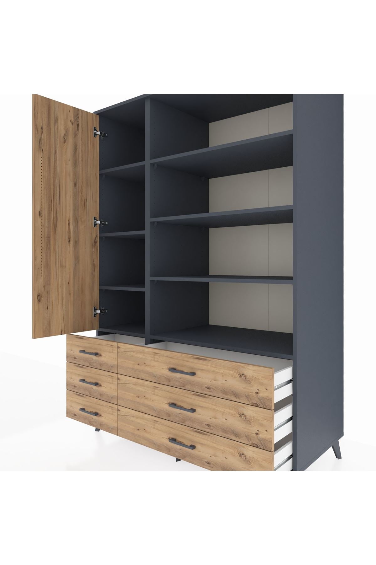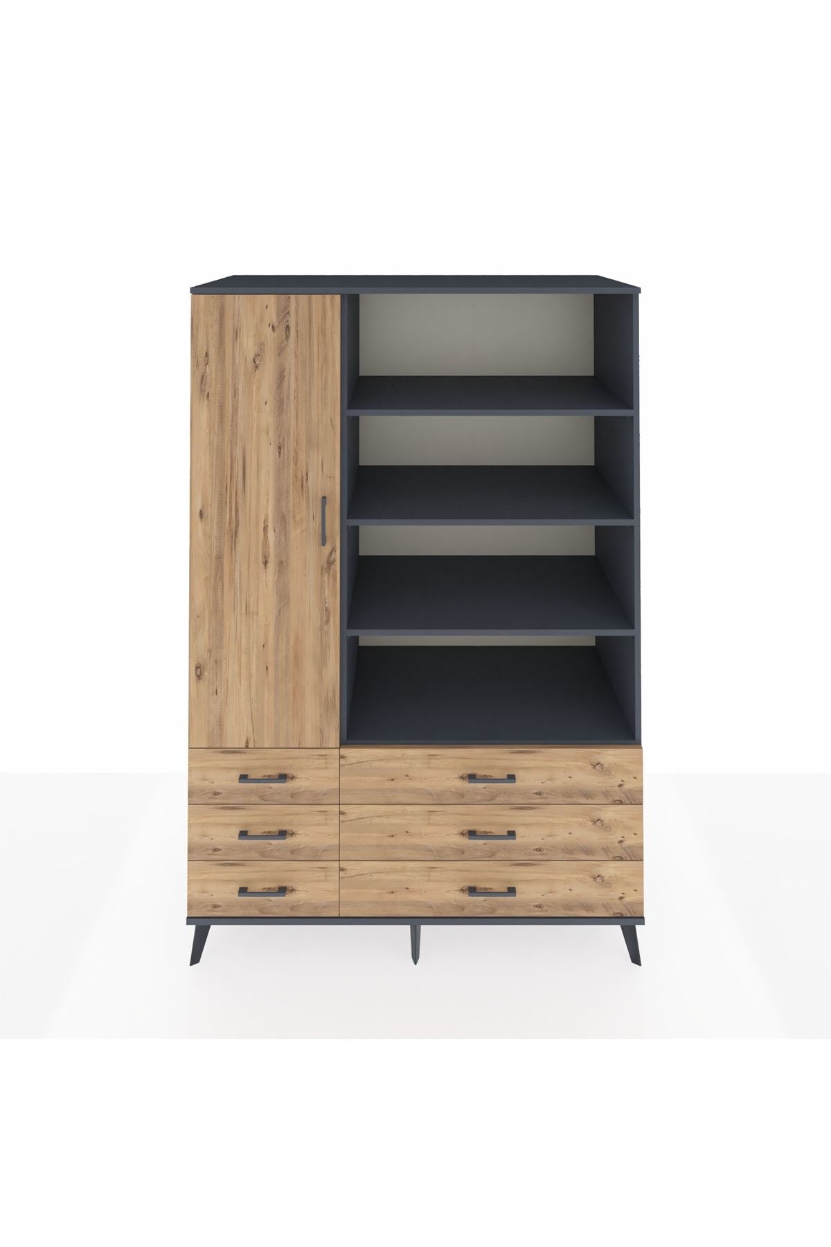 Kronos Dolap 8 Raflı 6 Çekmeceli Tek Kapaklı 132x59x195 Antrasit-Çam/Çam