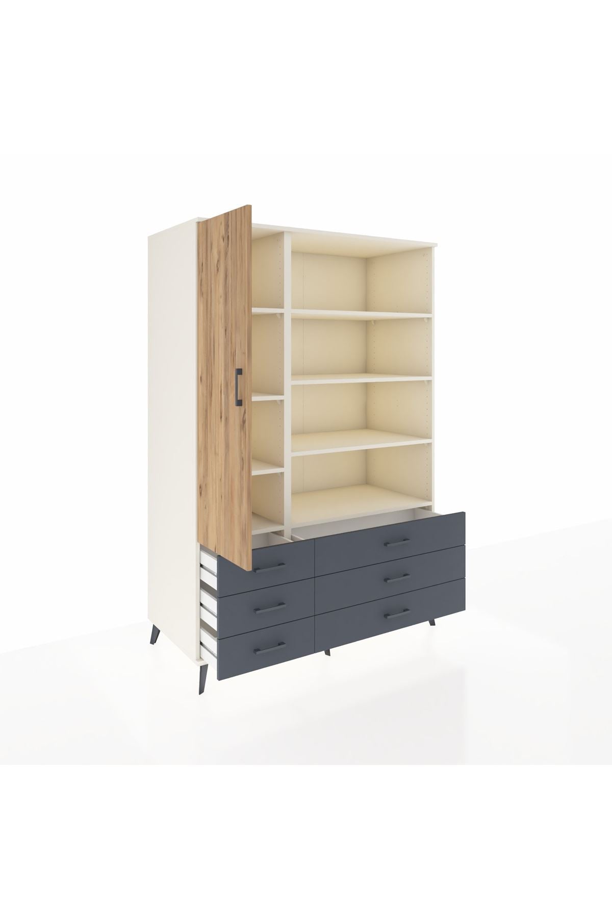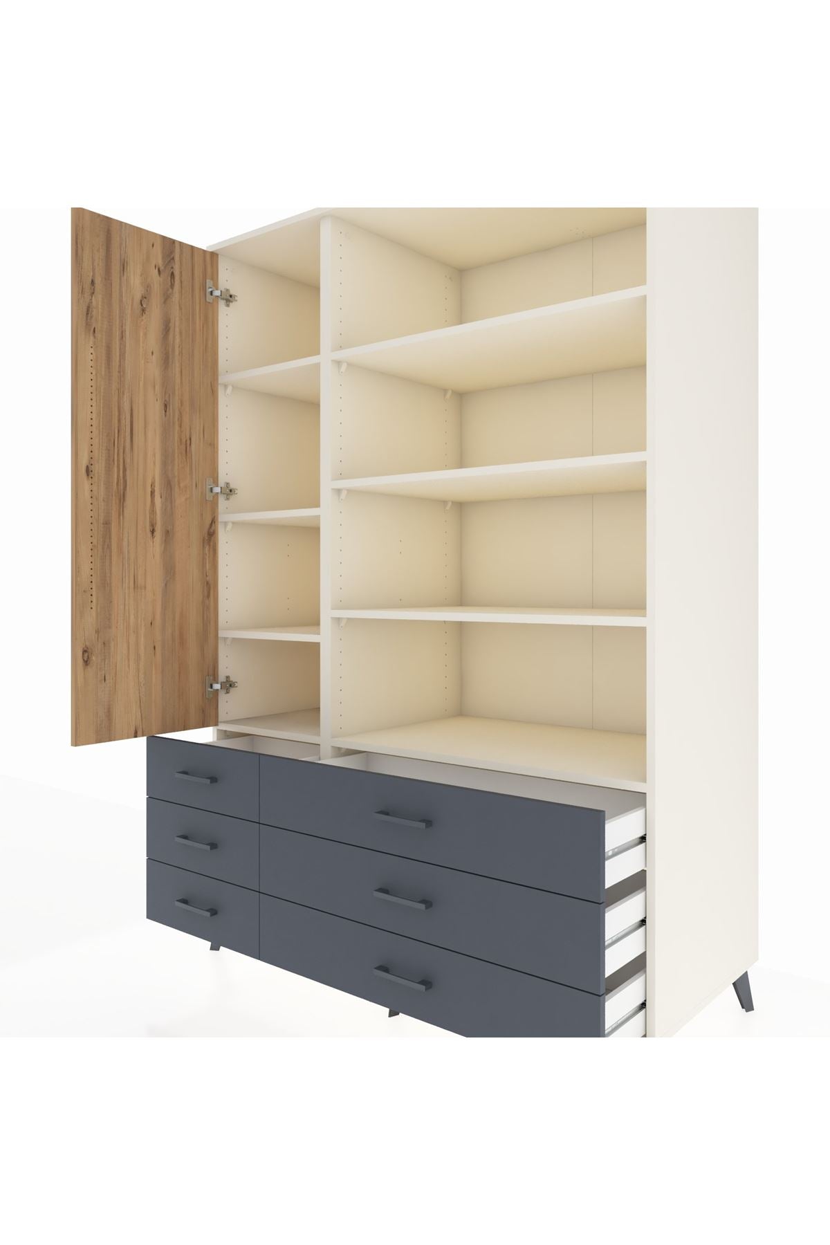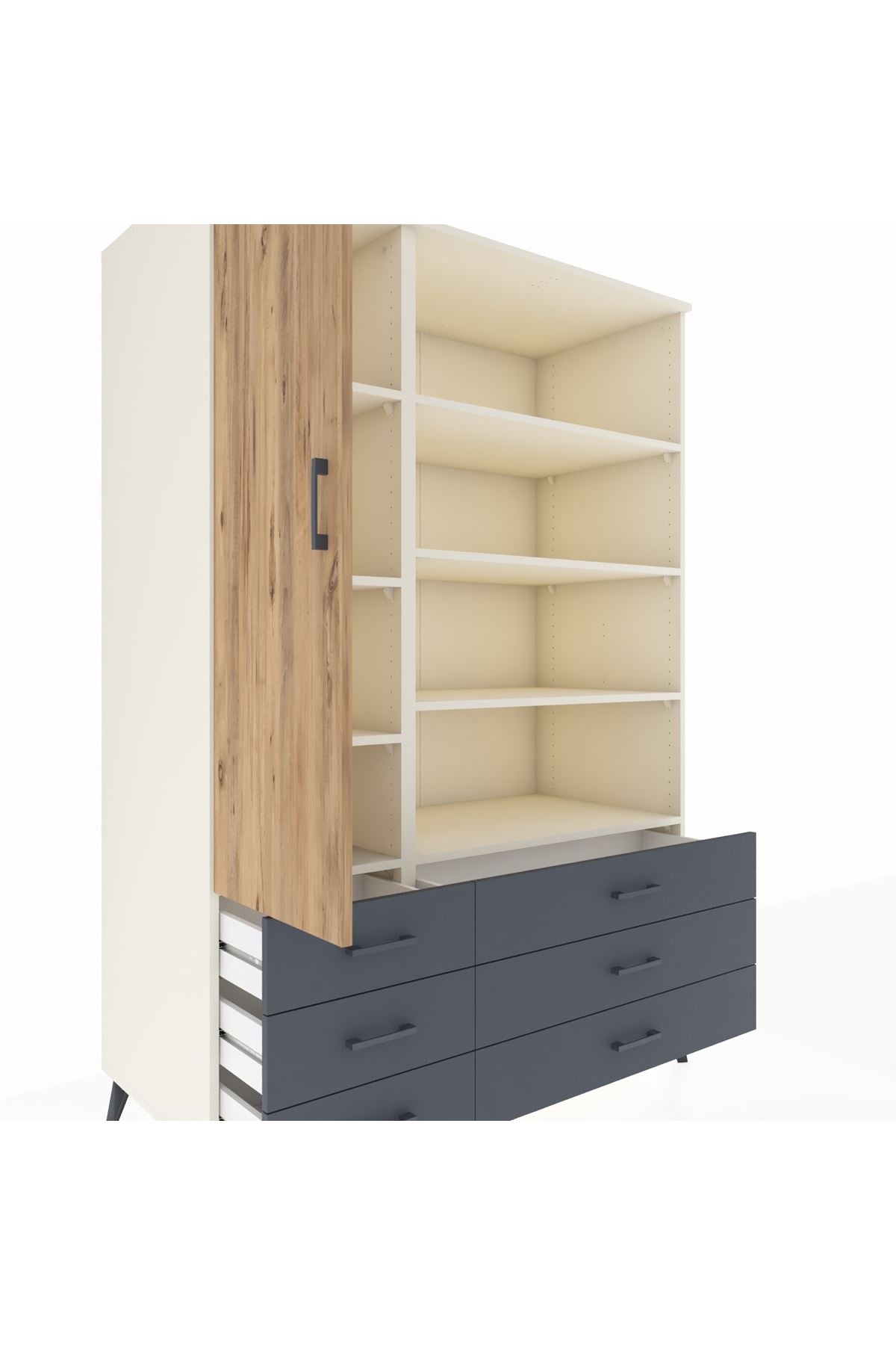 8 geniş raf ve 6 kullanışlı çekmece ile hem kıyafetlerinizi hem de evinizin tüm ihtiyaçlarını kolayca organize edebilirsiniz.