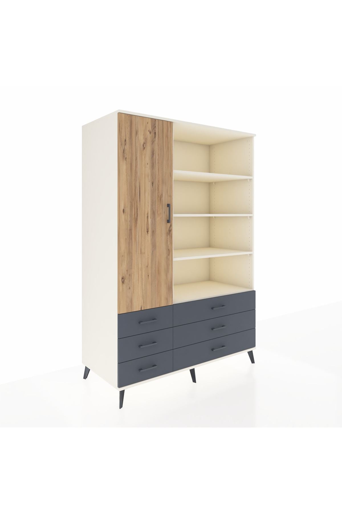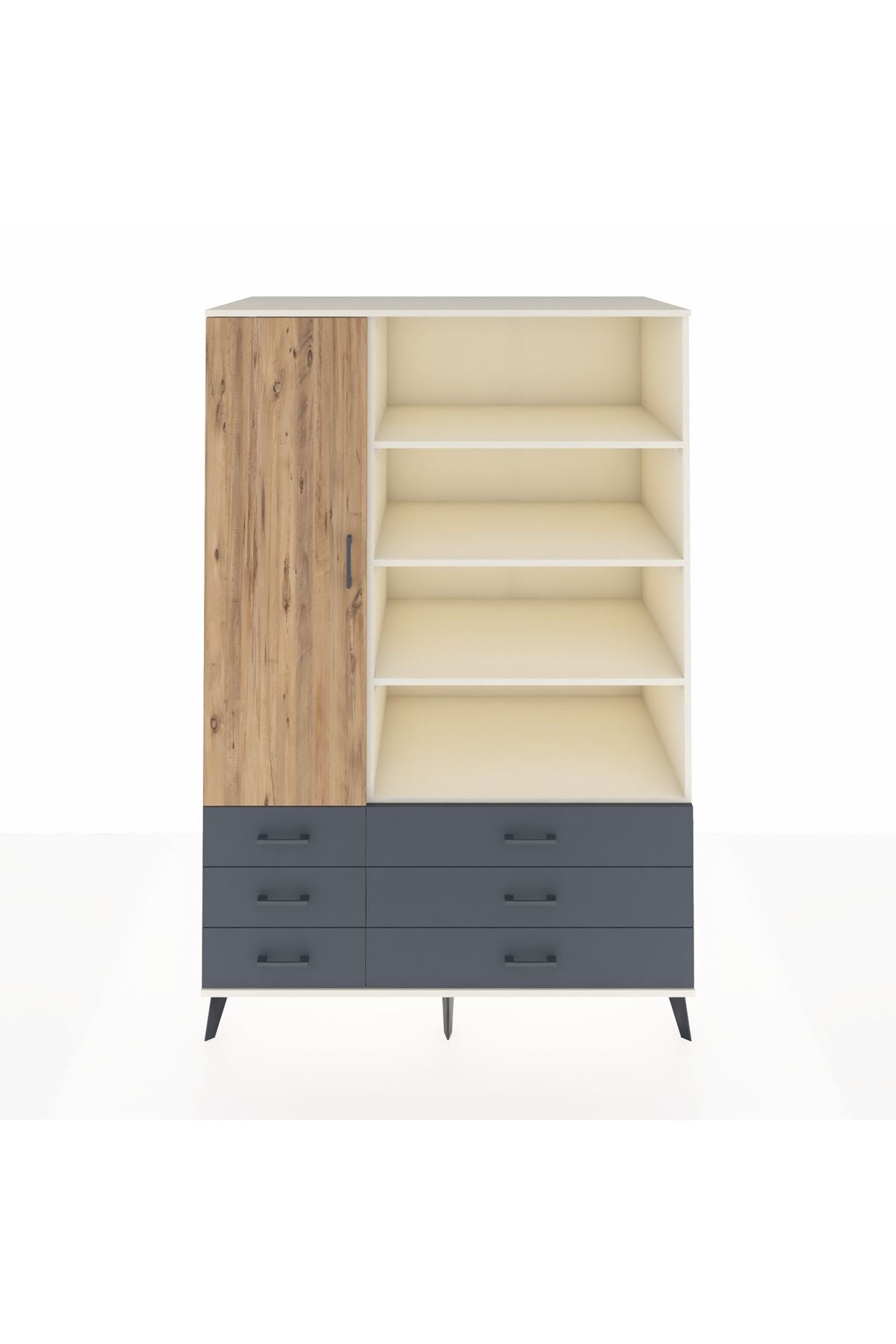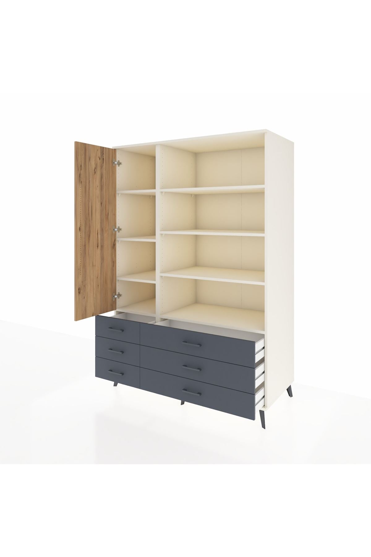 8 geniş raf ve 6 kullanışlı çekmece ile hem kıyafetlerinizi hem de evinizin tüm ihtiyaçlarını kolayca organize edebilirsiniz.