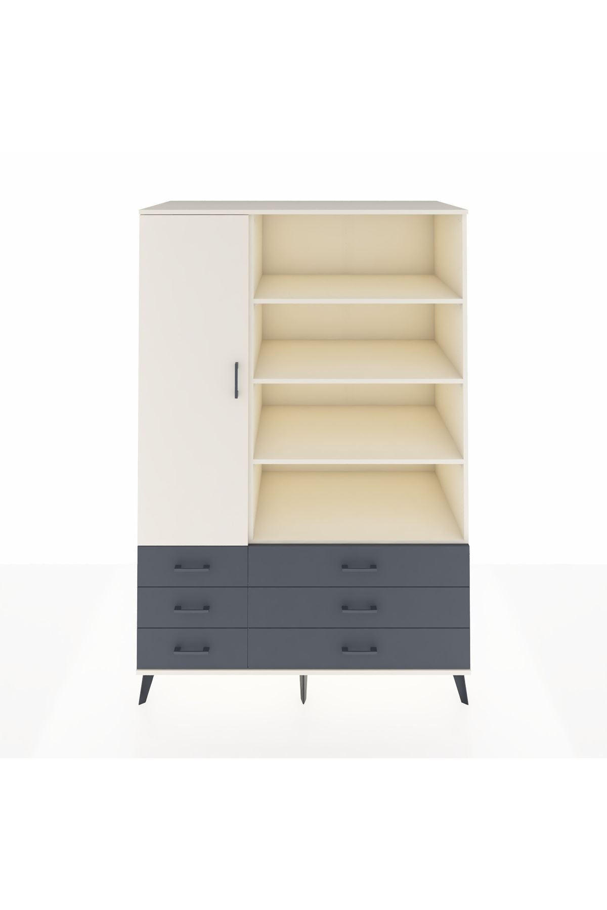 Kronos Dolap 8 Raflı 6 Çekmeceli Tek Kapaklı 132x59x195 Aytaşı-Aytaşı/Antrasit