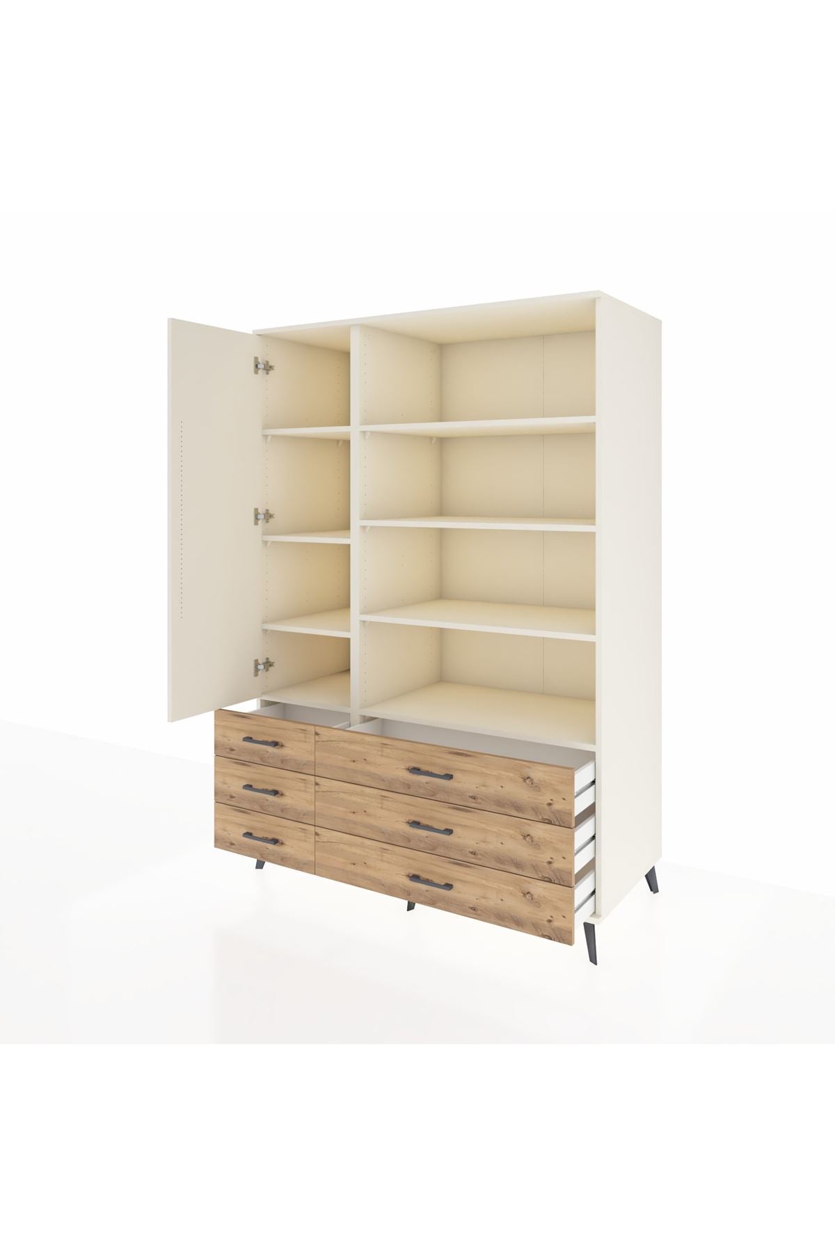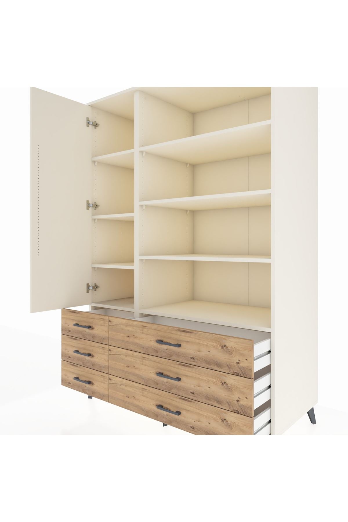 Kronos Dolap 8 Raflı 6 Çekmeceli Tek Kapaklı 132x59x195 Aytaşı-Aytaşı/Çam