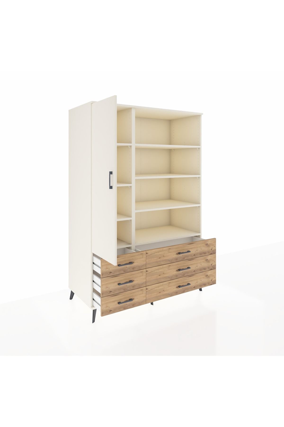 - 🛏️ Yatak odası dolabı: Geniş hacmiyle yatak odası eşyaları için ideal depolama.