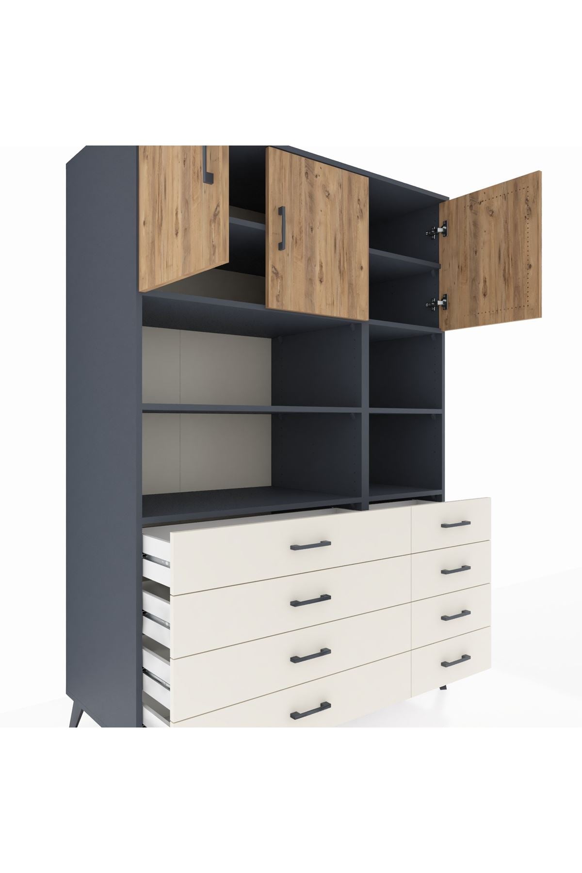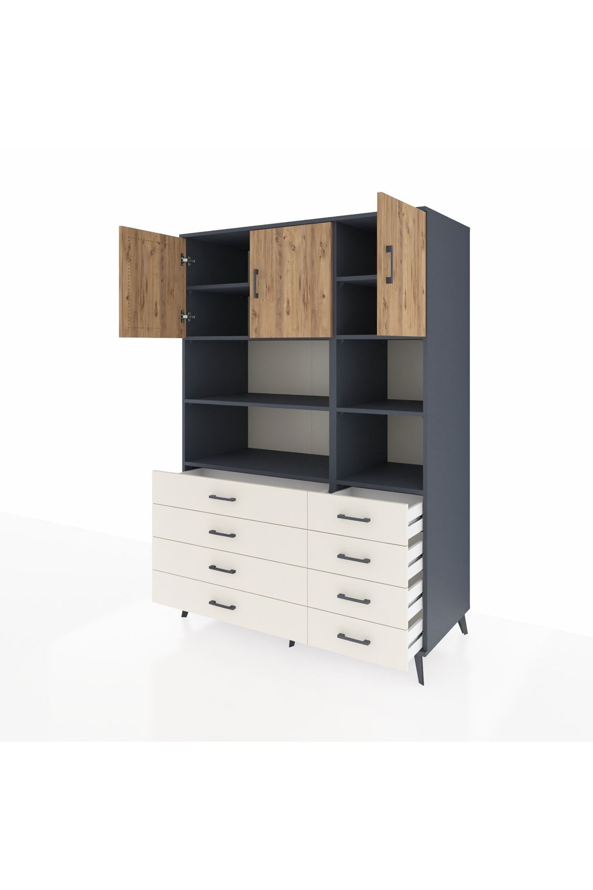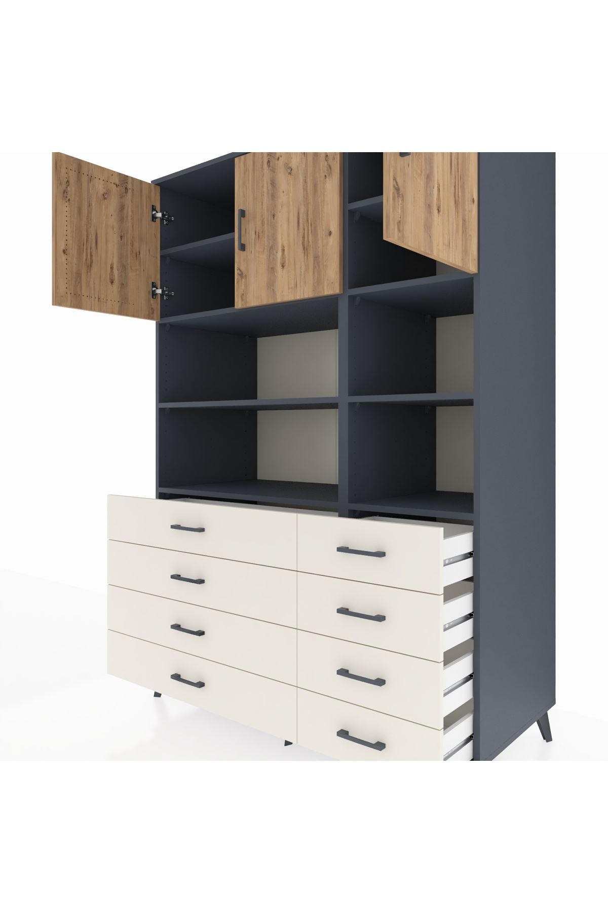 Kronos Dolap 8 Raflı 8 Çekmeceli 3 Kapaklı 132x59x195 Antrasit-Çam/Aytaşı