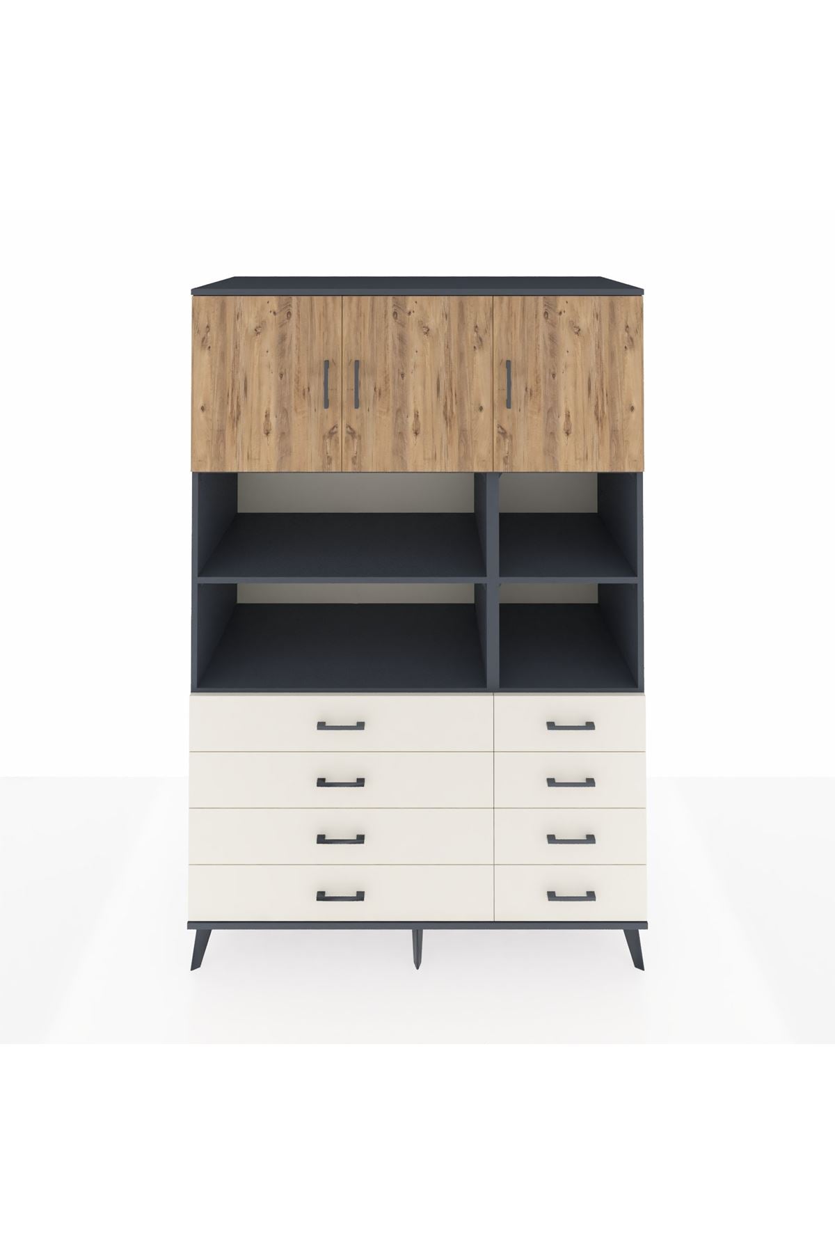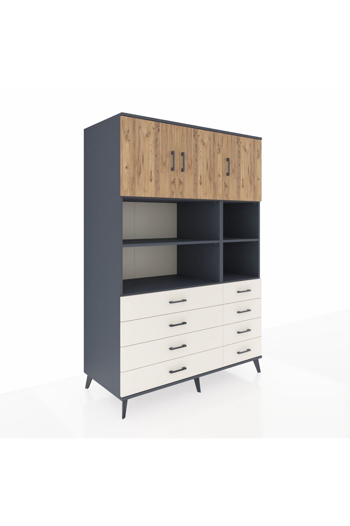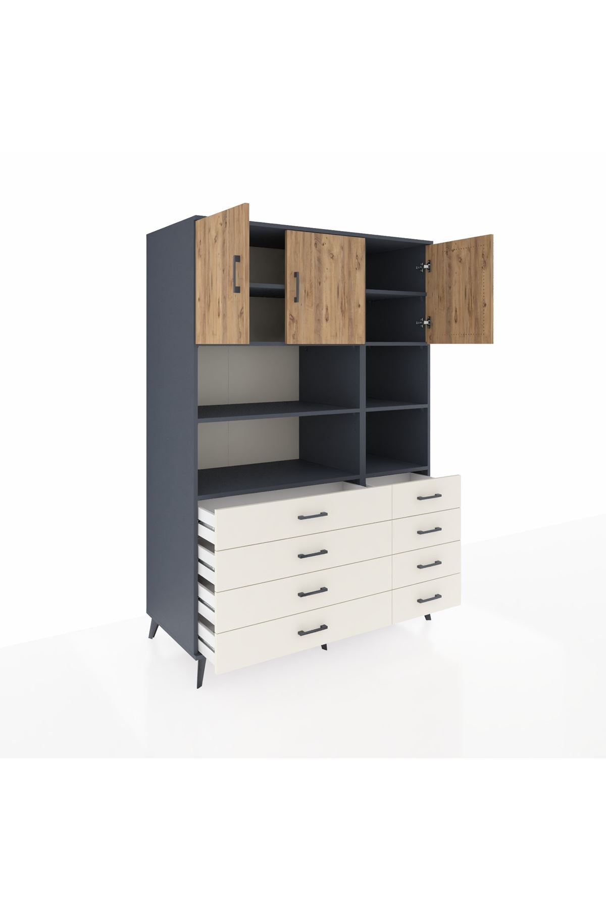 Kronos Dolap 8 Raflı 8 Çekmeceli 3 Kapaklı 132x59x195 Antrasit-Çam/Aytaşı
