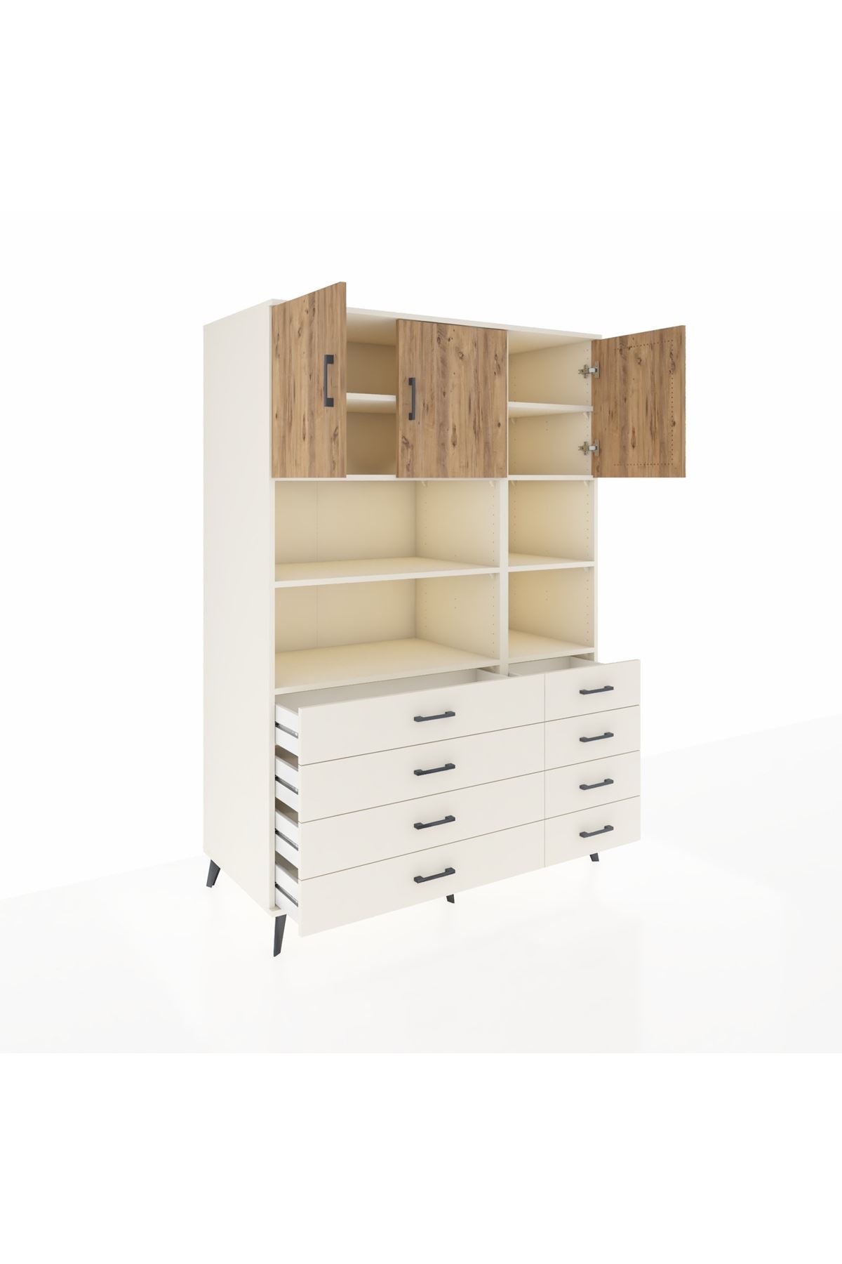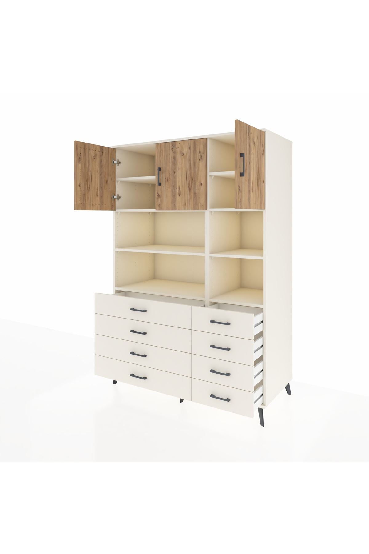 Kronos Dolap 8 Raflı 8 Çekmeceli 3 Kapaklı 132x59x195 Aytaşı-Çam/Aytaşı