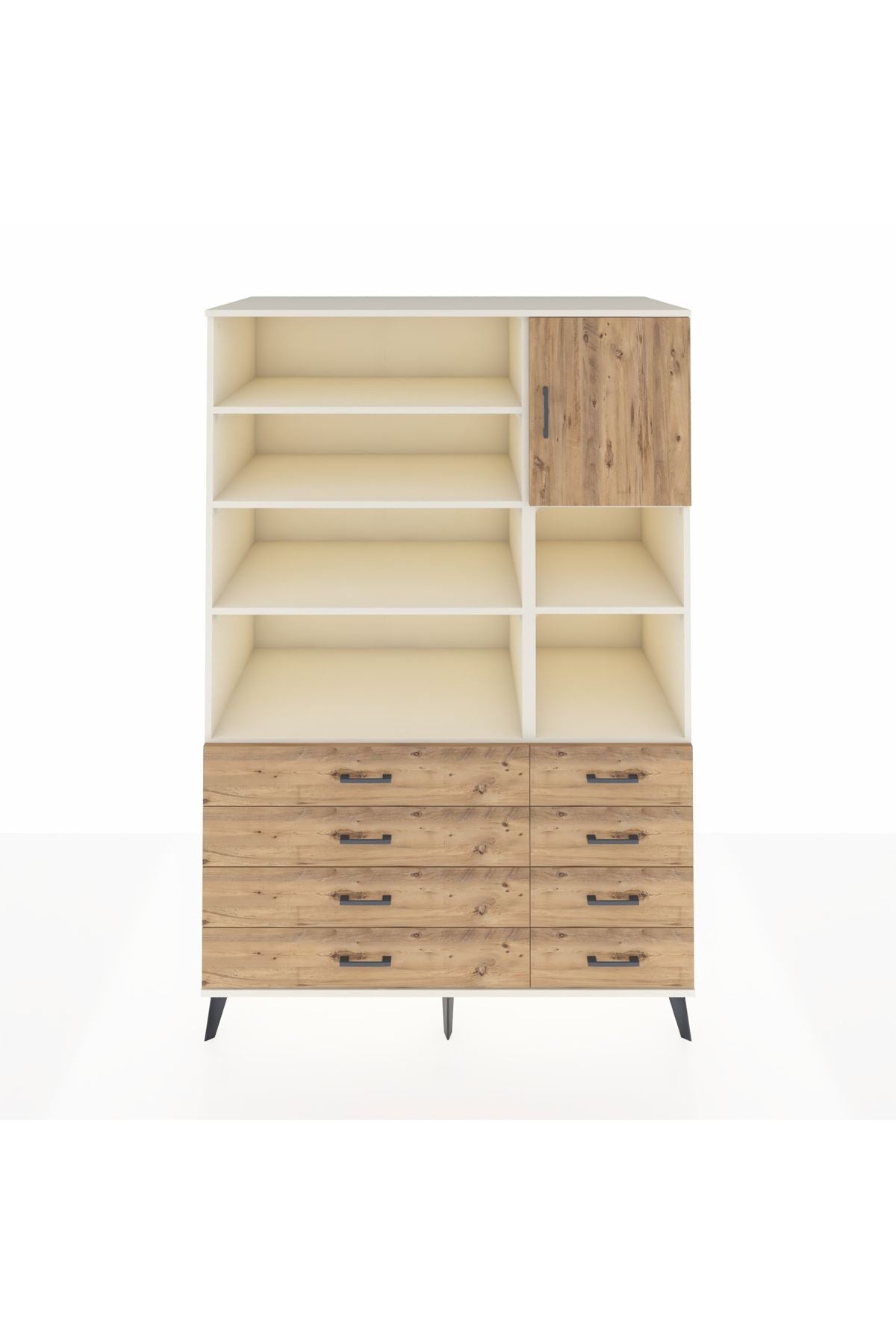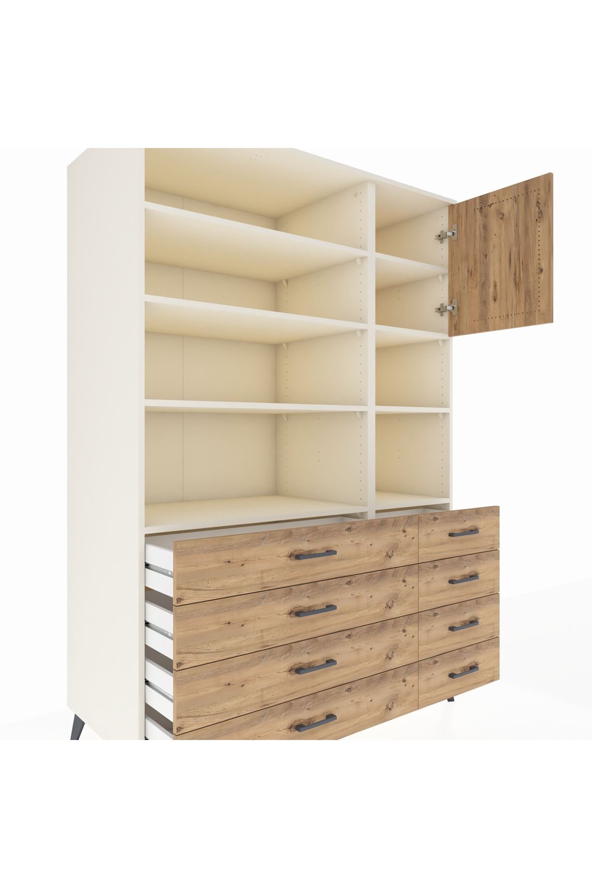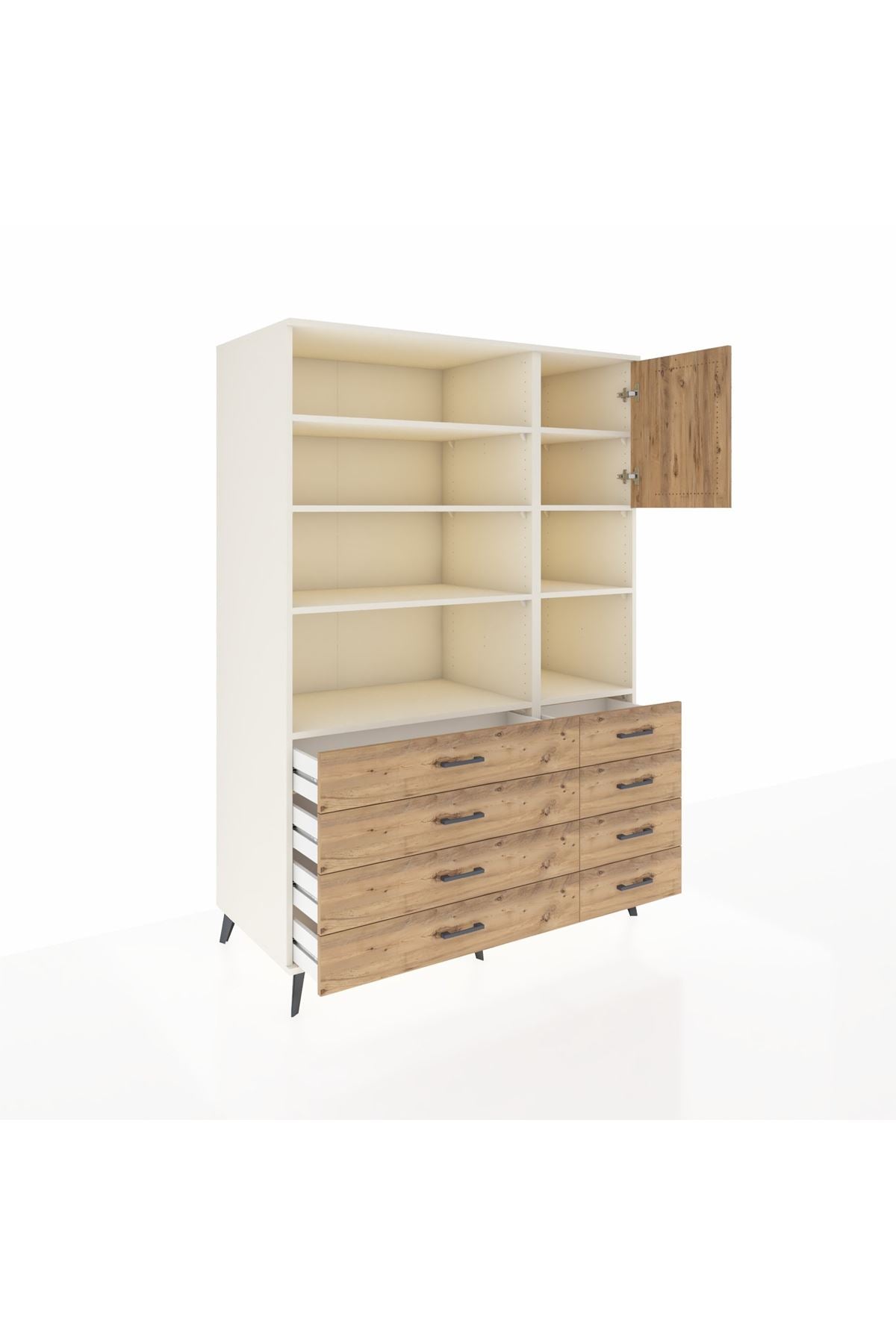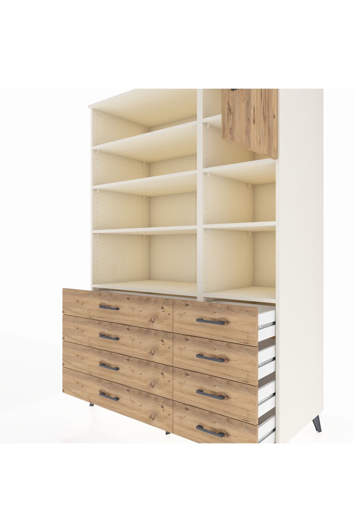 Kronos Dolap 8 Raflı 8 Çekmeceli Tek Kapaklı 132x59x195 Aytaşı-Çam/Çam