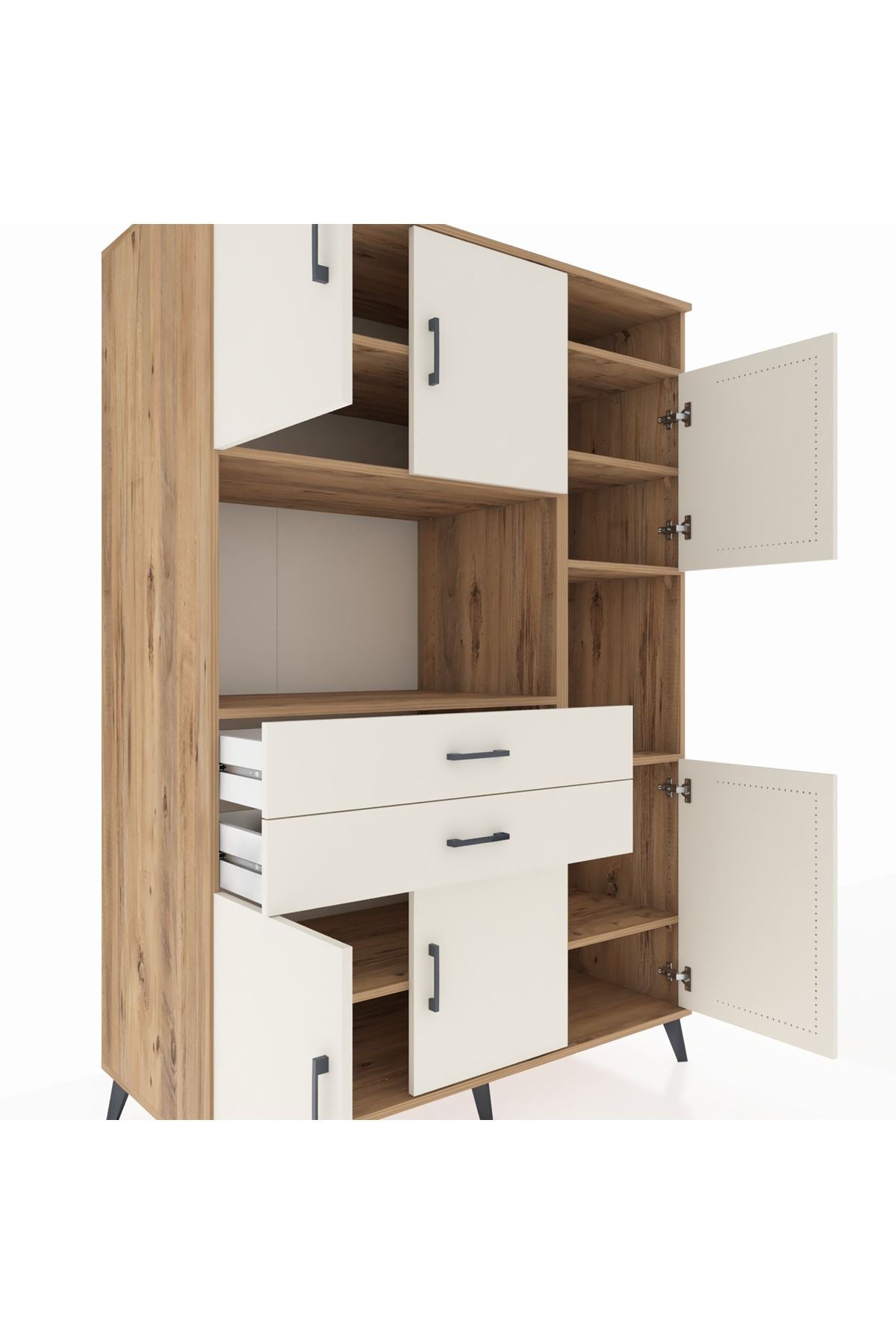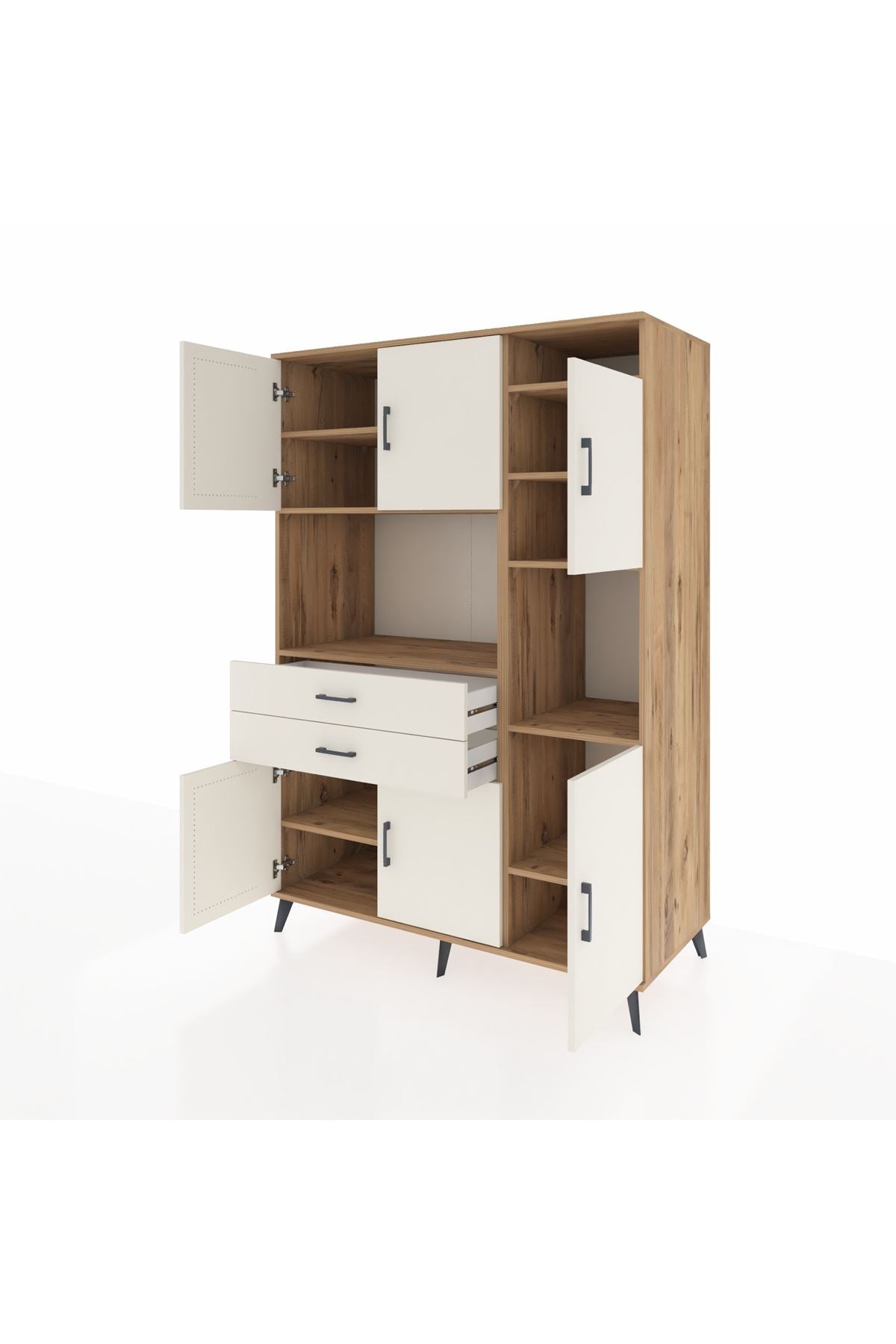 🪑 Kronos Dolap 9 Raflı 2 Çekmeceli 6 Kapaklı – 132x59x195 CM – Çam-Aytaşı/Aytaşı Renkleriyle Fark Yaratıyor!