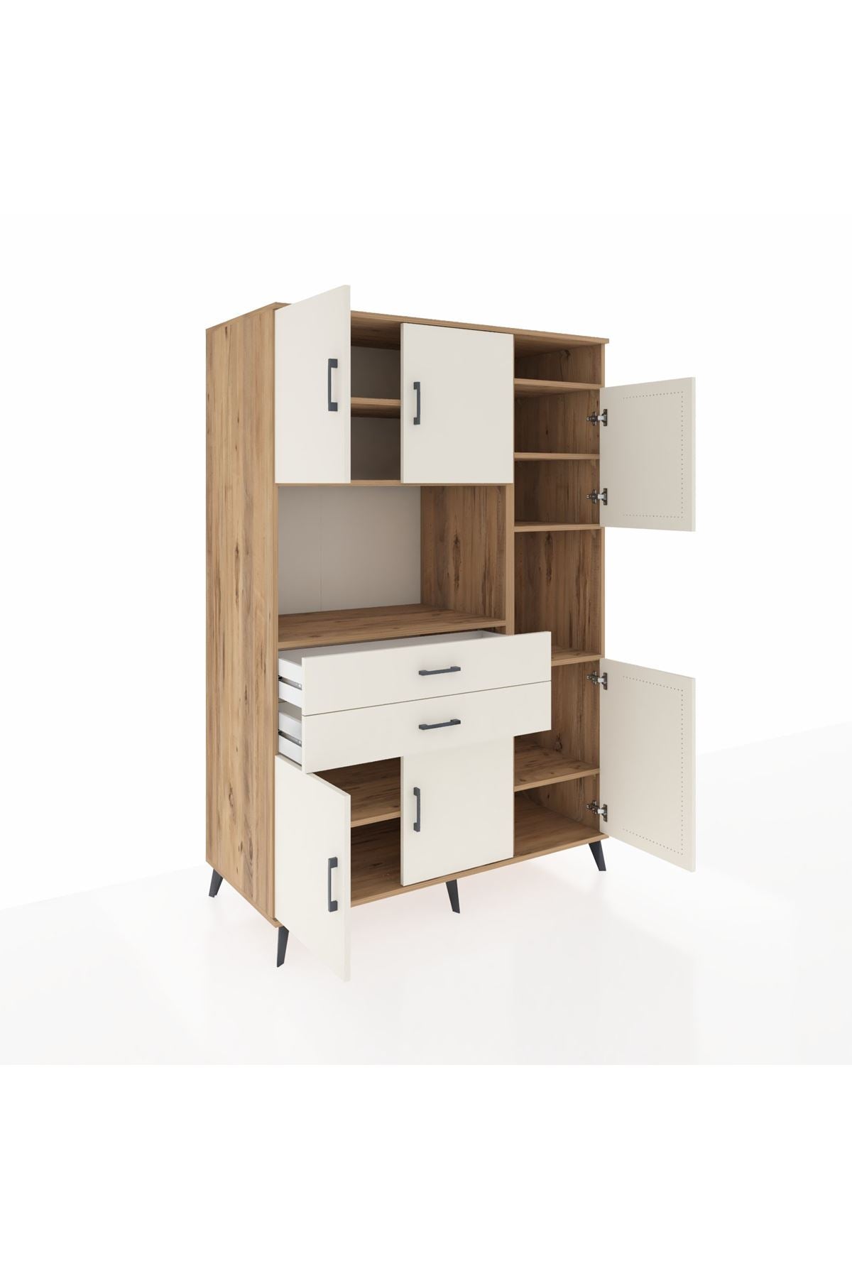 Kronos Dolap 9 Raflı 2 Çekmeceli 6 Kapaklı 132x59x195 Çam-Aytaşı/Aytaşı