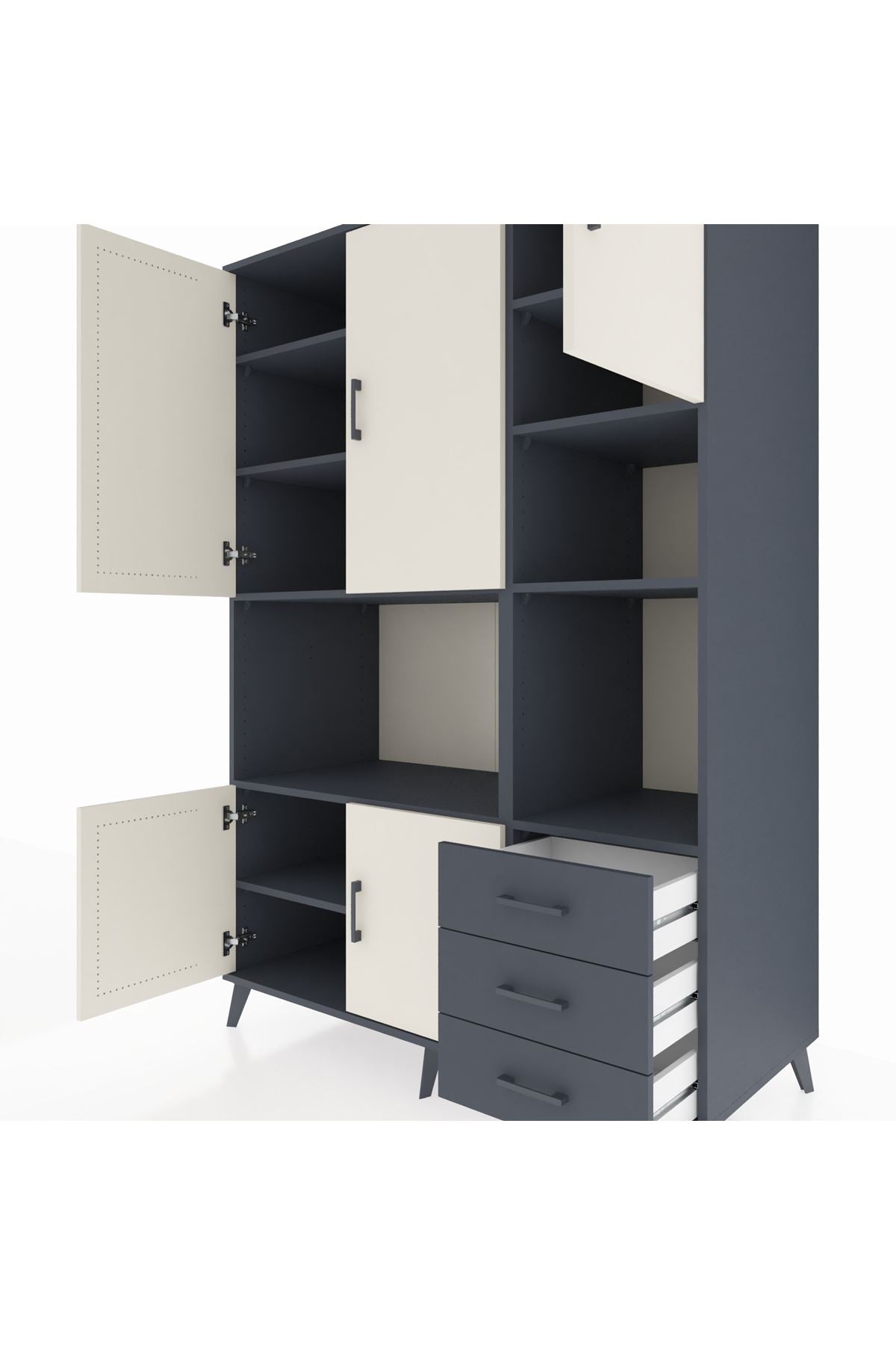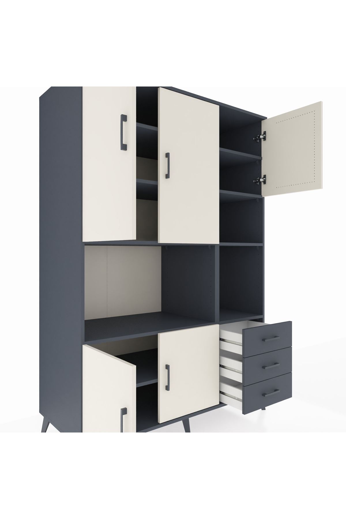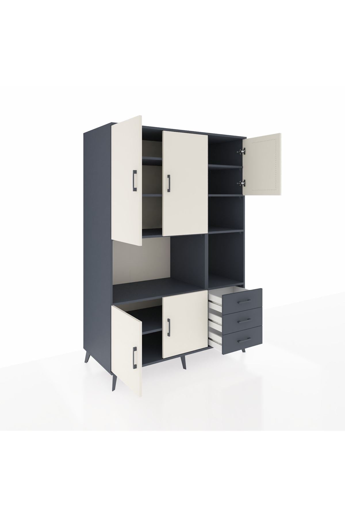 Geniş iç hacmi ile 9 adet raf, 3 kullanışlı çekmece ve 5 kapak sunar. 🗄️ Her türlü ev eşyası, giysi veya ofis dosyaları için ideal depolama çözümleri sağlar.