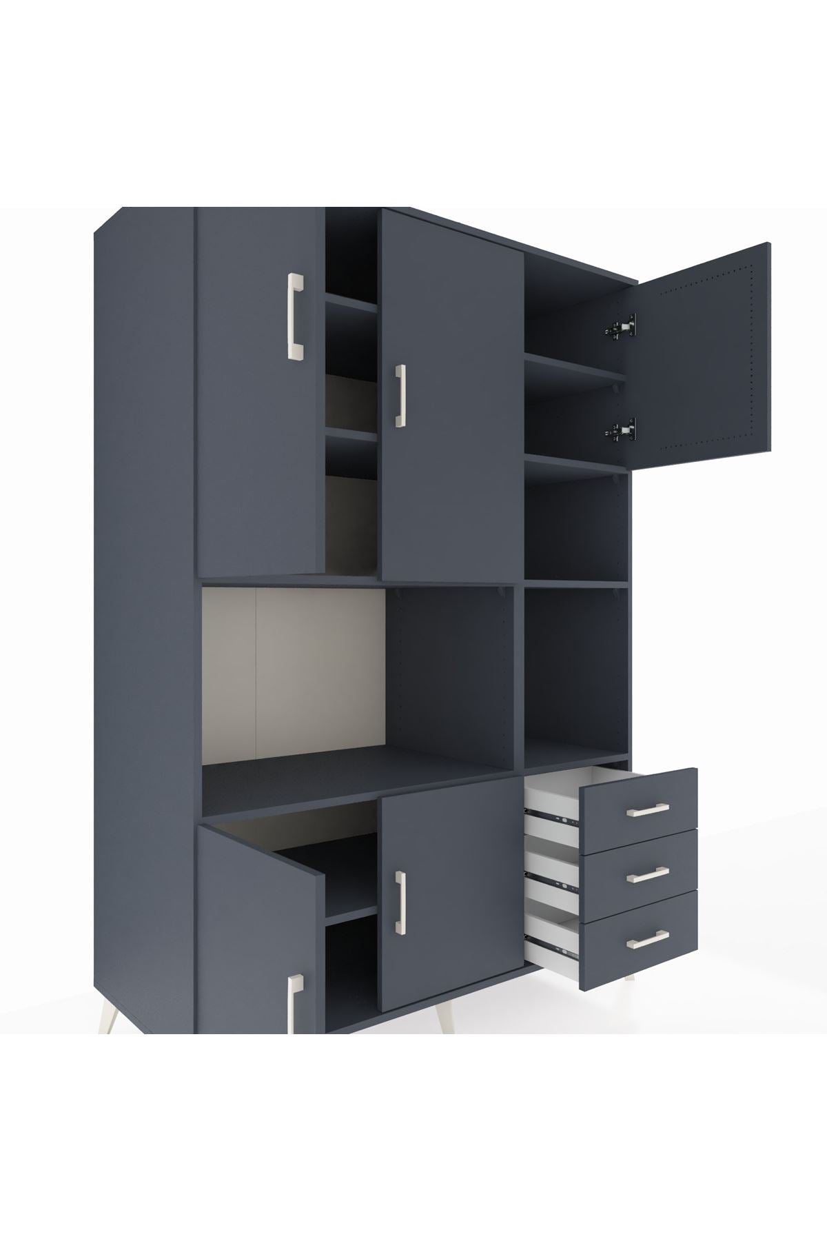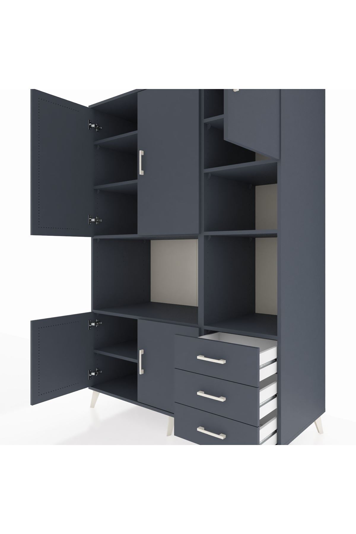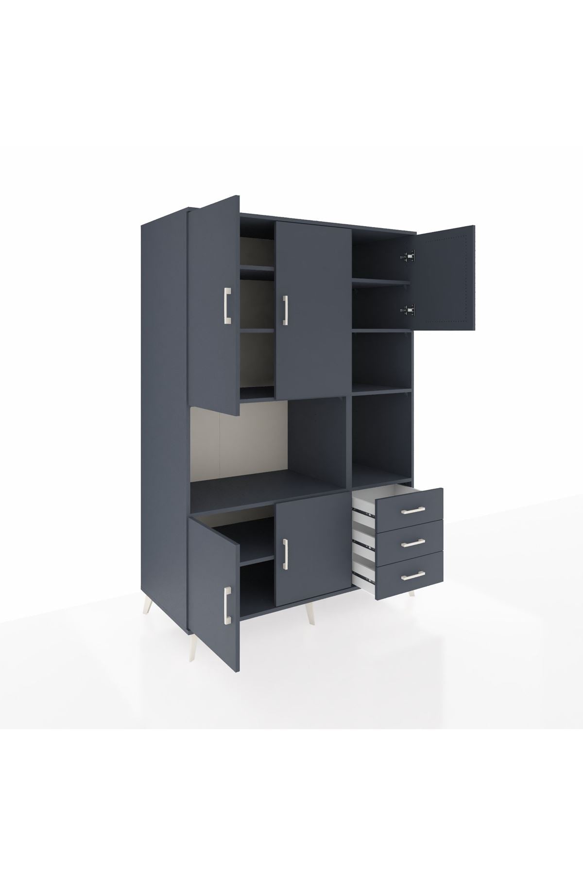 Kronos Dolap, evinizin her köşesine düzen ve şıklık katmak için özel olarak geliştirildi. Geniş depolama alanı, 9 adet rafı, 3 çekmecesi ve 5 kapaklı yapısıyla çok amaçlı kullanım sunar. Antrasit tonlarının zamansız asaletiyle, modern dekorasyonlara mükemmel uyum sağlar.