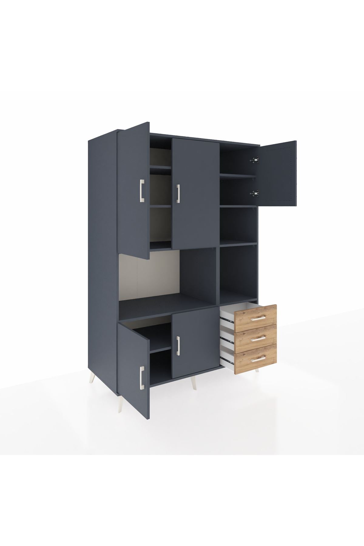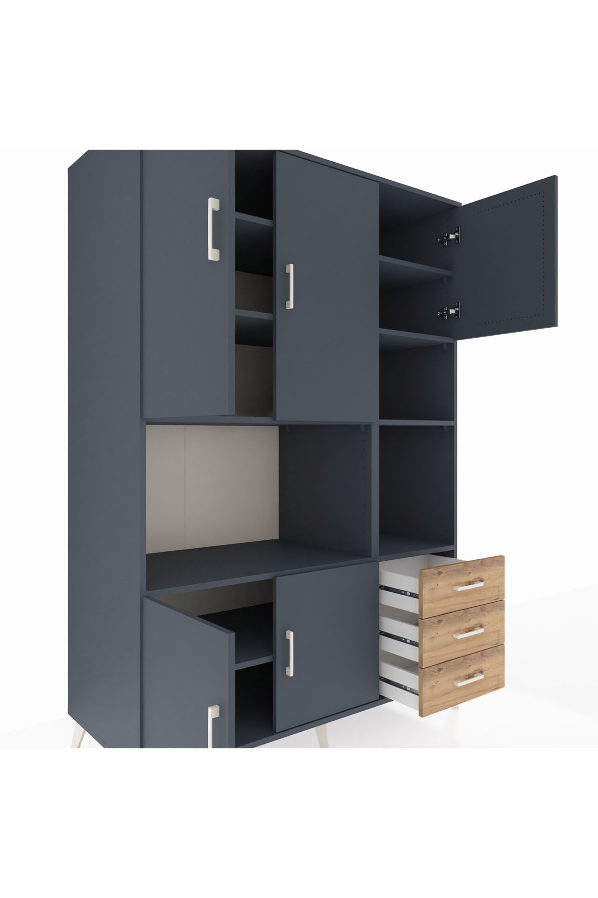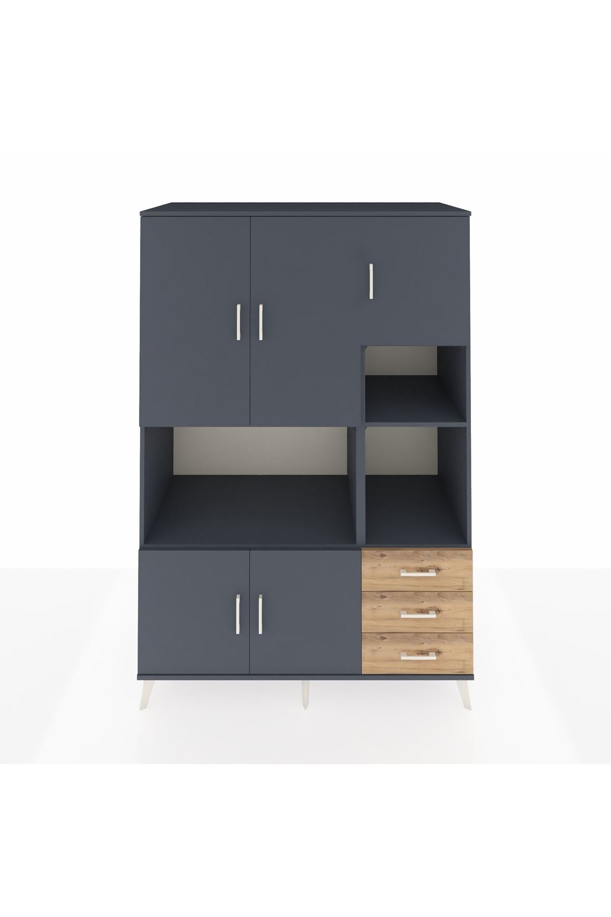 Kronos Dolap 9 Raflı 3 Çekmeceli 5 Kapaklı 132x59x195 Antrasit-Antrasit/Çam