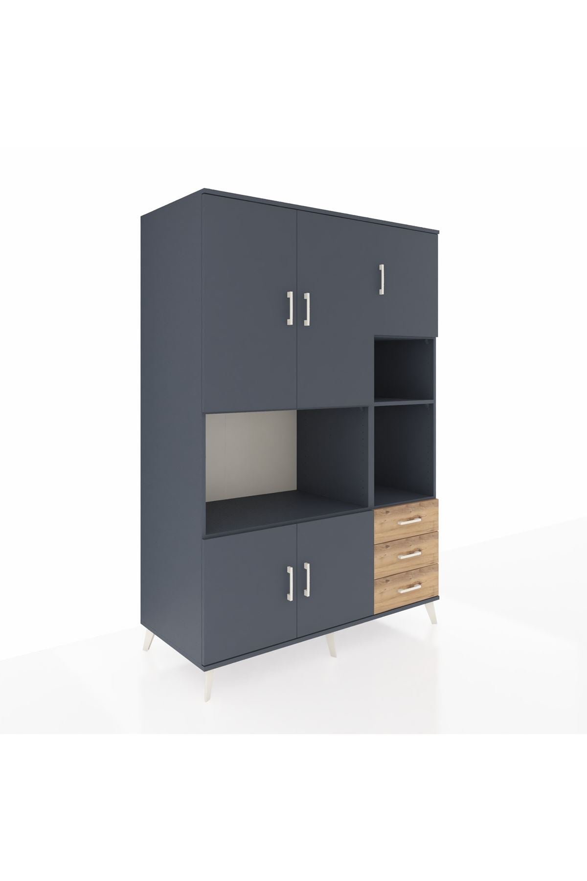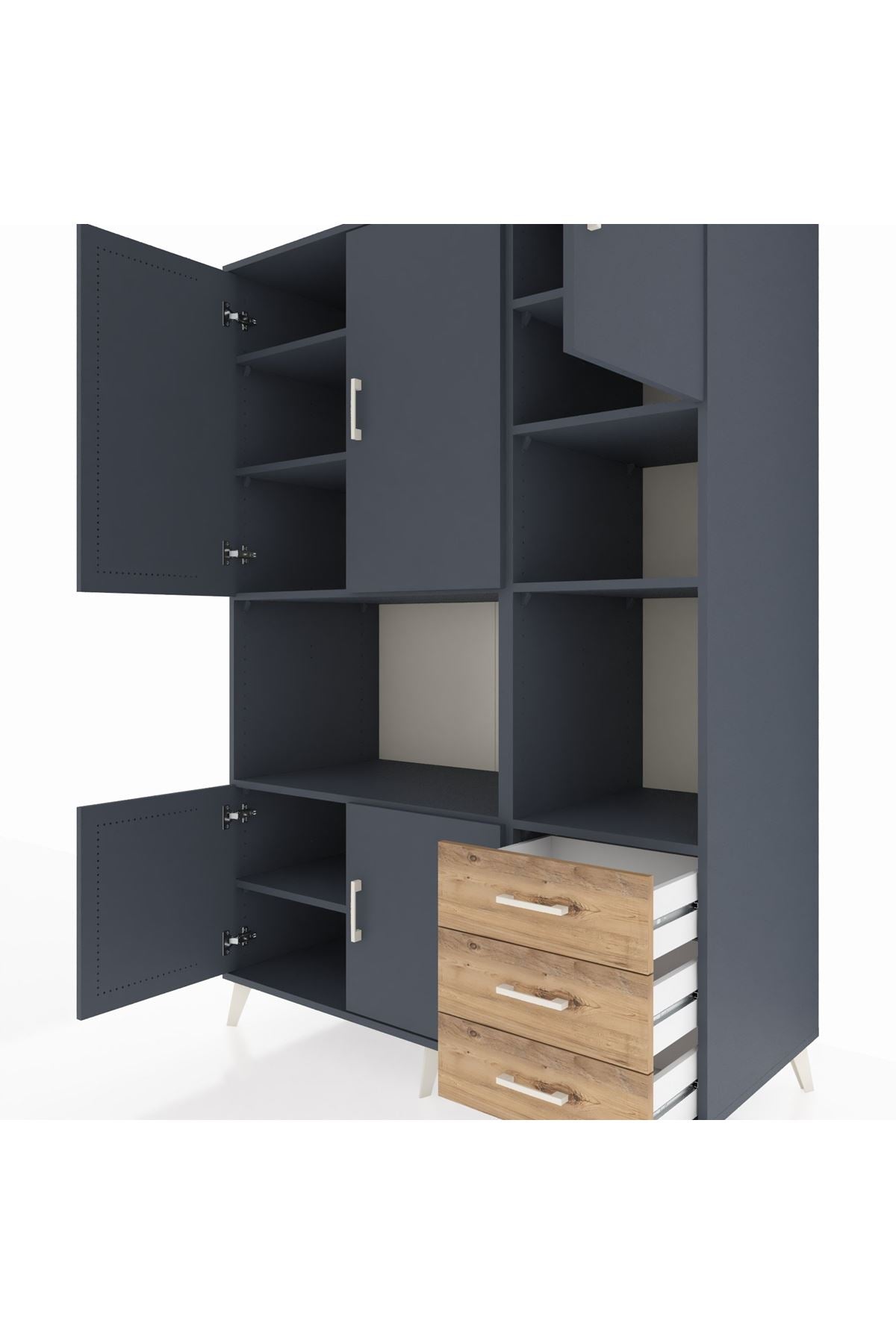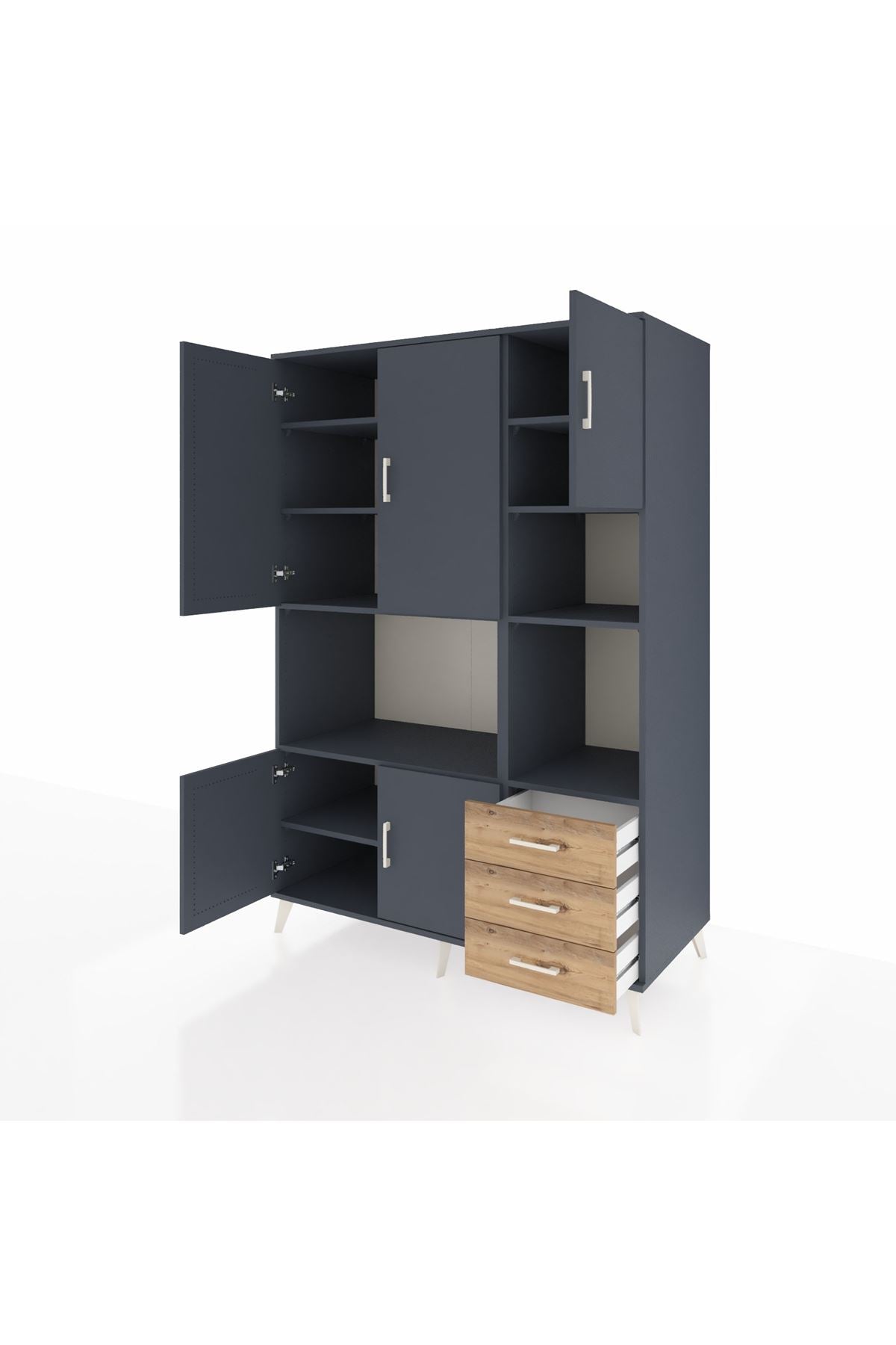 Kronos Dolap 9 Raflı 3 Çekmeceli 5 Kapaklı 132x59x195 Antrasit-Antrasit/Çam