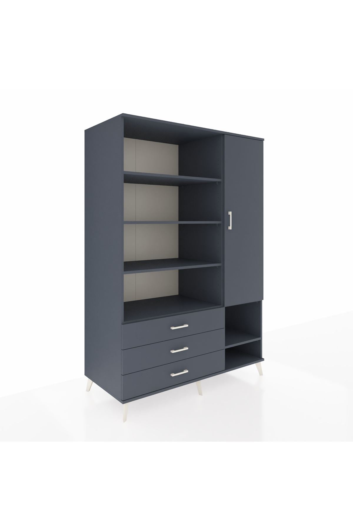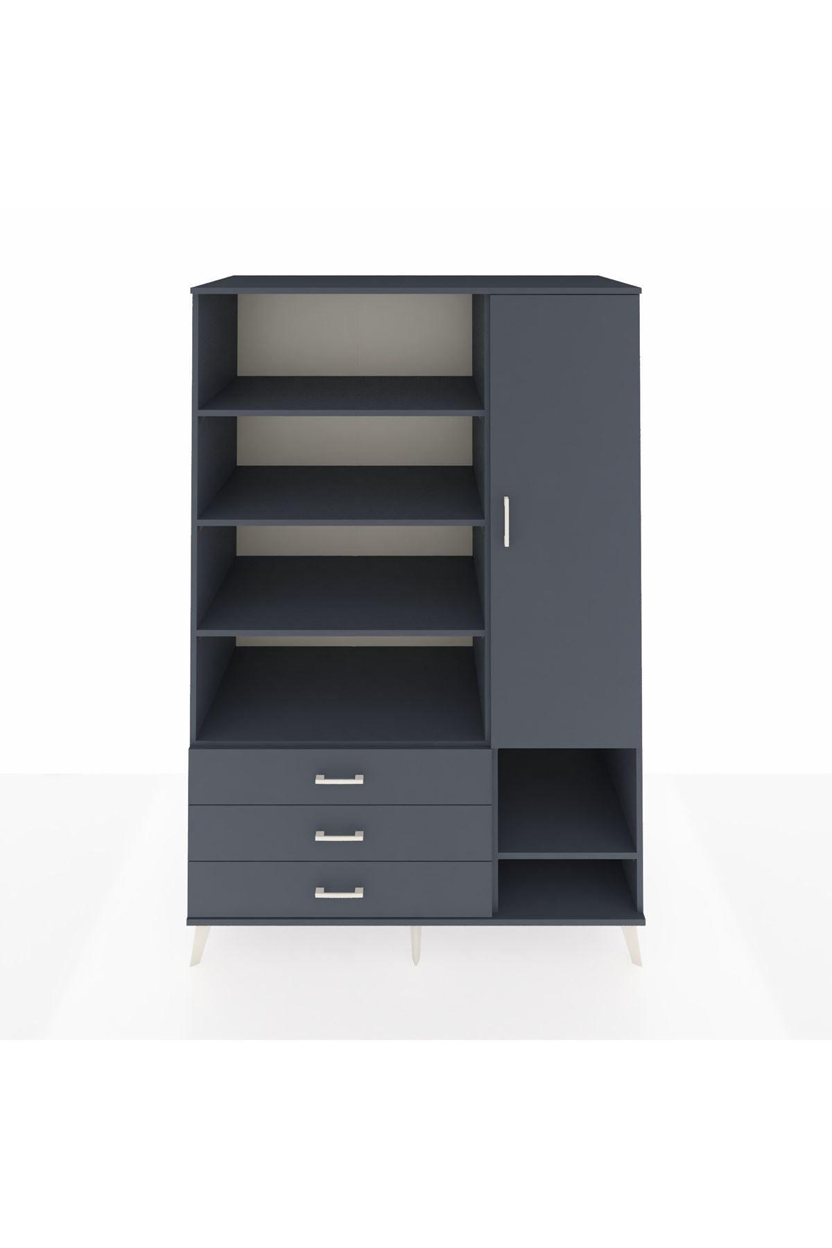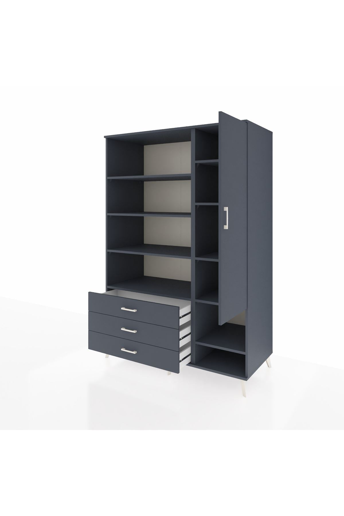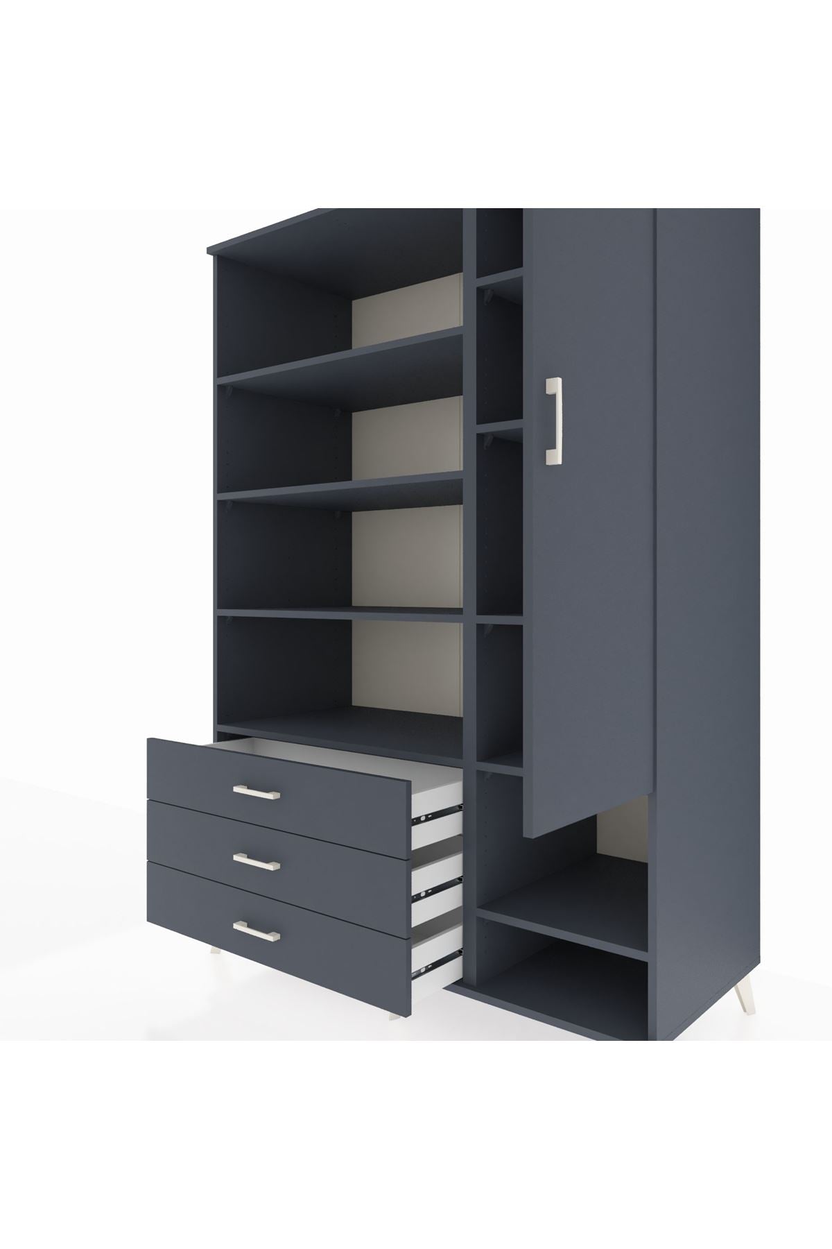 Kronos Dolap 9 Raflı 3 Çekmeceli Tek Kapaklı 132x59x195 Antrasit-Antrasit/Antrasit