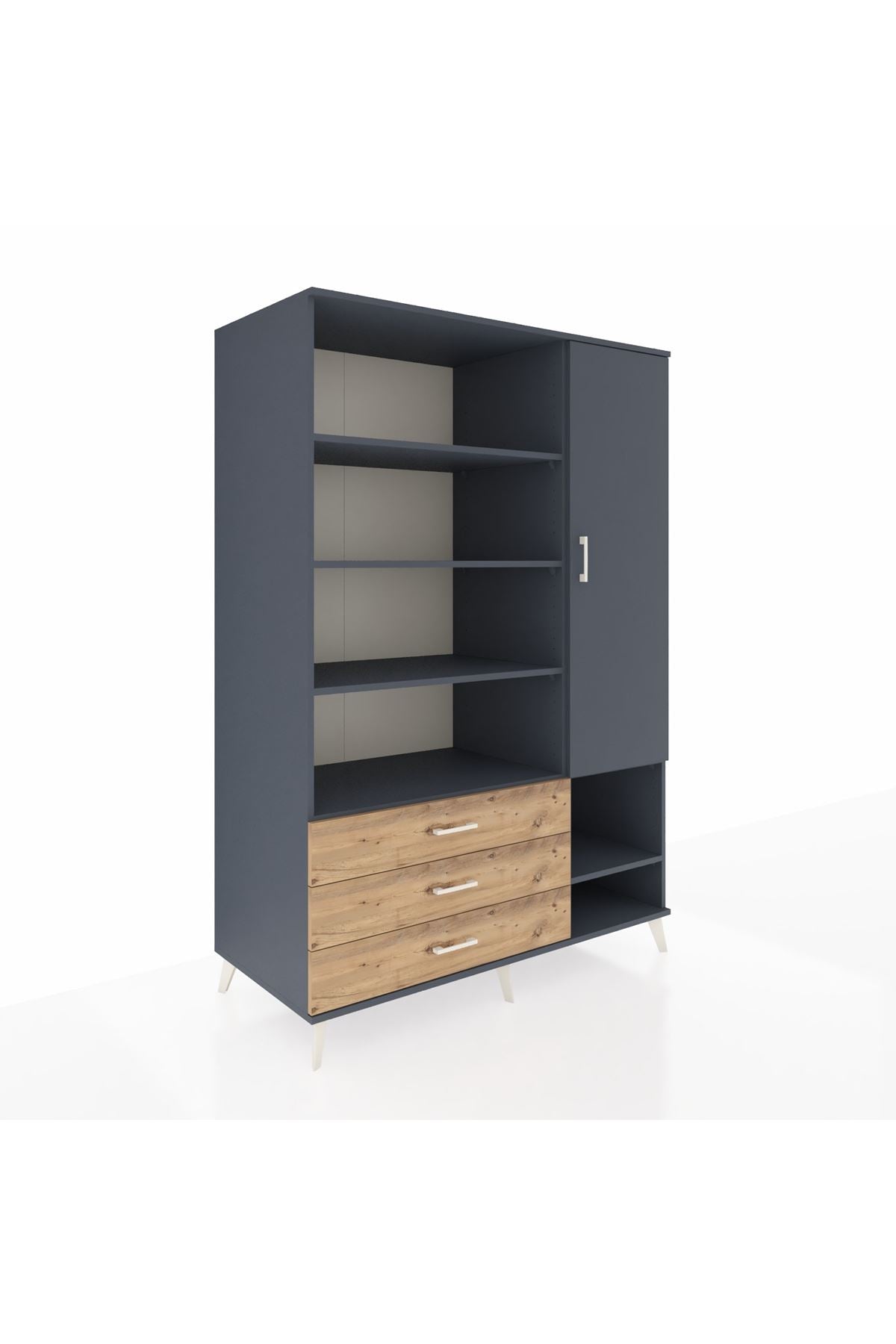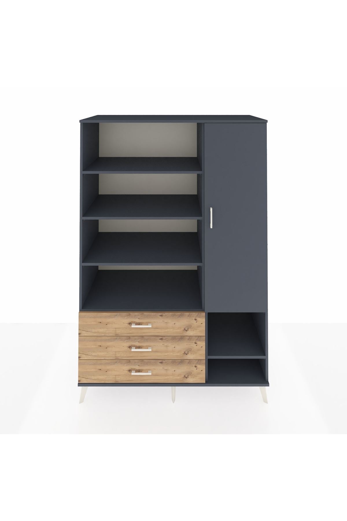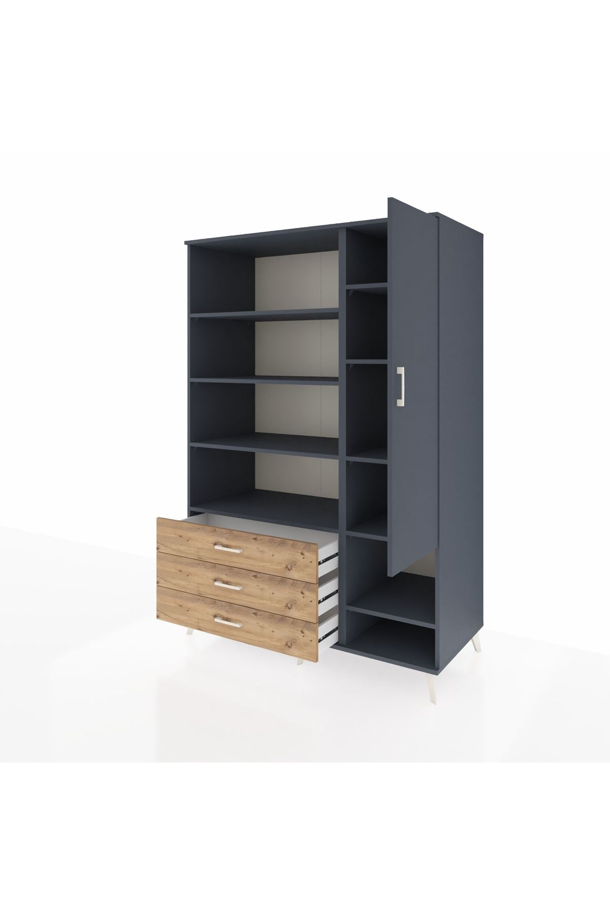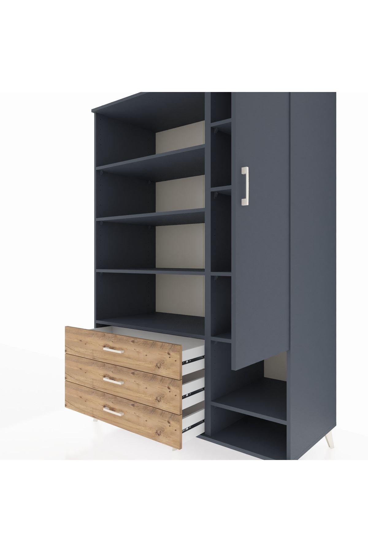 Kronos Dolap 9 Raflı 3 Çekmeceli Tek Kapaklı 132x59x195 Antrasit-Antrasit/Çam