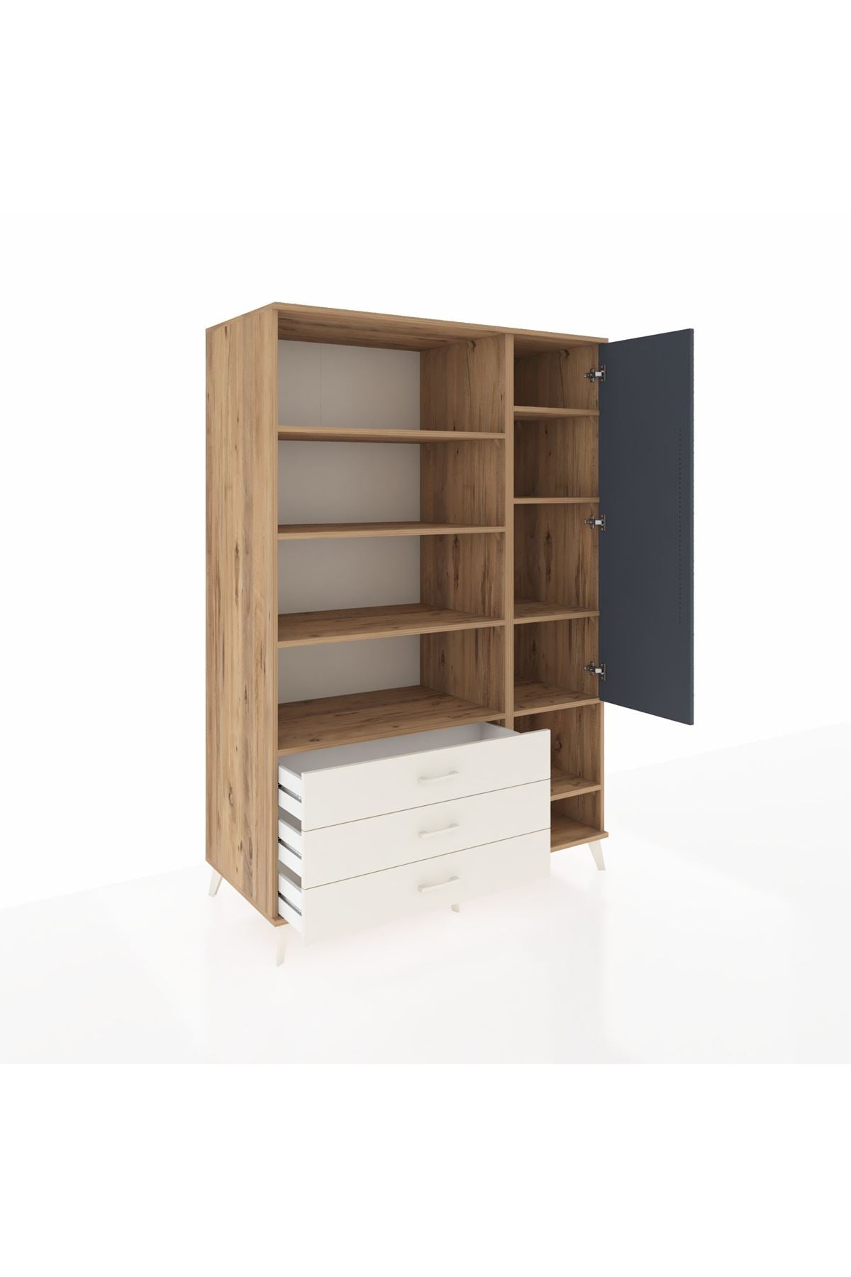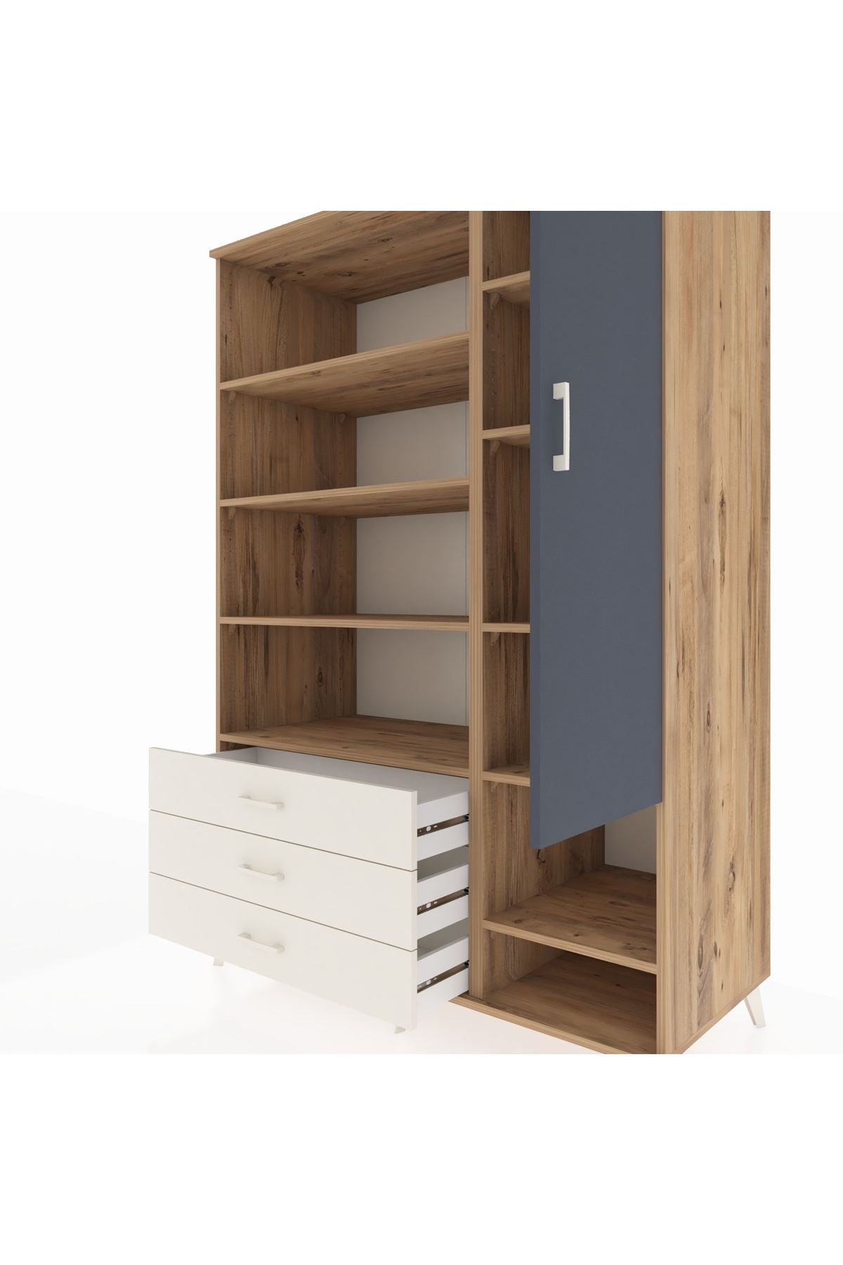 Kronos Dolap 9 Raflı 3 Çekmeceli Tek Kapaklı 132x59x195 Çam-Antrasit/Aytaşı