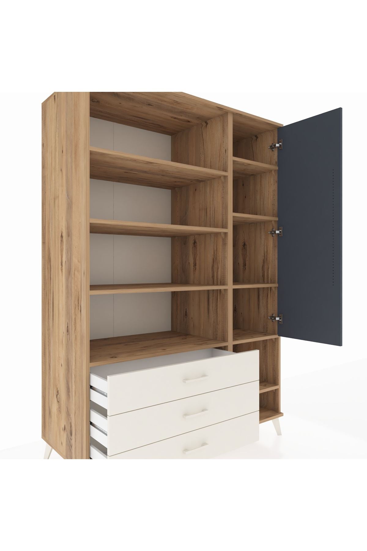 Kronos Dolap 9 Raflı 3 Çekmeceli Tek Kapaklı 132x59x195 Çam-Antrasit/Aytaşı – Düzenin ve Şıklığın Buluştuğu Depolama