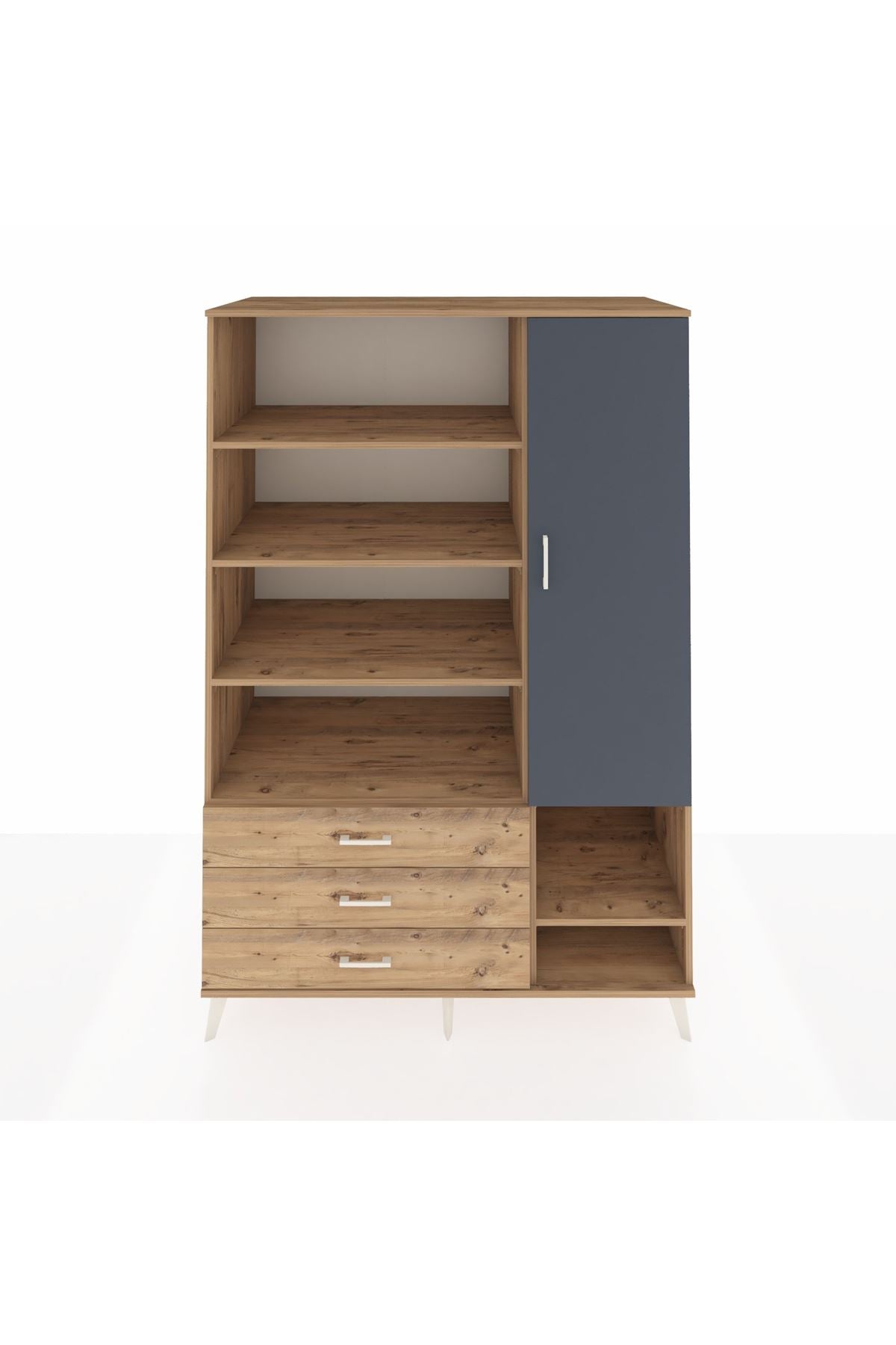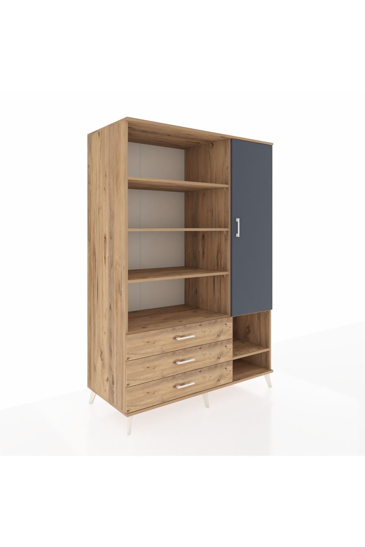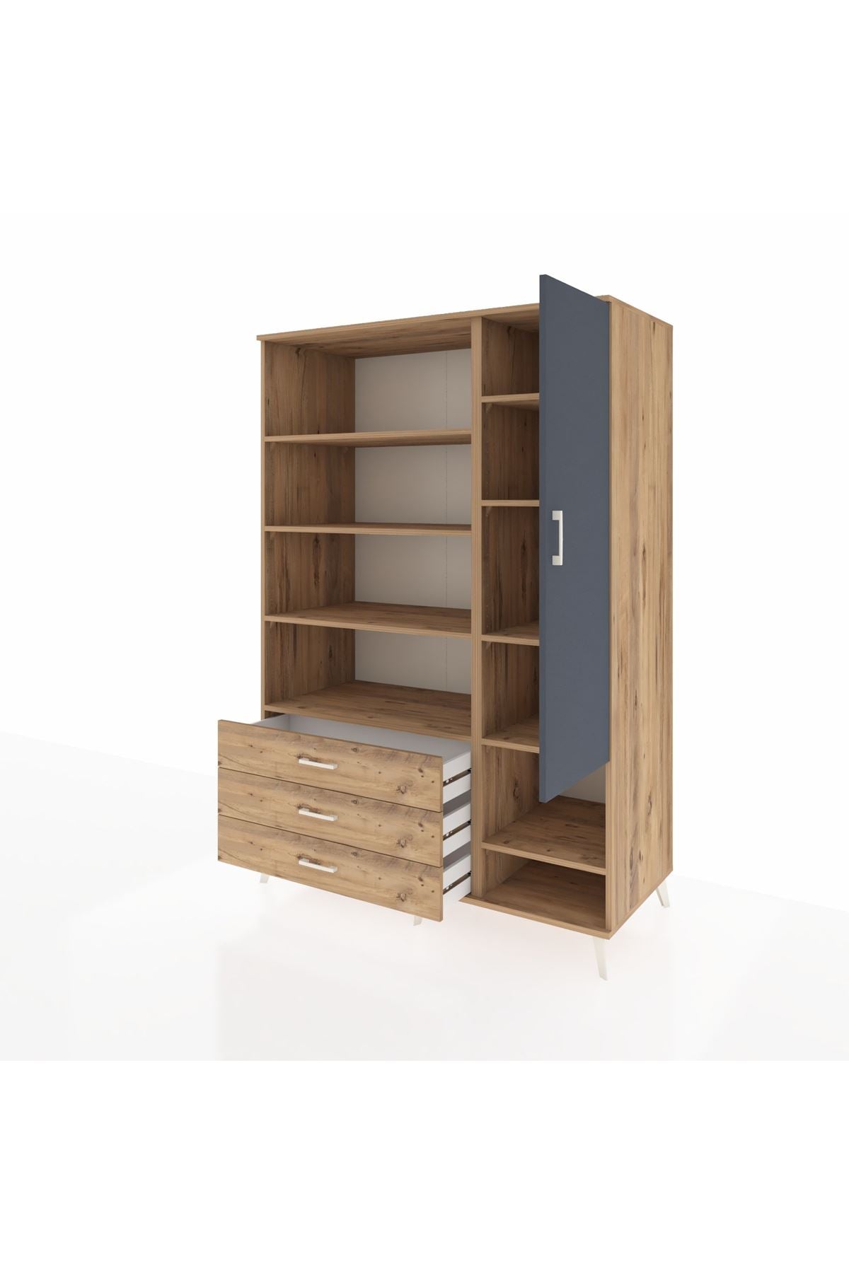 Kronos Dolap 9 Raflı 3 Çekmeceli Tek Kapaklı 132x59x195 Çam-Antrasit/Çam