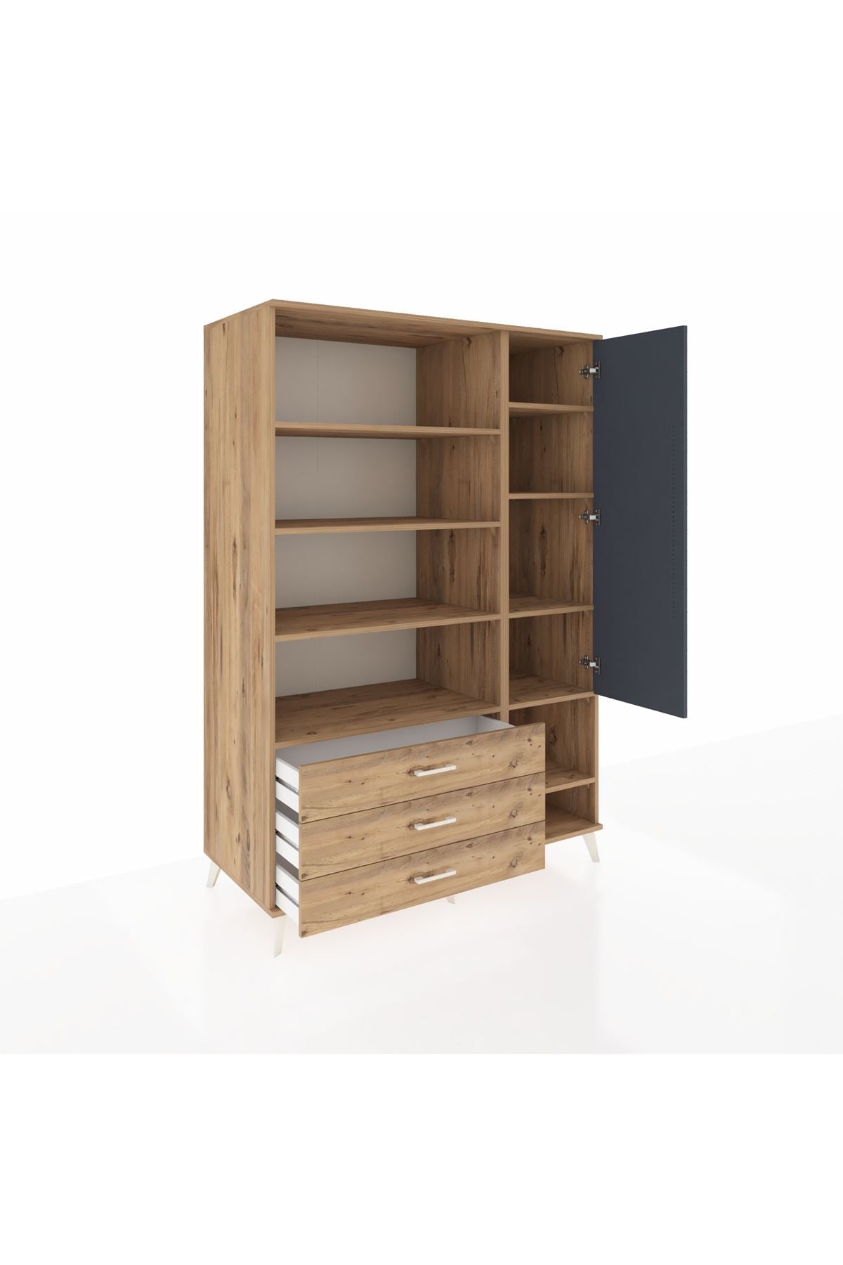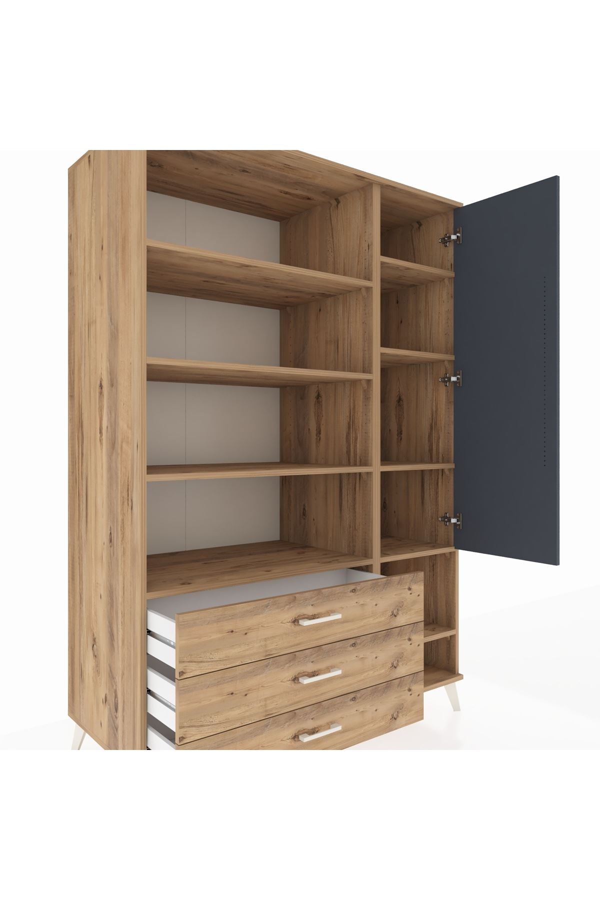 Kronos Dolap 9 Raflı 3 Çekmeceli Tek Kapaklı 132x59x195 Çam-Antrasit/Çam – Düzenin ve Dayanıklılığın Buluştuğu Nokta