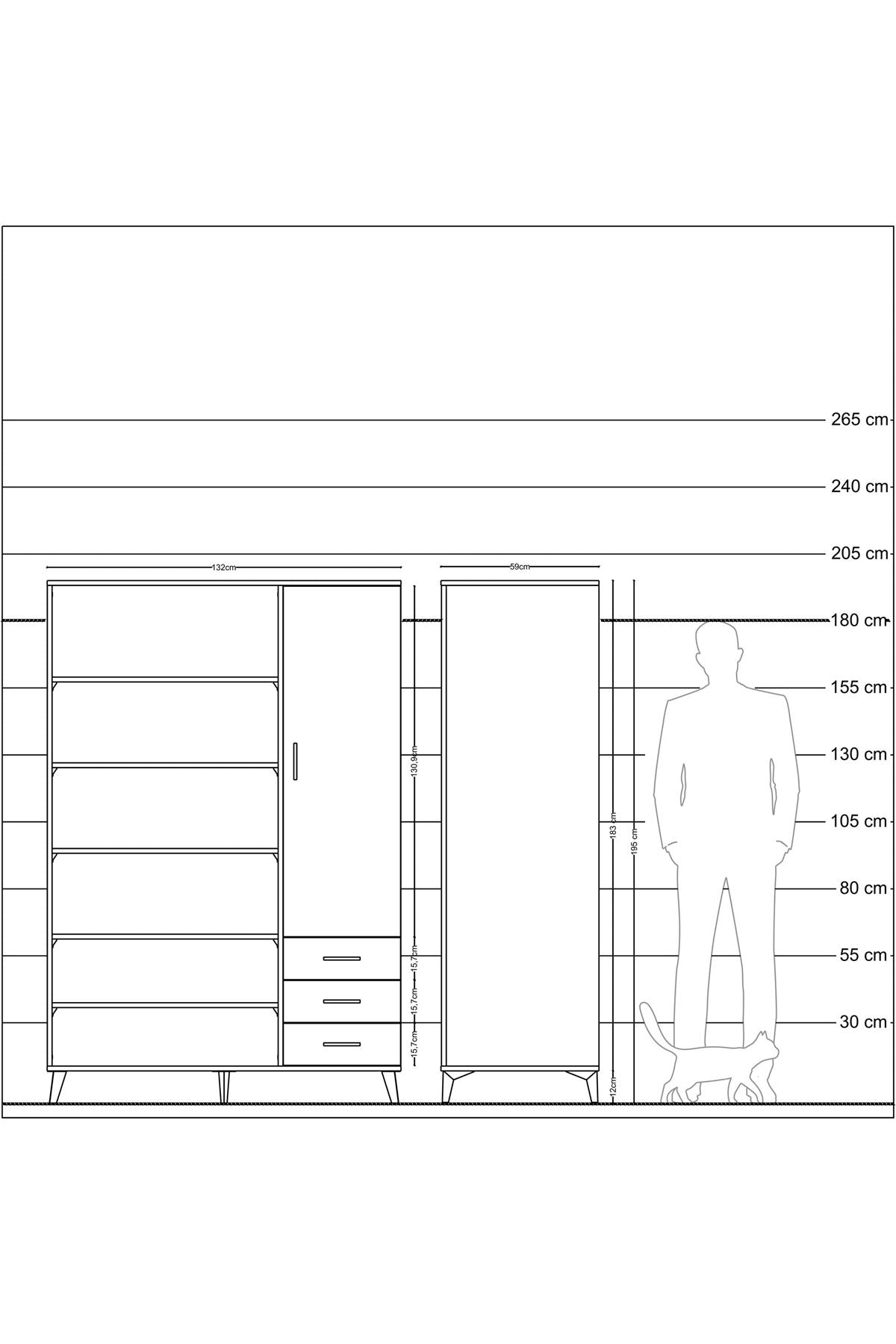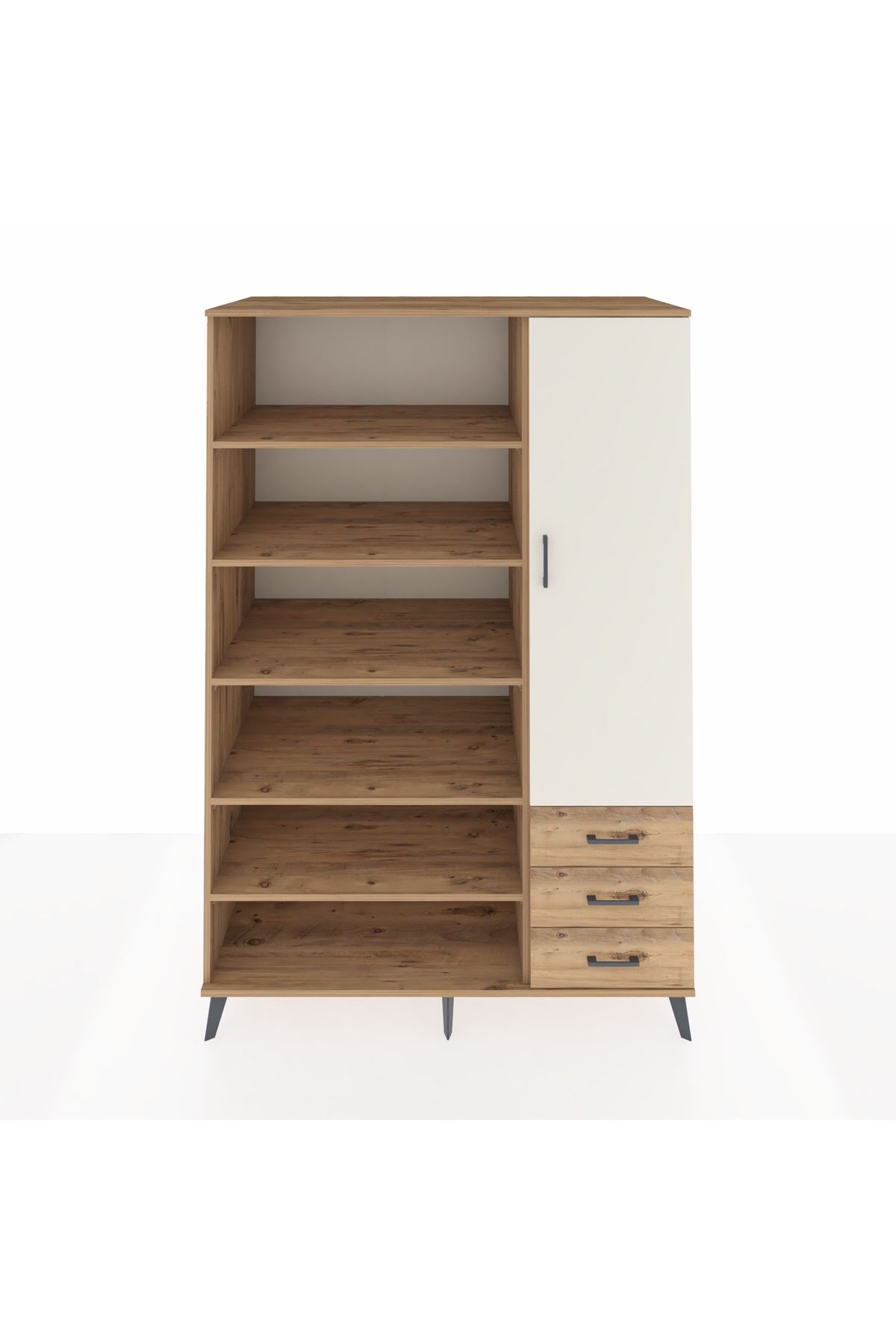 Çocuk odasında oyuncak, kıyafet ve eğitim materyallerini kategorize ederek saklamaya uygundur. Raf yüksekliği ayarlanarak büyüyen ihtiyaçlara göre düzenlenebilir; çekmeceler küçük aksesuarlar ve kıyafetler için güvenli bir saklama sağlar. Sağlam malzeme yapısı günlük kullanıma dayanıklı olup, kolay temizlenebilir yüzeyi sayesinde pratik kullanım sunar.