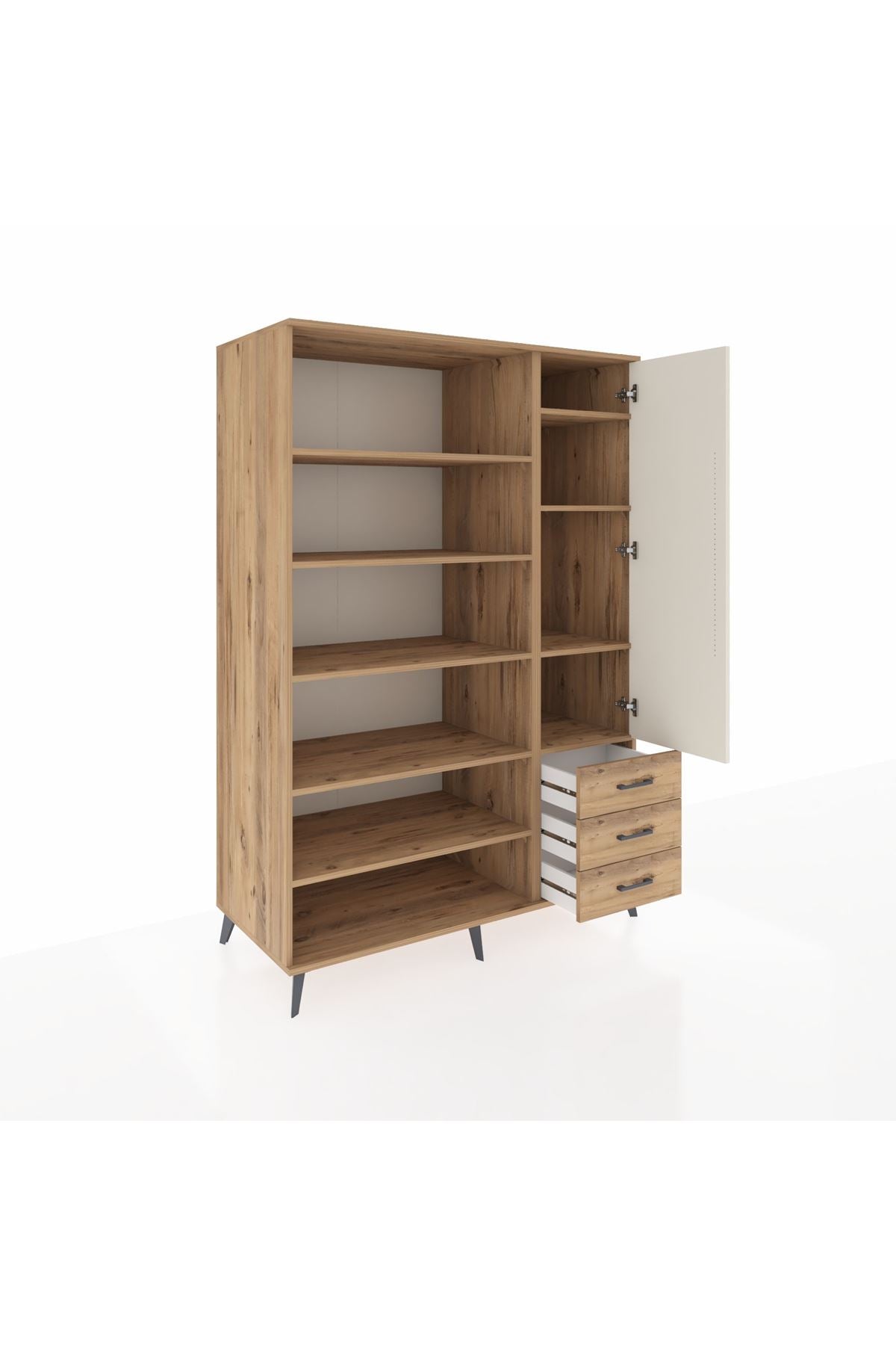 Kronos Dolap 9 Raflı 3 Çekmeceli Tek Kapaklı 132x59x195 Çam-Aytaşı/Çam