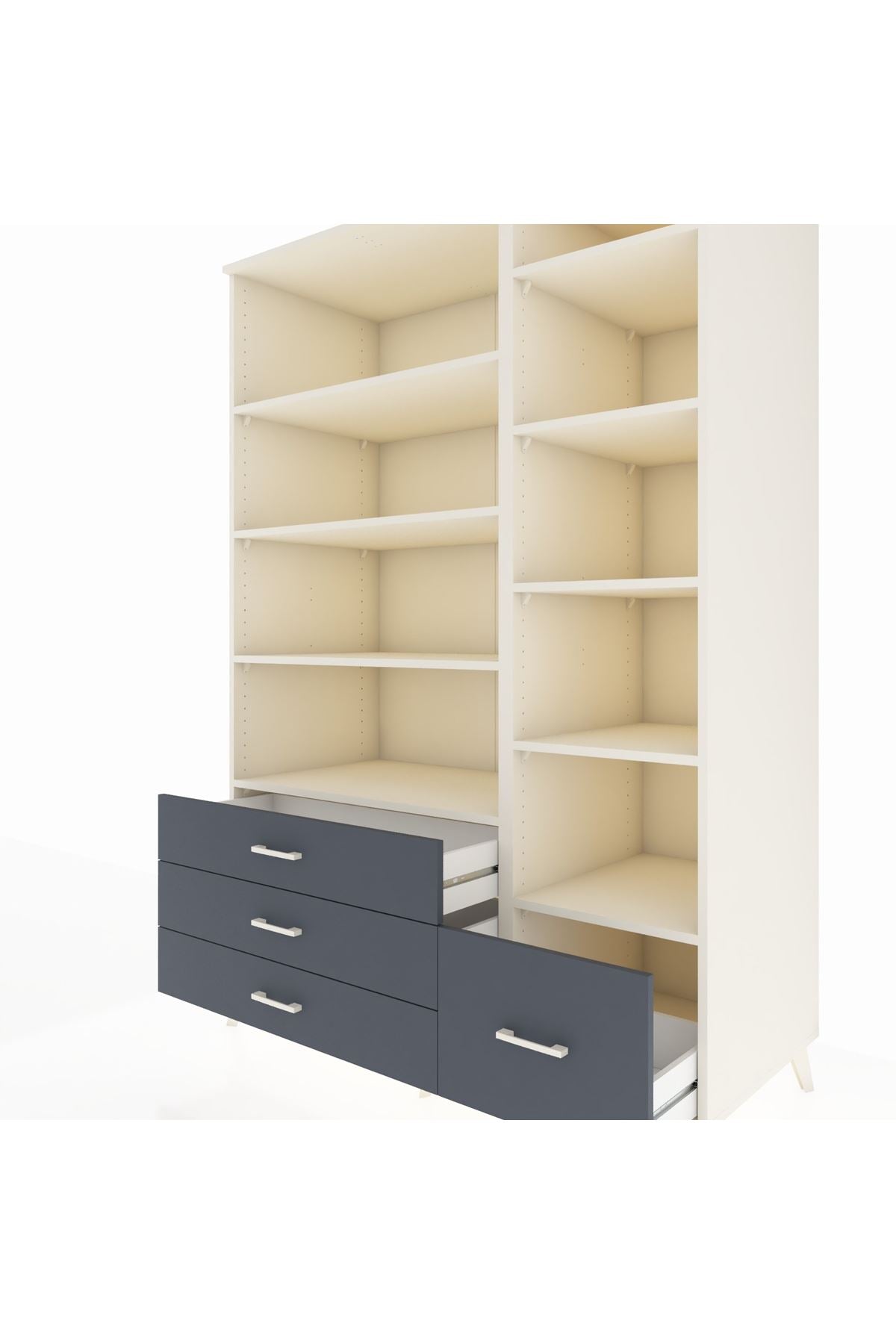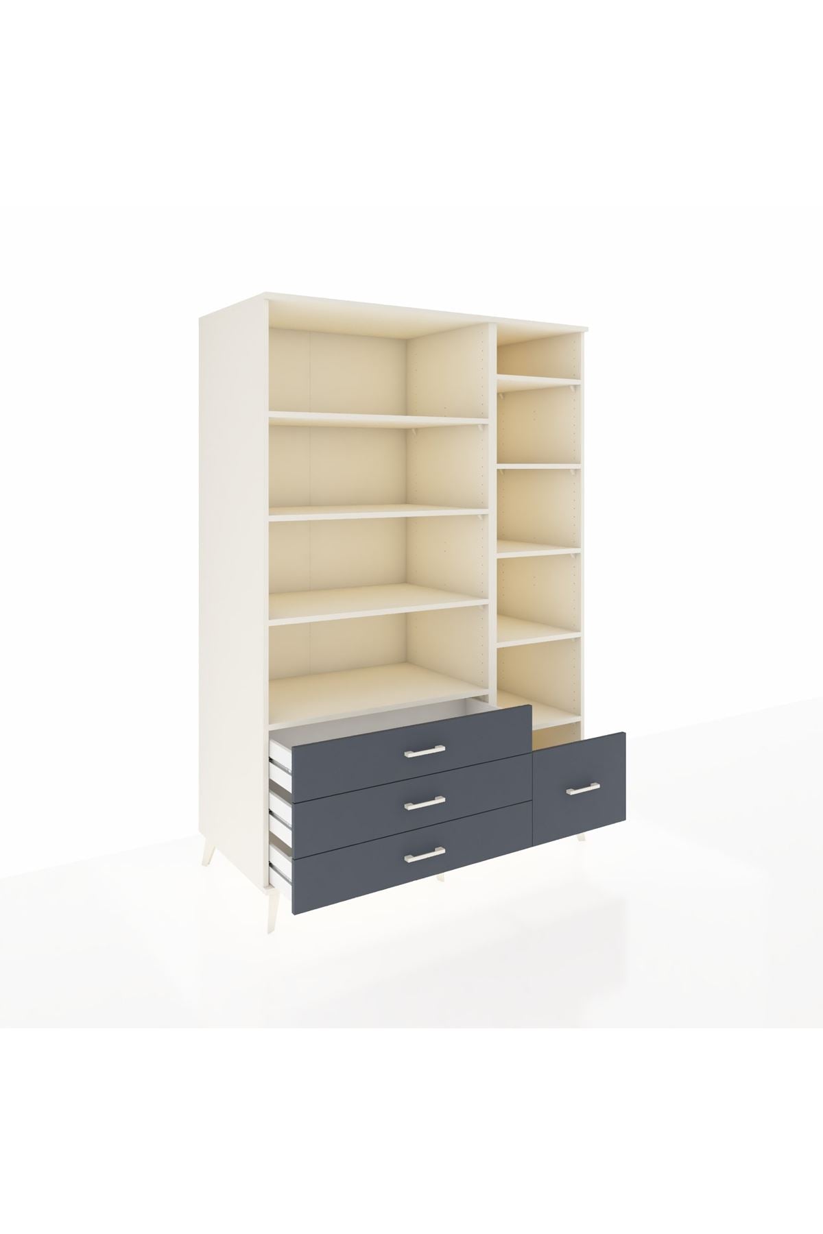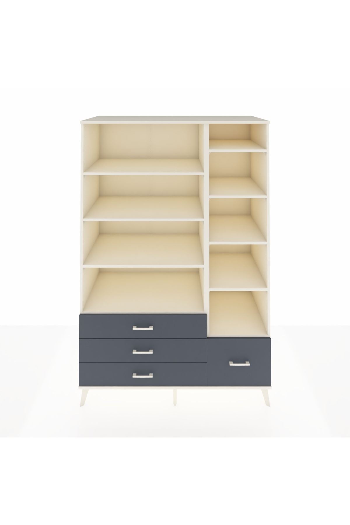 Aytaşı ve antrasit renk tonları, modern ve şık bir atmosfer yaratır. Hem yatak odasında hem de salon veya ofiste kullanıma uygundur. Aynı anda hem çok sayıda eşya saklayabilir, hem de yaşam alanınızı derli toplu tutabilirsiniz.