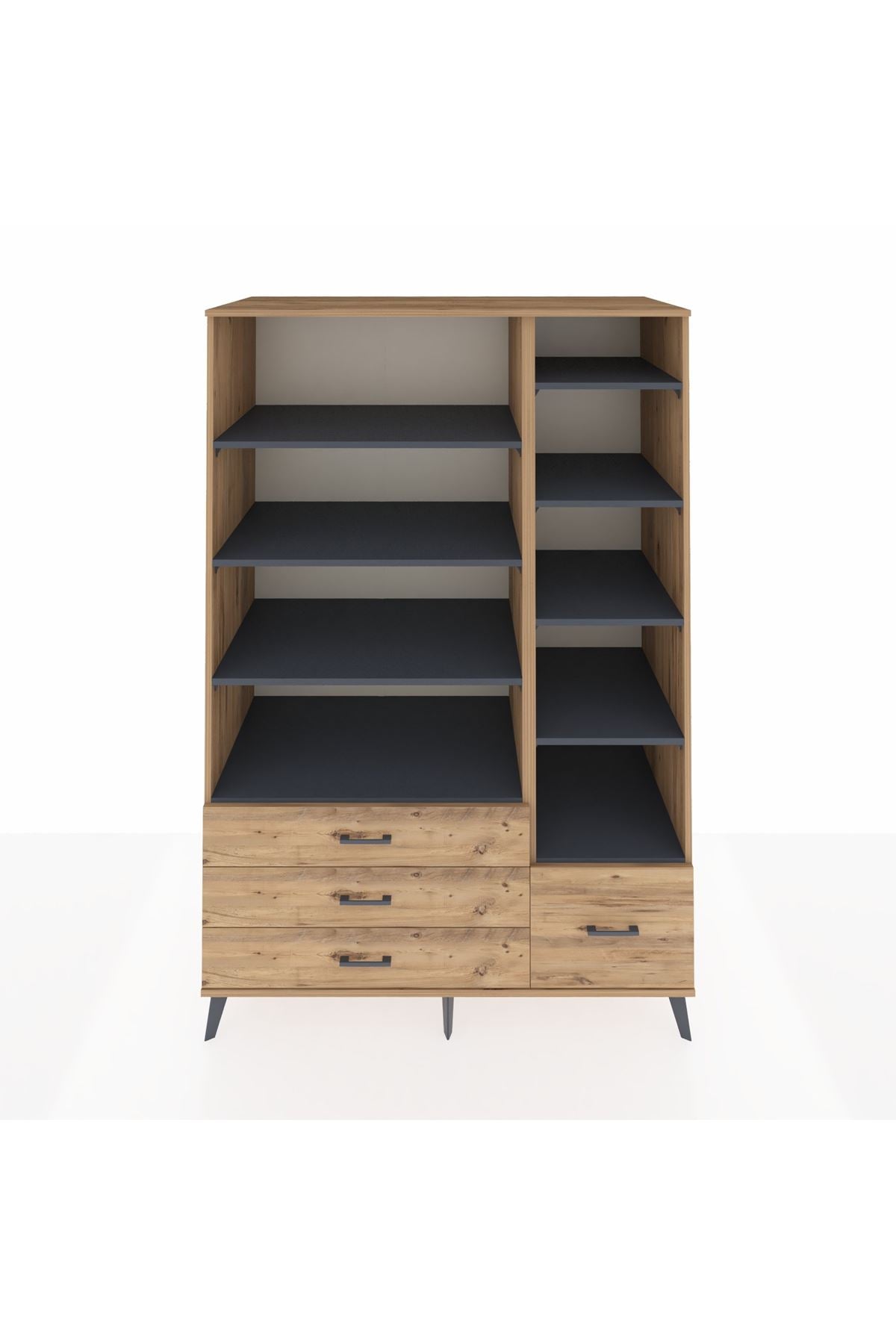 Kronos Dolap 9 Raflı 4 Çekmeceli 132x59x195 Çam-Antrasit/Çam