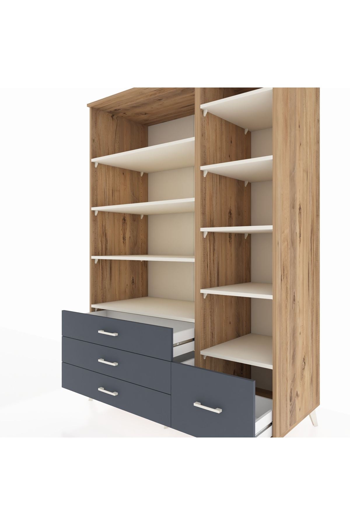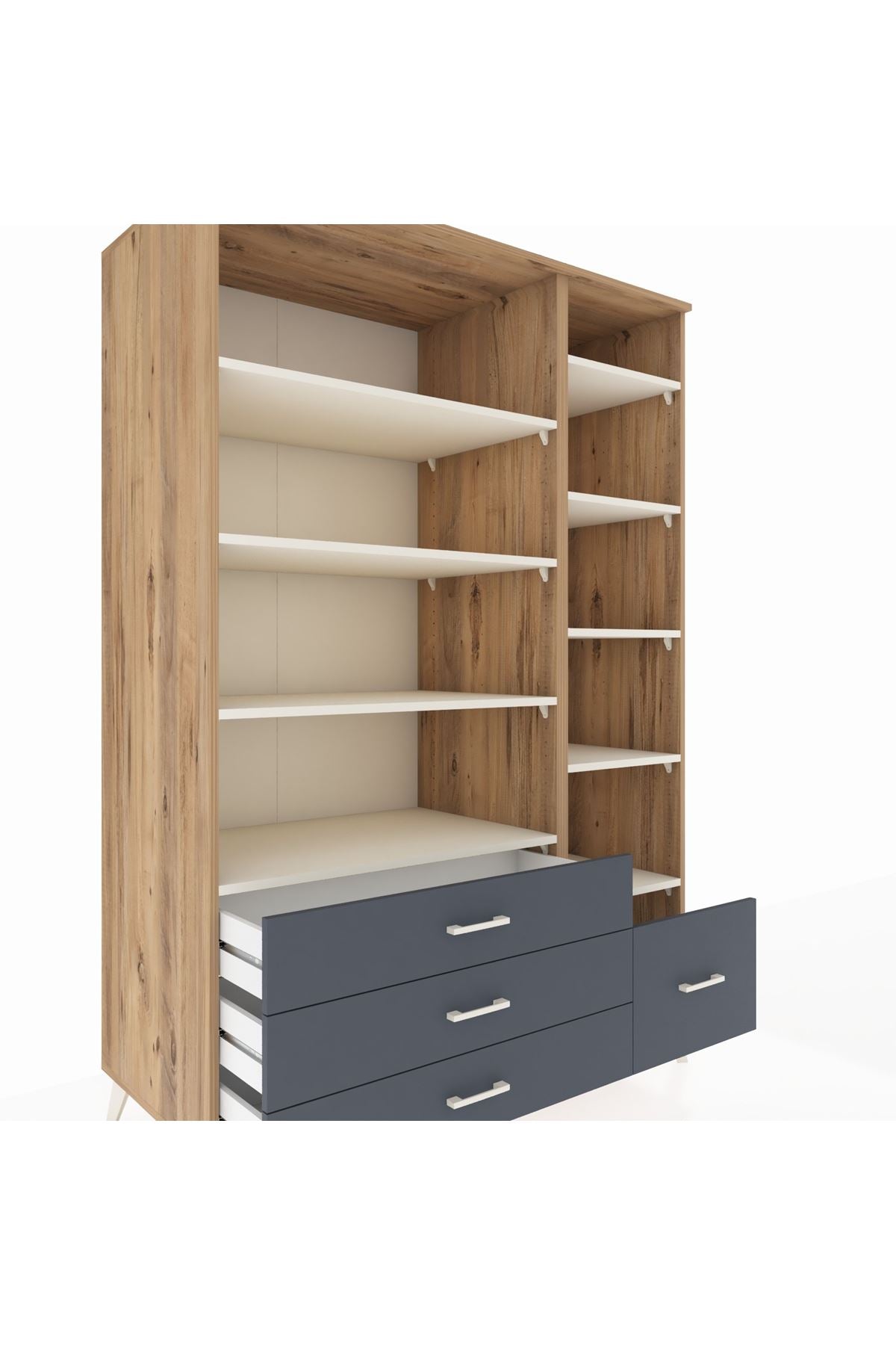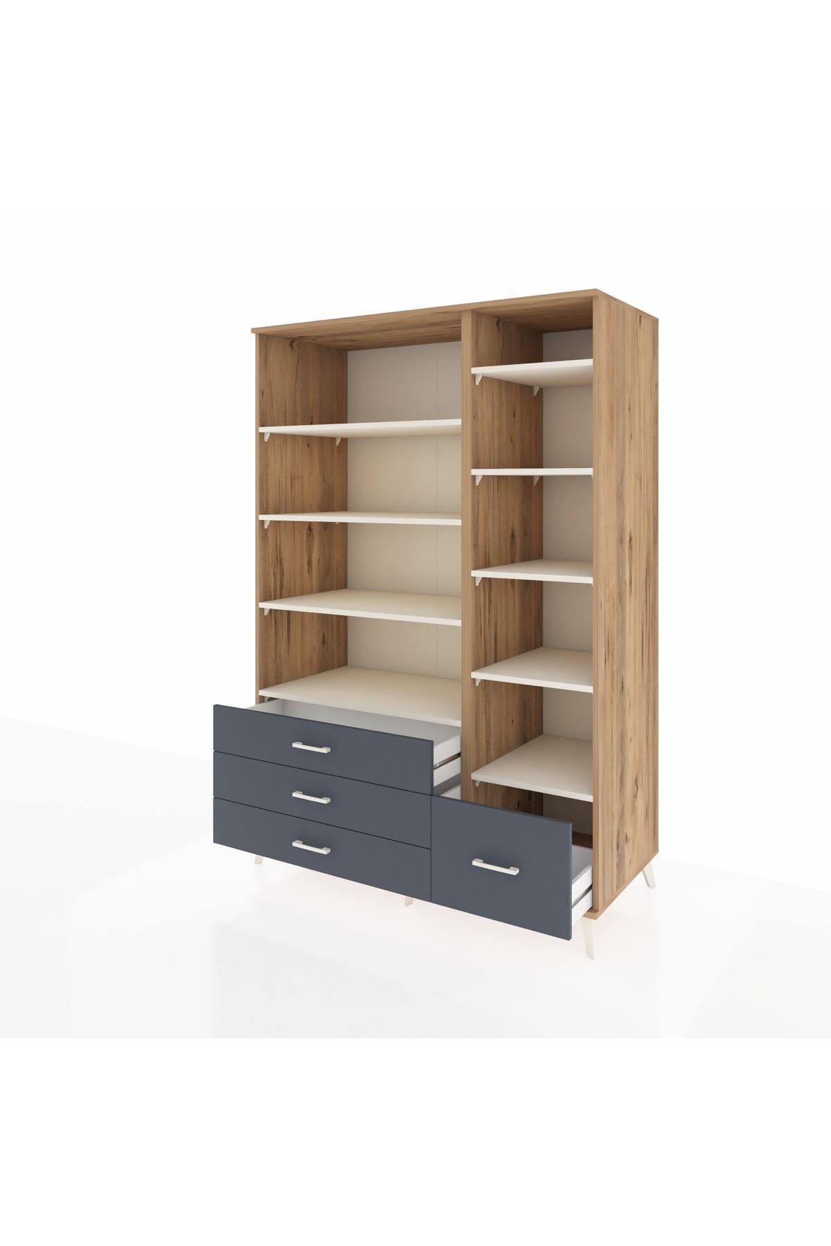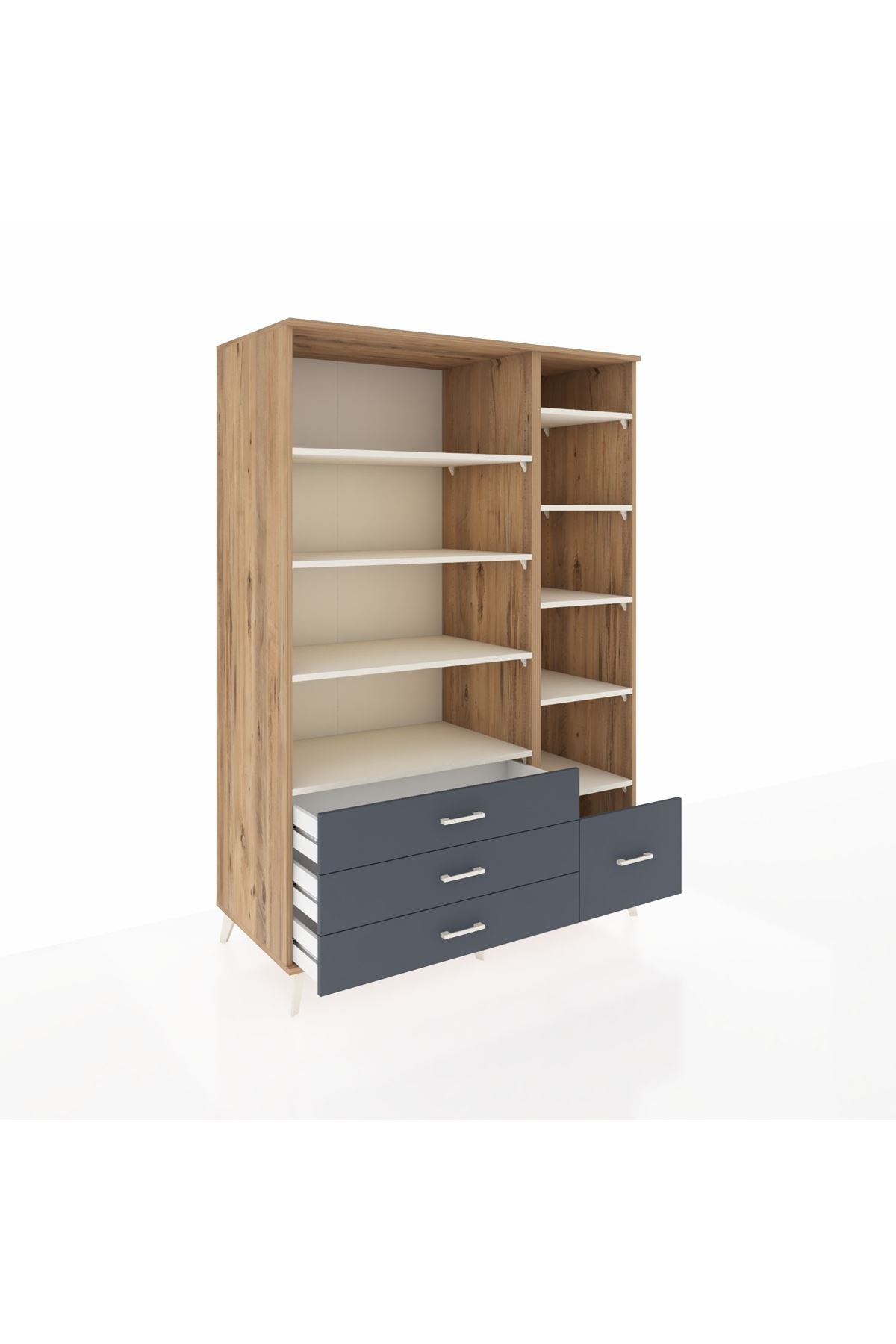 Kronos Dolap 9 Raflı 4 Çekmeceli 132x59x195 Çam-Aytaşı/Antrasit