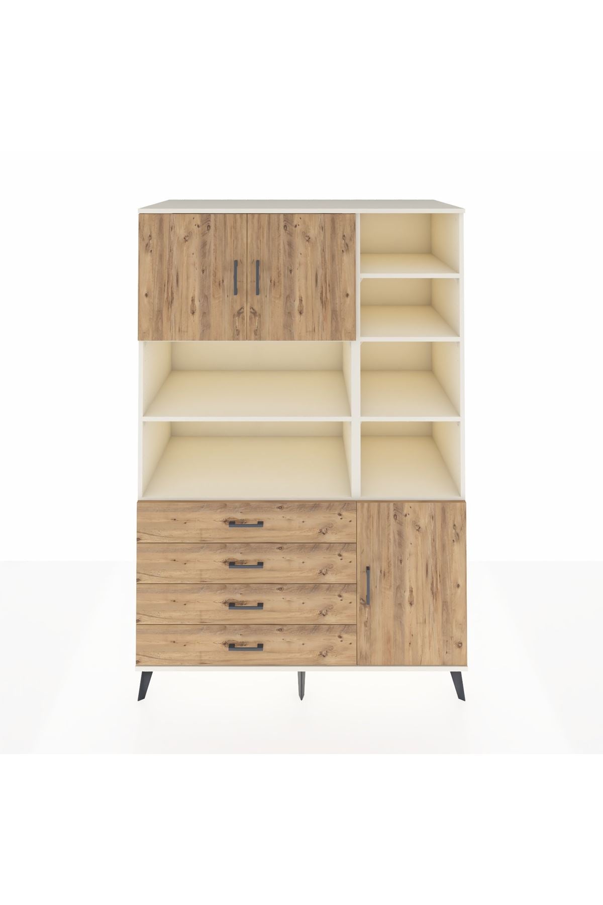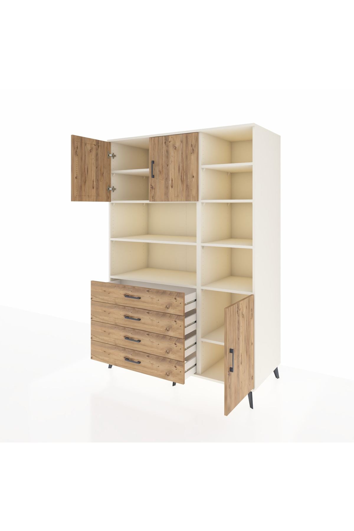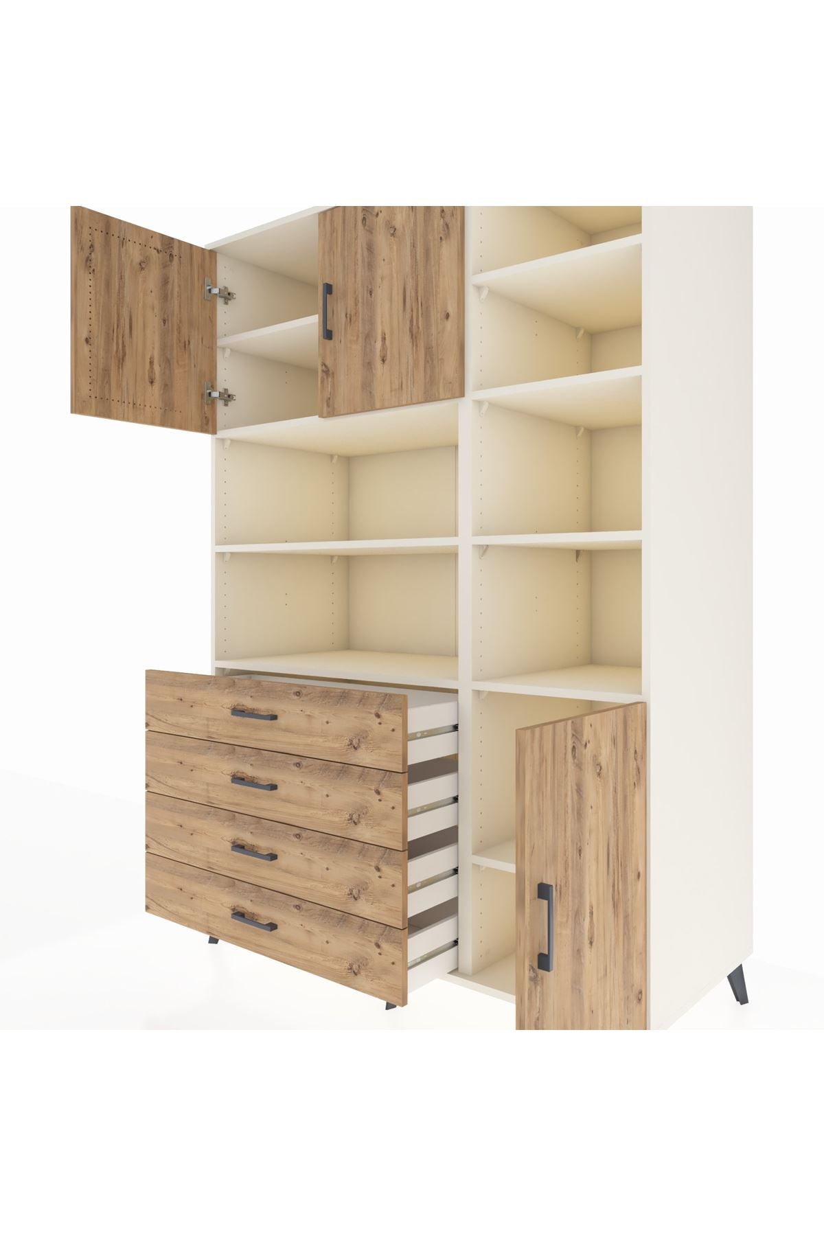 Kronos Dolap 9 Raflı 4 Çekmeceli 3 Kapaklı 132x59x195 Aytaşı-Çam/Çam