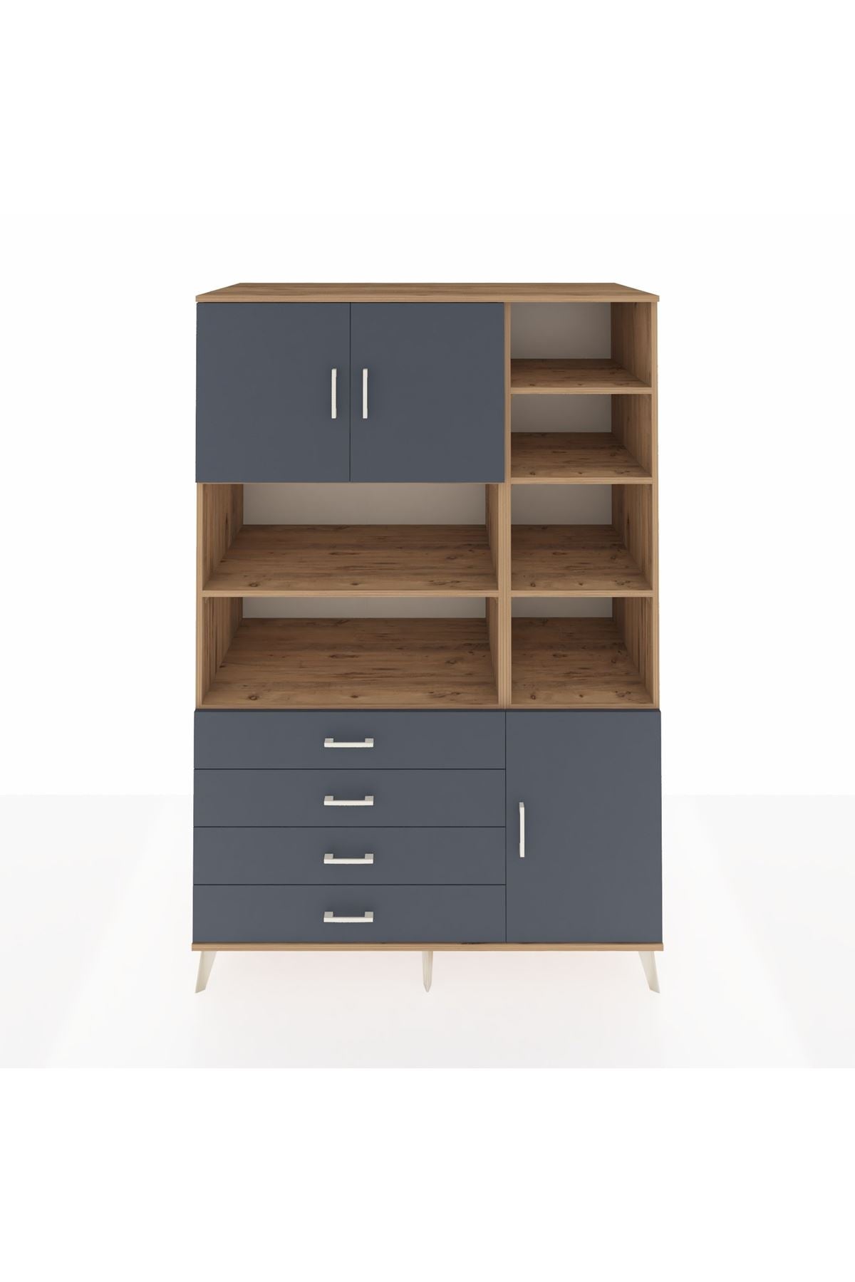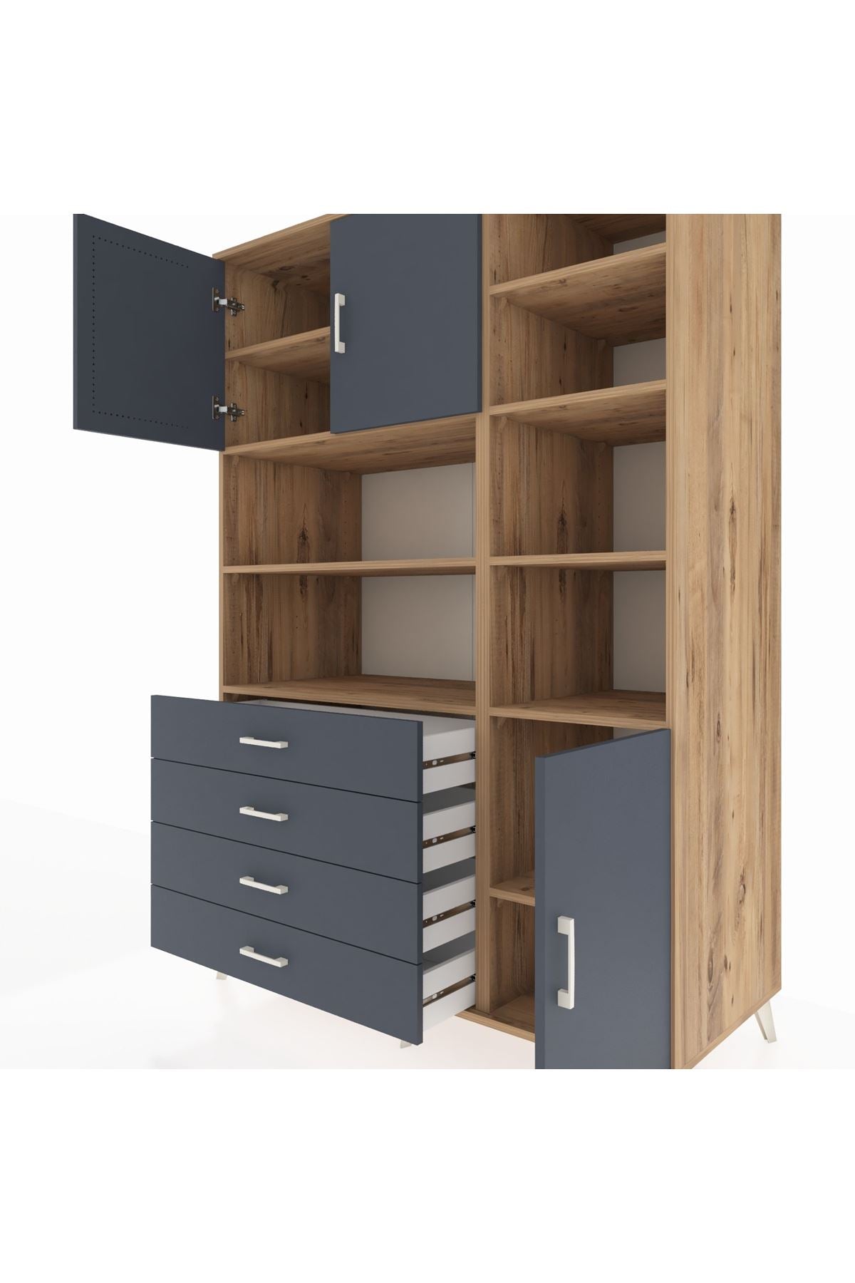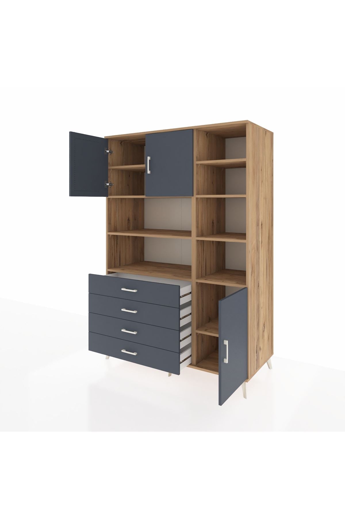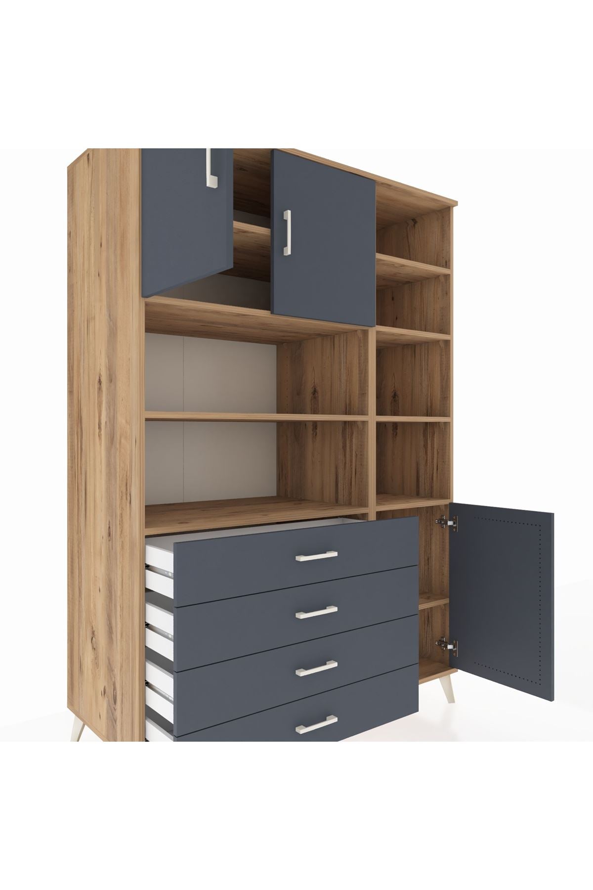 Kronos Dolap 9 Raflı 4 Çekmeceli 3 Kapaklı 132x59x195 Çam-Antrasit/Antrasit
