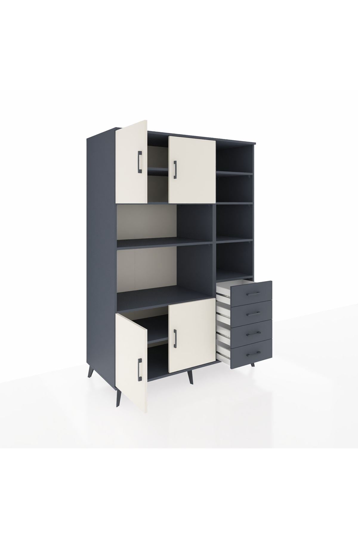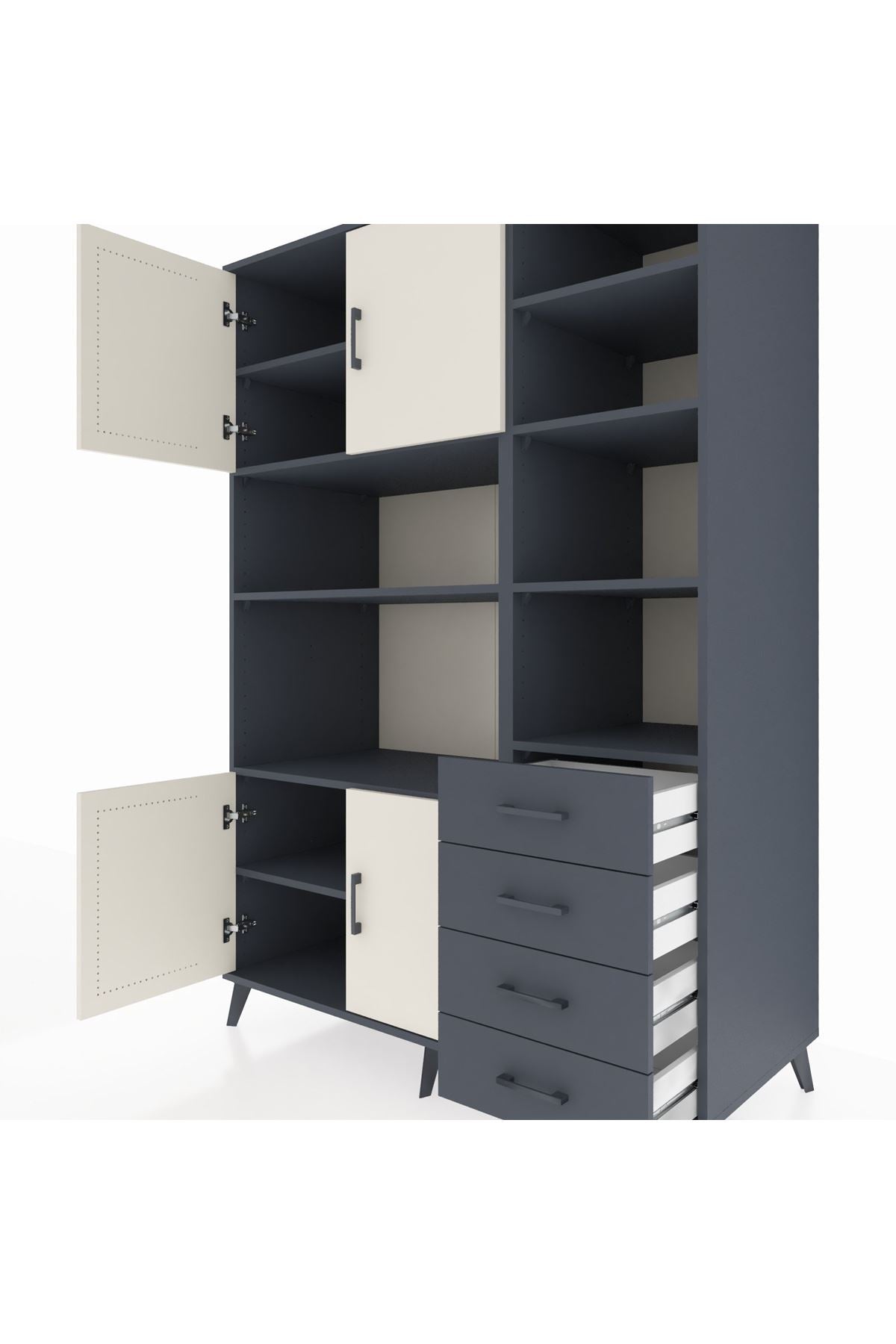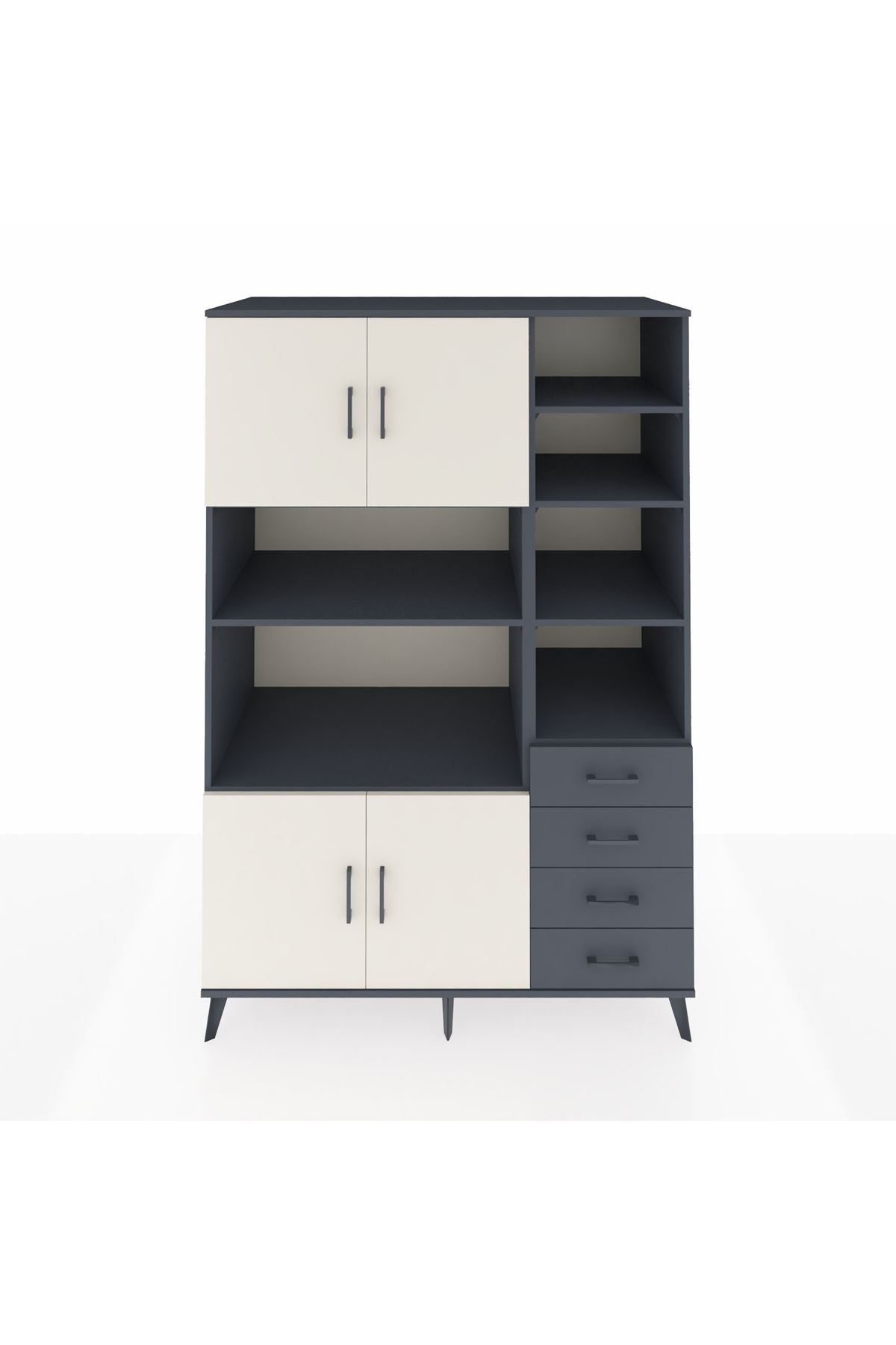 Kronos Dolap 9 Raflı 4 Çekmeceli 4 Kapaklı 132x59x195 Antrasit-Aytaşı/Antrasit