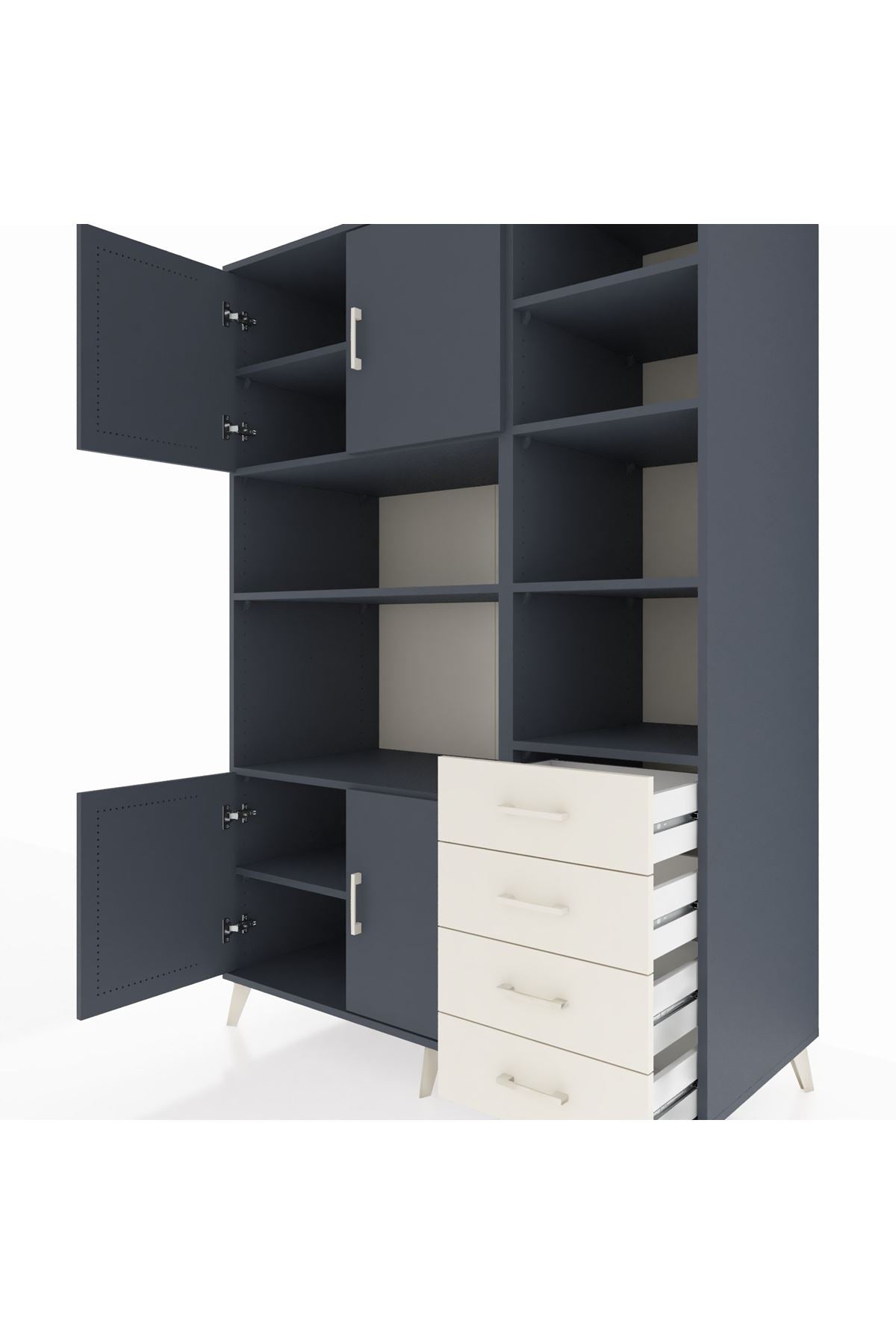 Kronos Dolap 9 Raflı 4 Çekmeceli 4 Kapaklı 132x59x195 Antrasit-Antrasit/Aytaşı