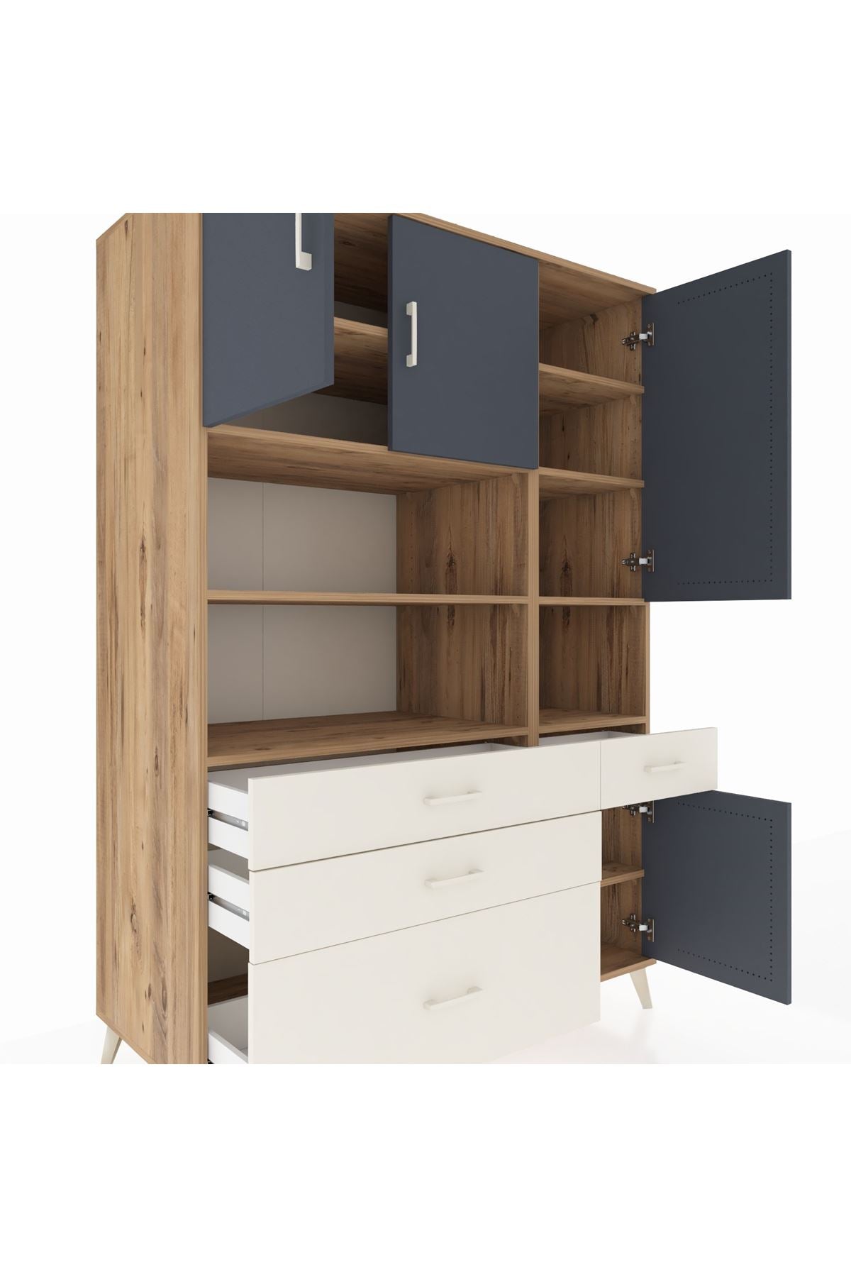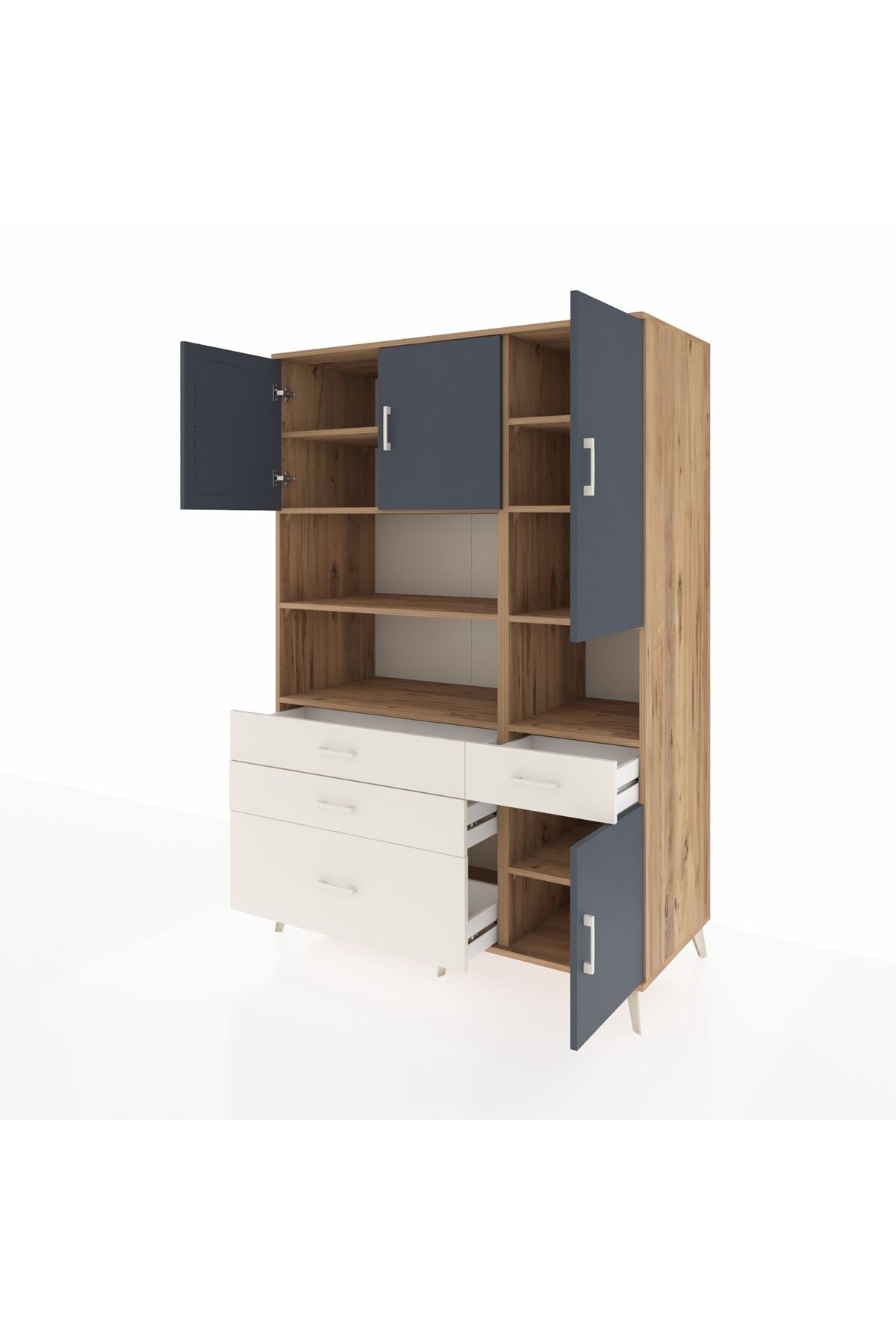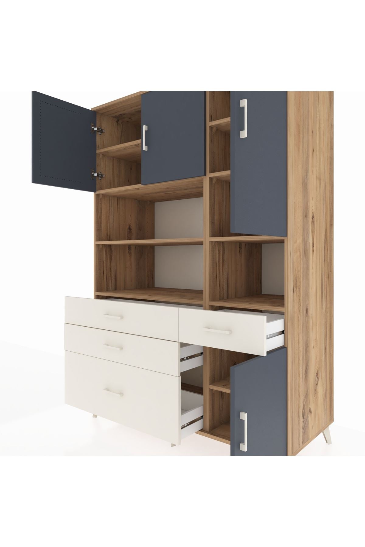 Kronos Dolap 9 Raflı 4 Çekmeceli 4 Kapaklı 132x59x195 Çam-Antrasit/Aytaşı