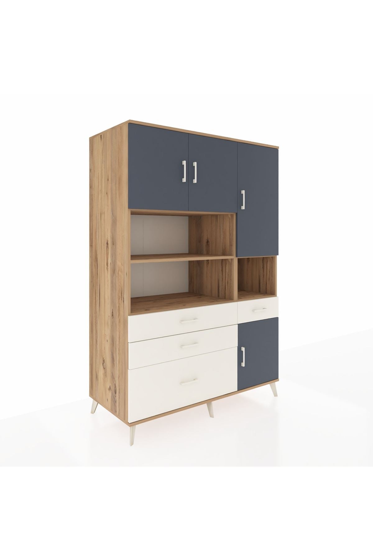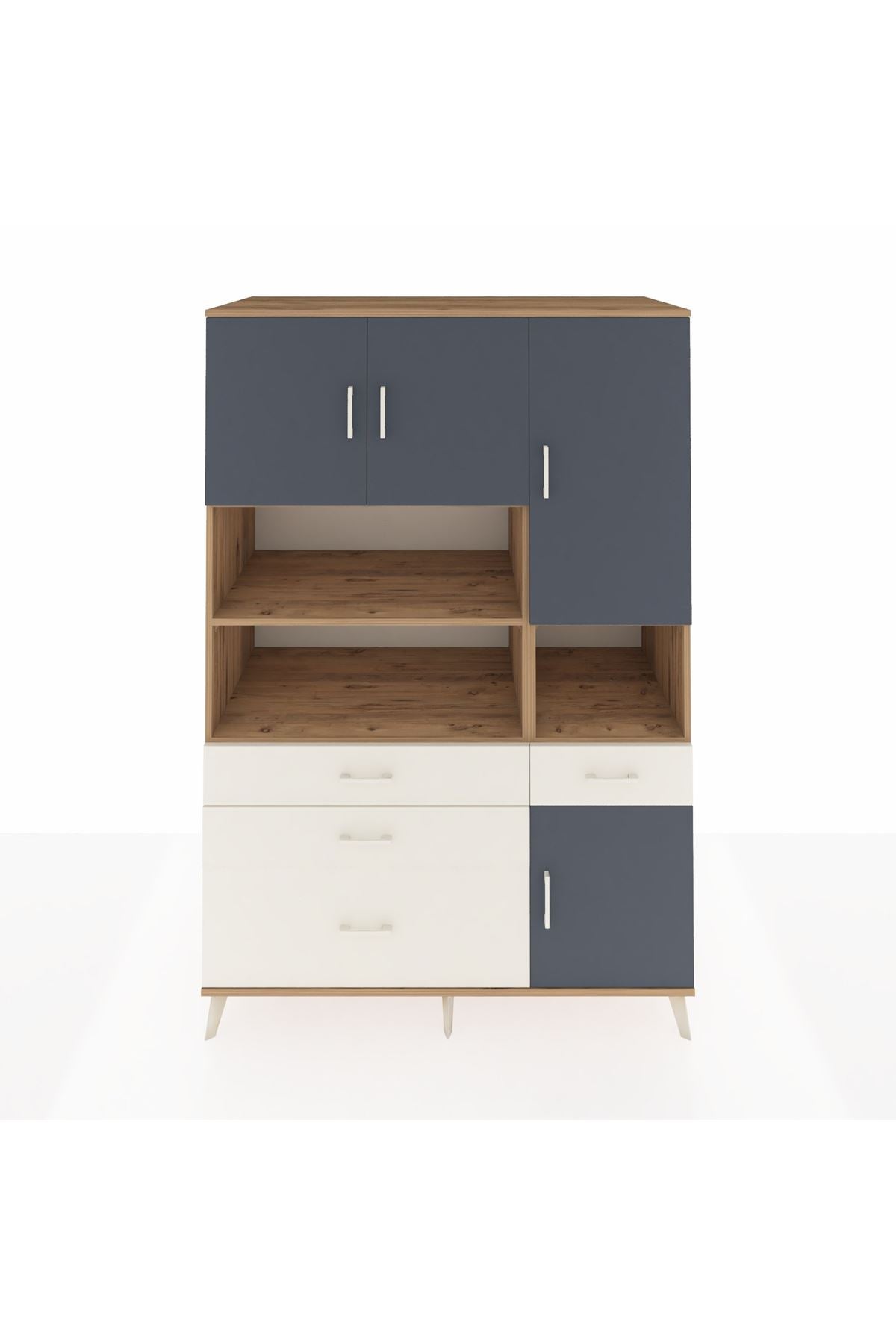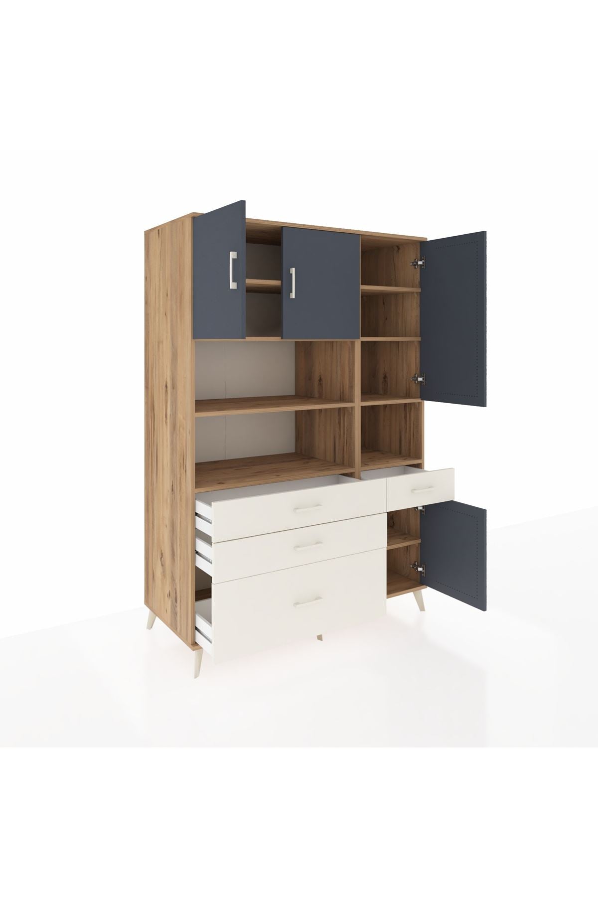 Kronos Dolap 9 Raflı 4 Çekmeceli 4 Kapaklı 132x59x195 Çam-Antrasit/Aytaşı