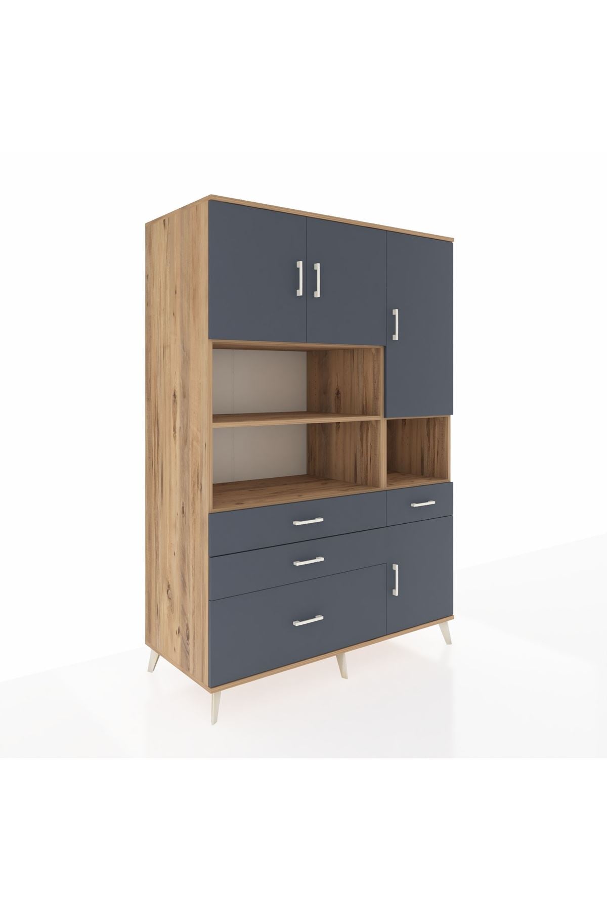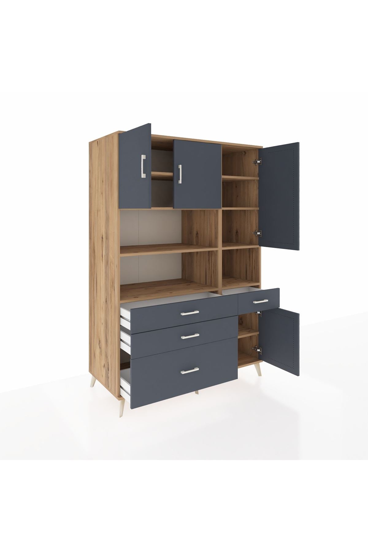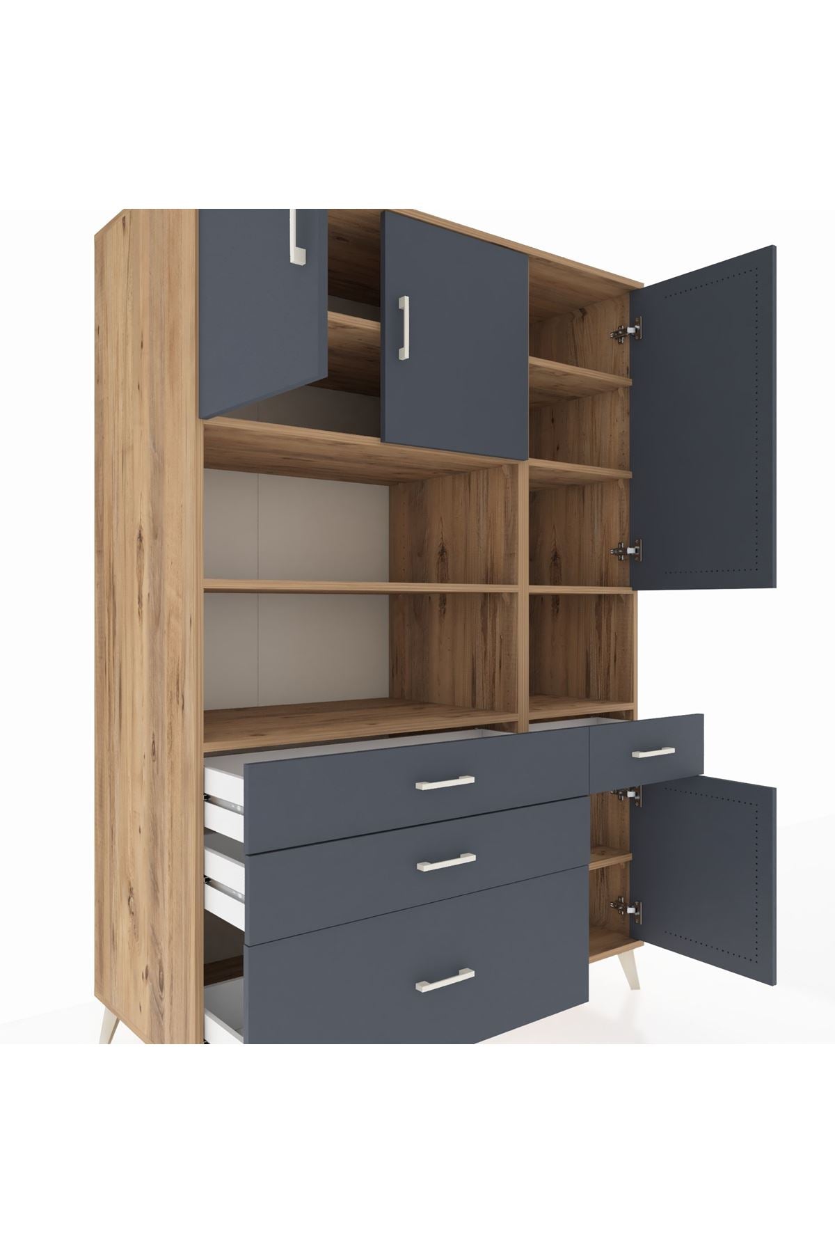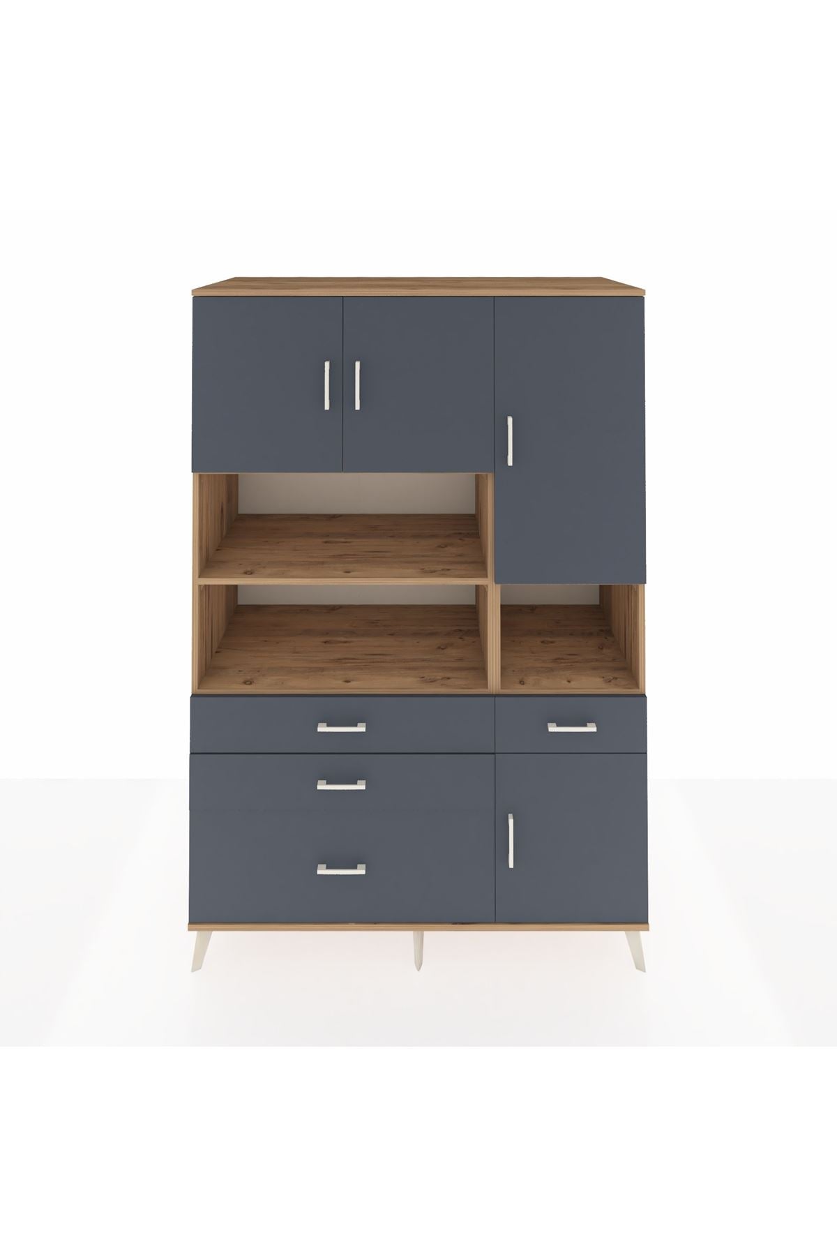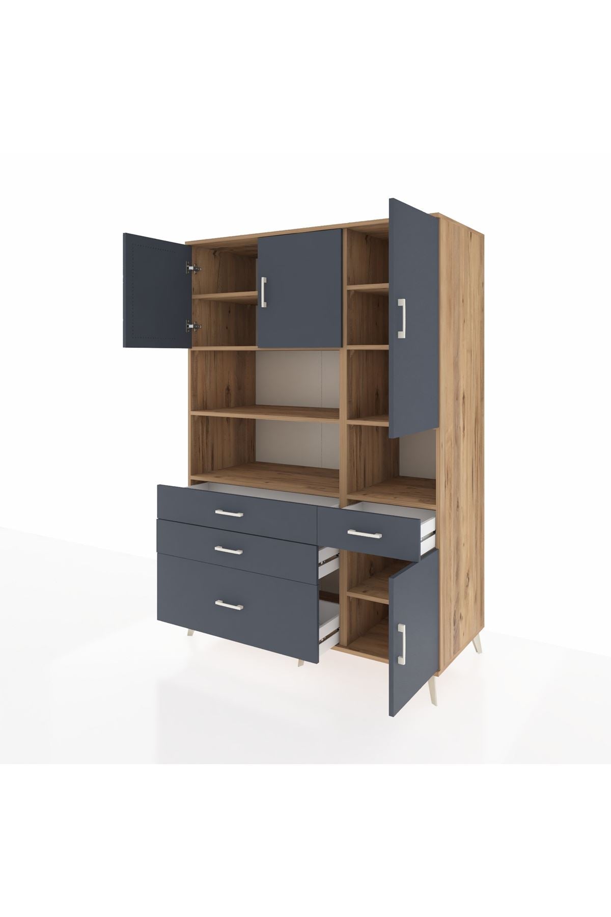 Kronos Dolap 9 Raflı 4 Çekmeceli 4 Kapaklı 132x59x195 Çam-Antrasit/Antrasit