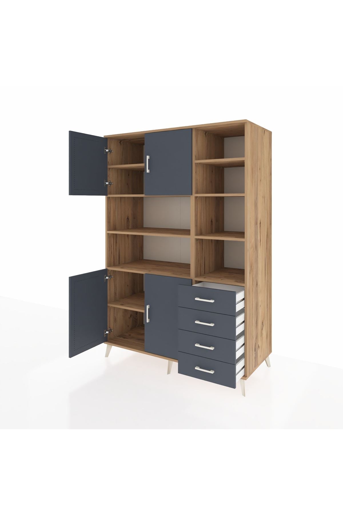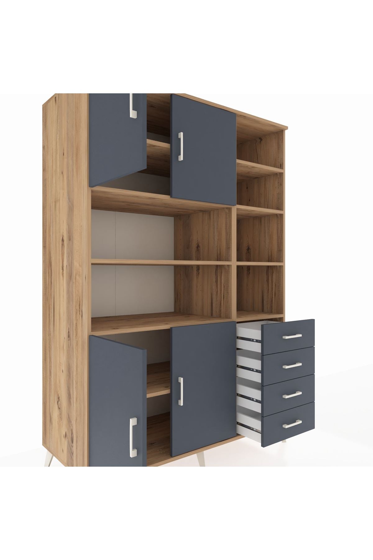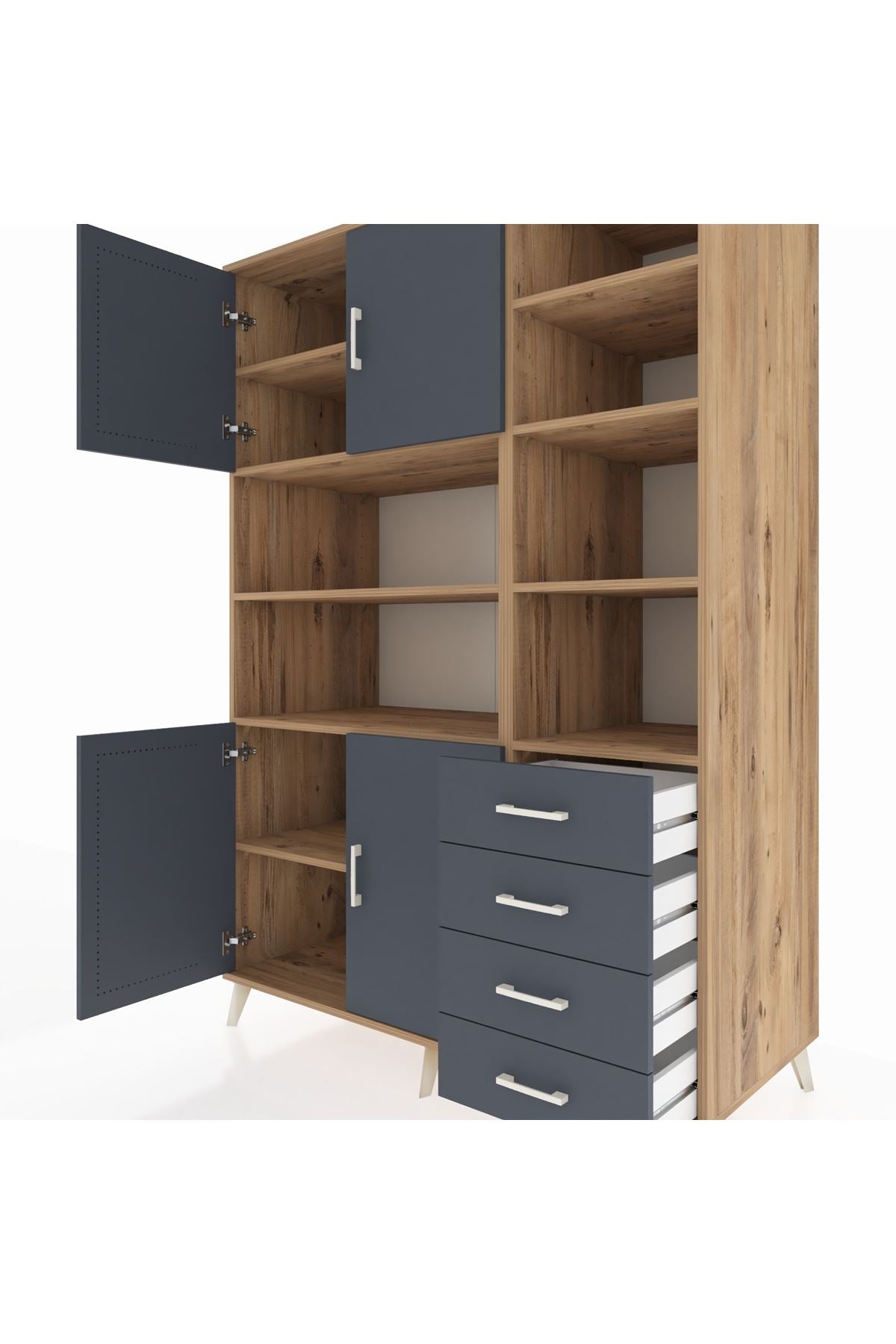 Kronos Dolap 9 Raflı 4 Çekmeceli 4 Kapaklı 132x59x195 Çam-Antrasit/Antrasit