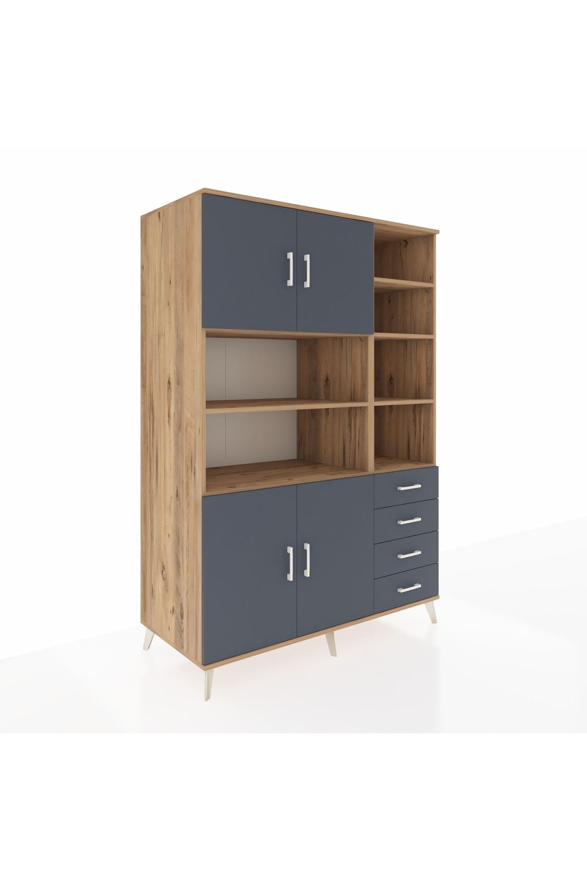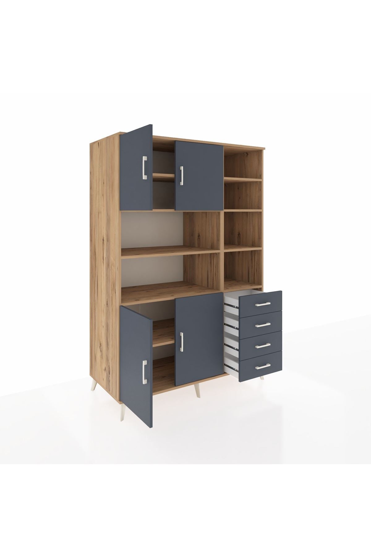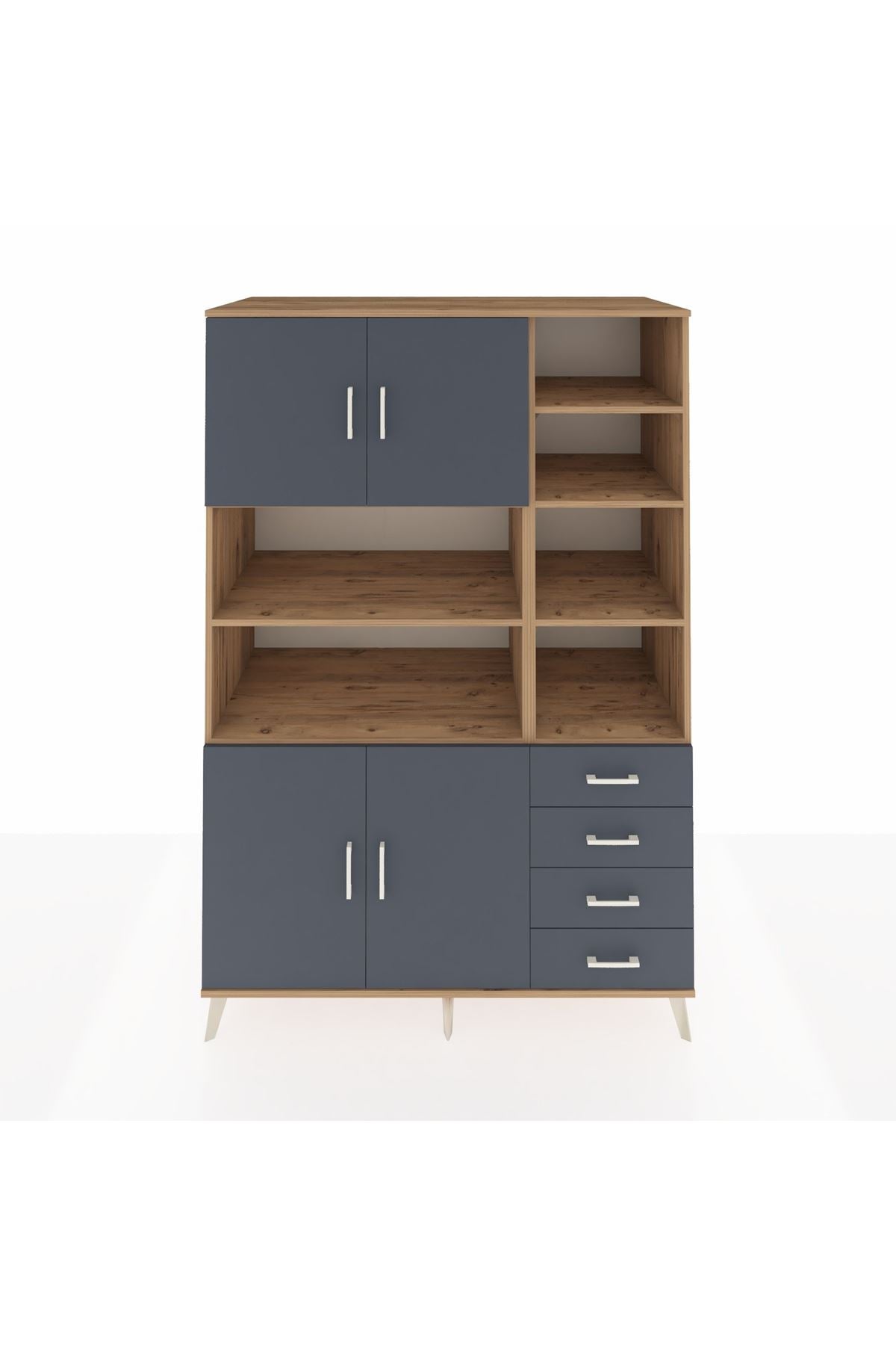Kronos Dolap 9 Raflı 4 Çekmeceli 4 Kapaklı 132x59x195 Çam-Antrasit/Antrasit