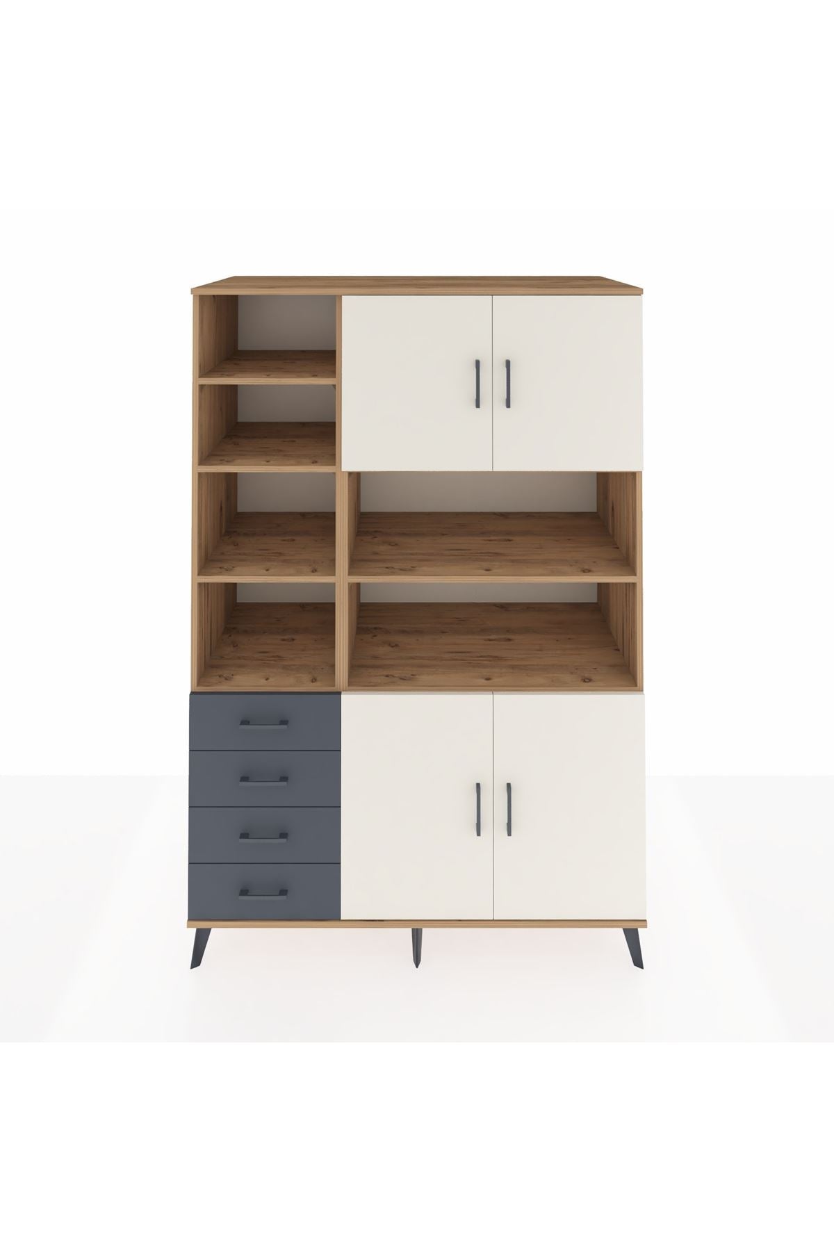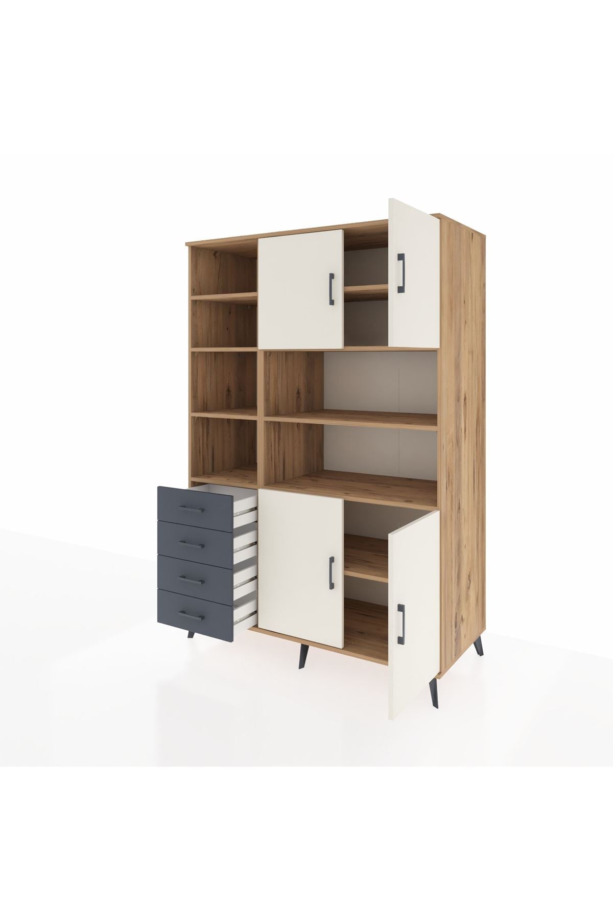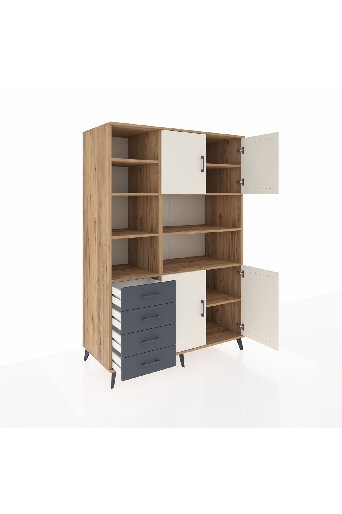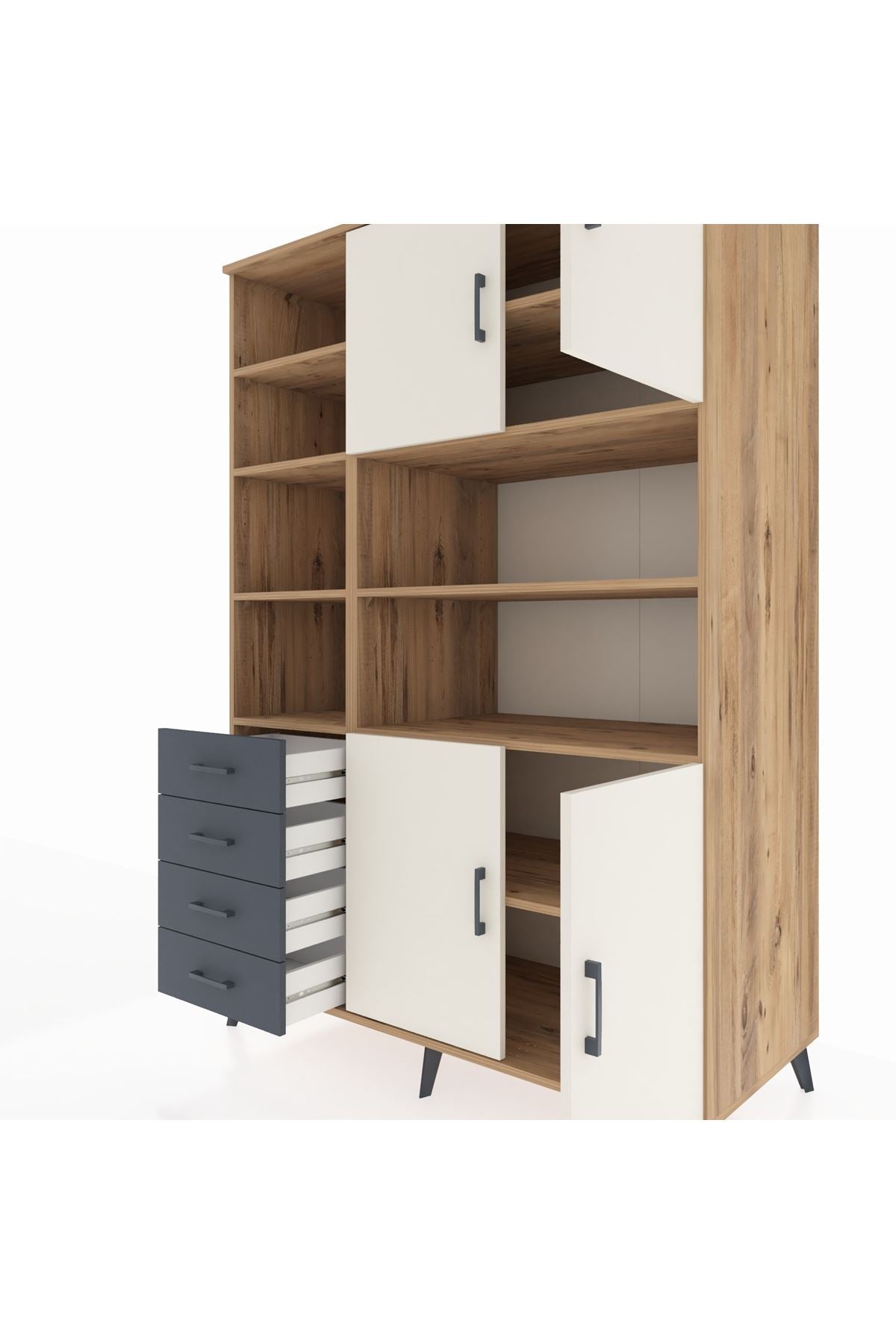 Kronos Dolap 9 Raflı 4 Çekmeceli 4 Kapaklı 132x59x195 Çam-Aytaşı/Antrasit