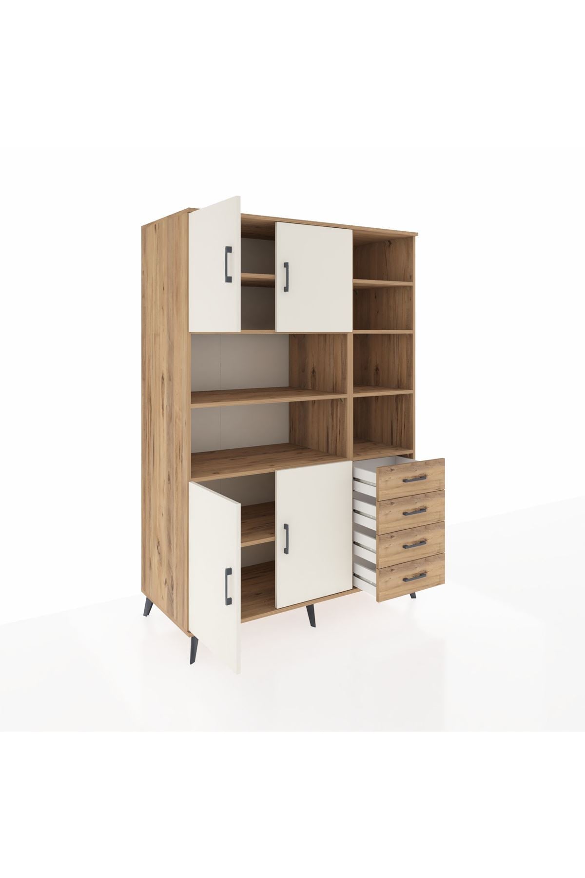 Kronos Dolap 9 Raflı 4 Çekmeceli 4 Kapaklı 132x59x195 Çam-Aytaşı/Çam