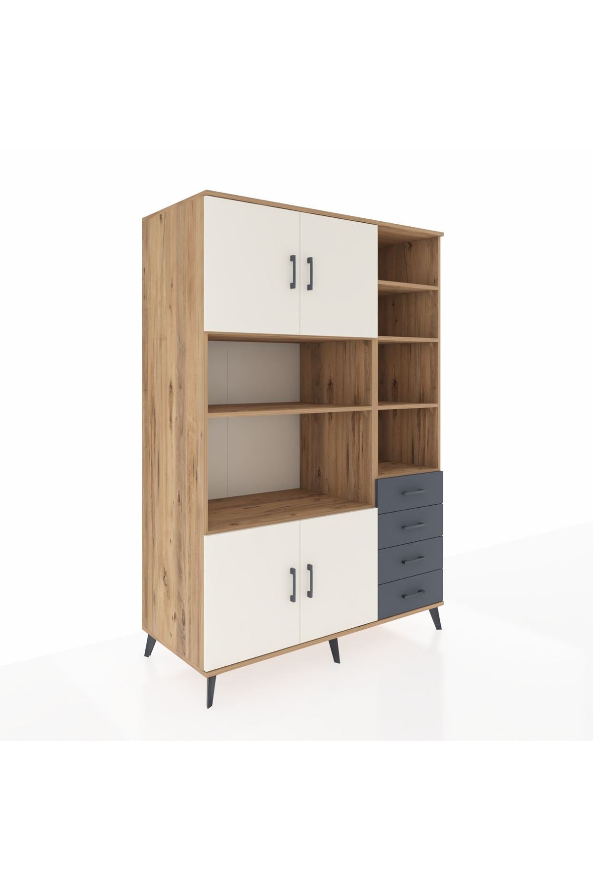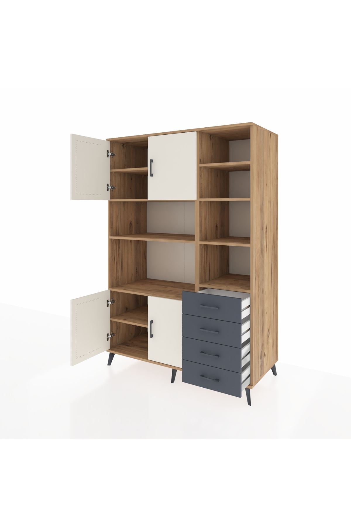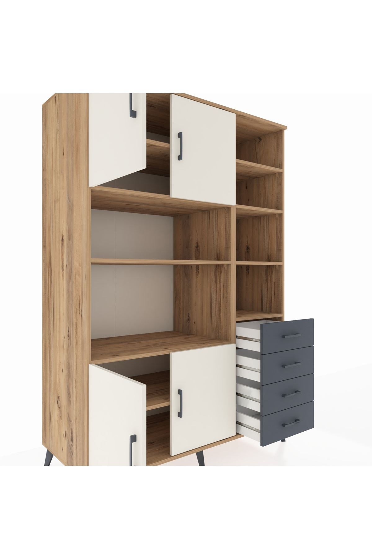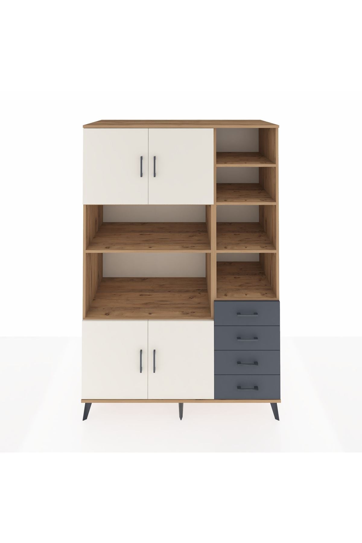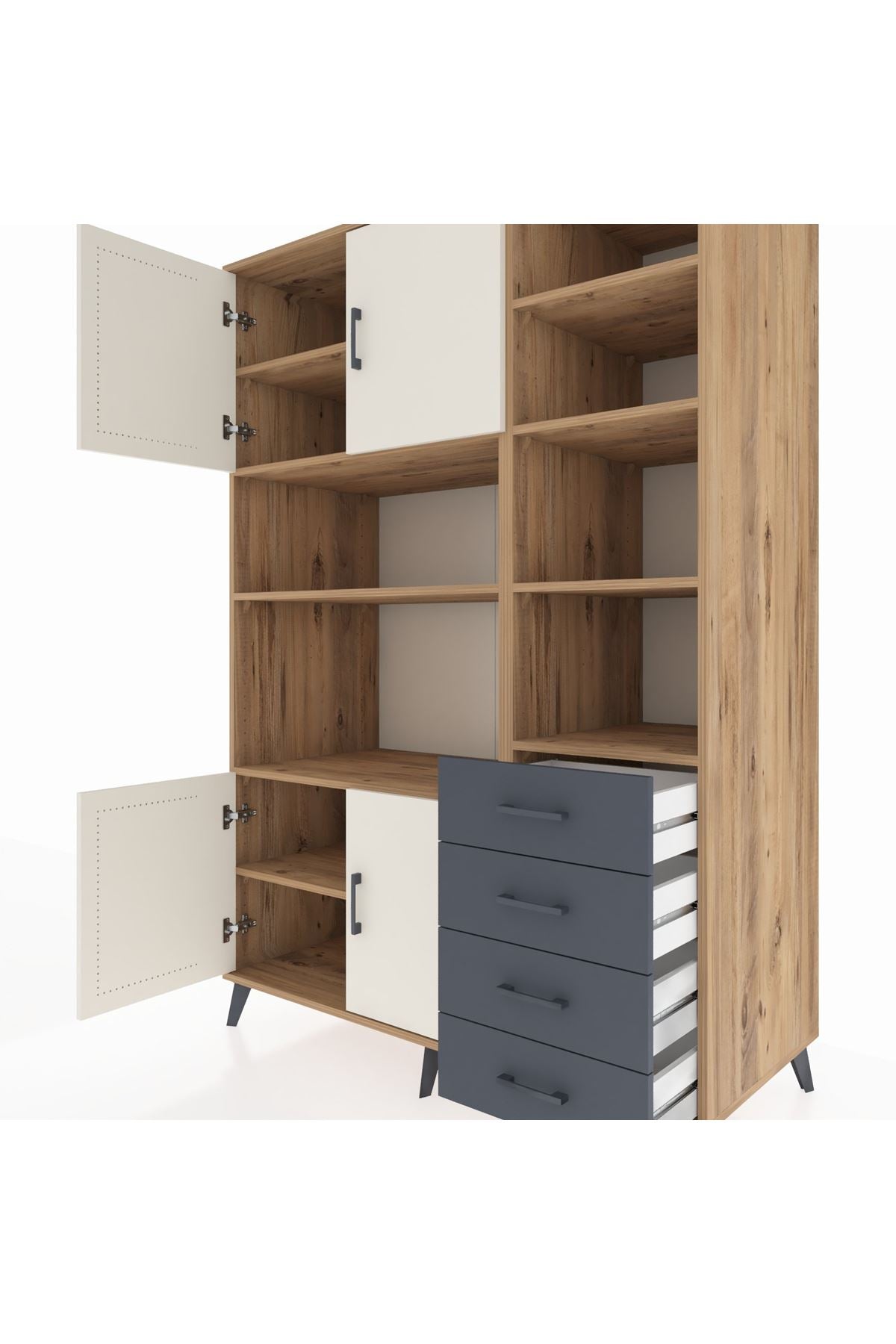 Kronos Dolap 9 Raflı 4 Çekmeceli 4 Kapaklı 132x59x195 Çam-Aytaşı/Antrasit