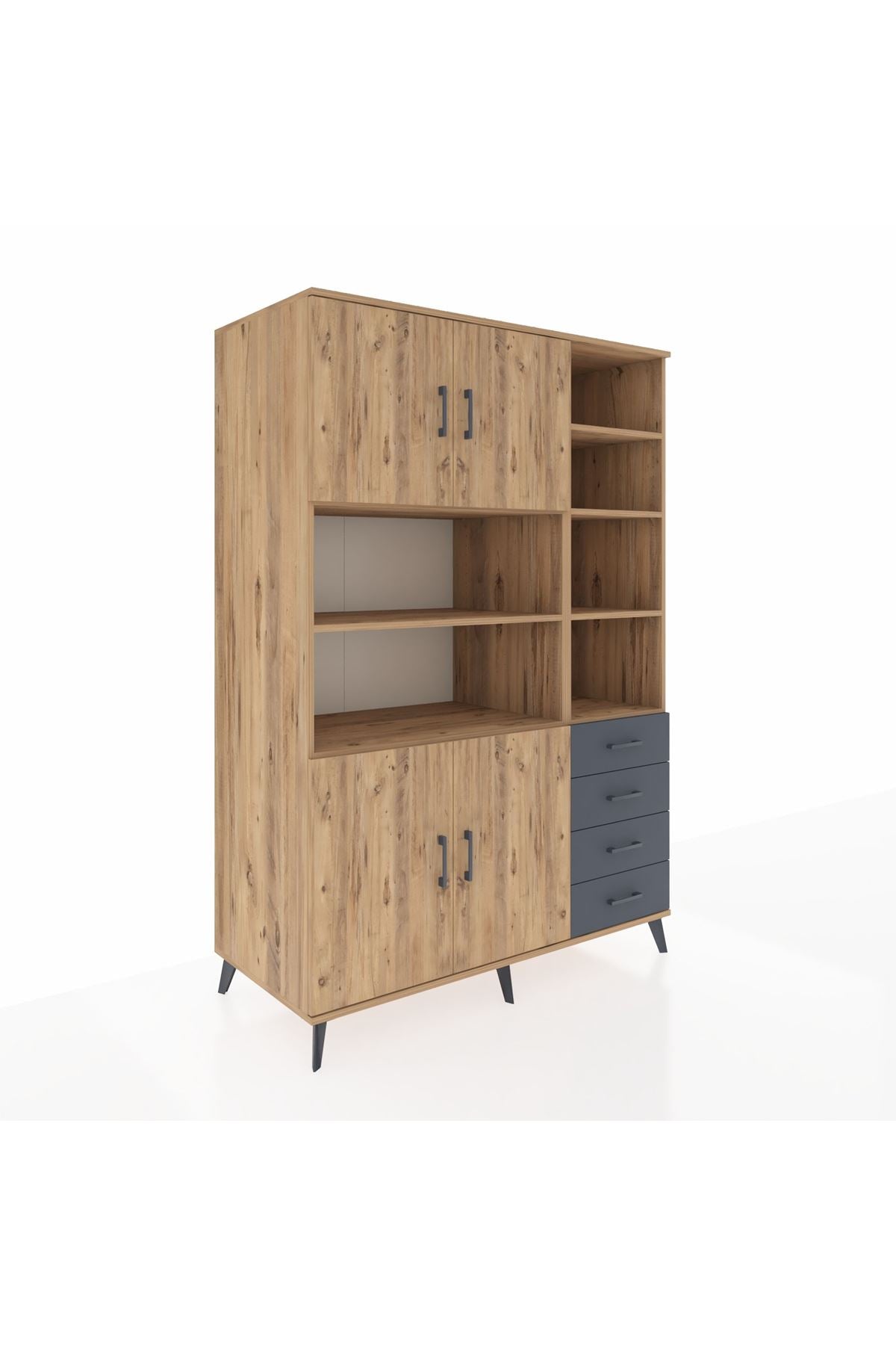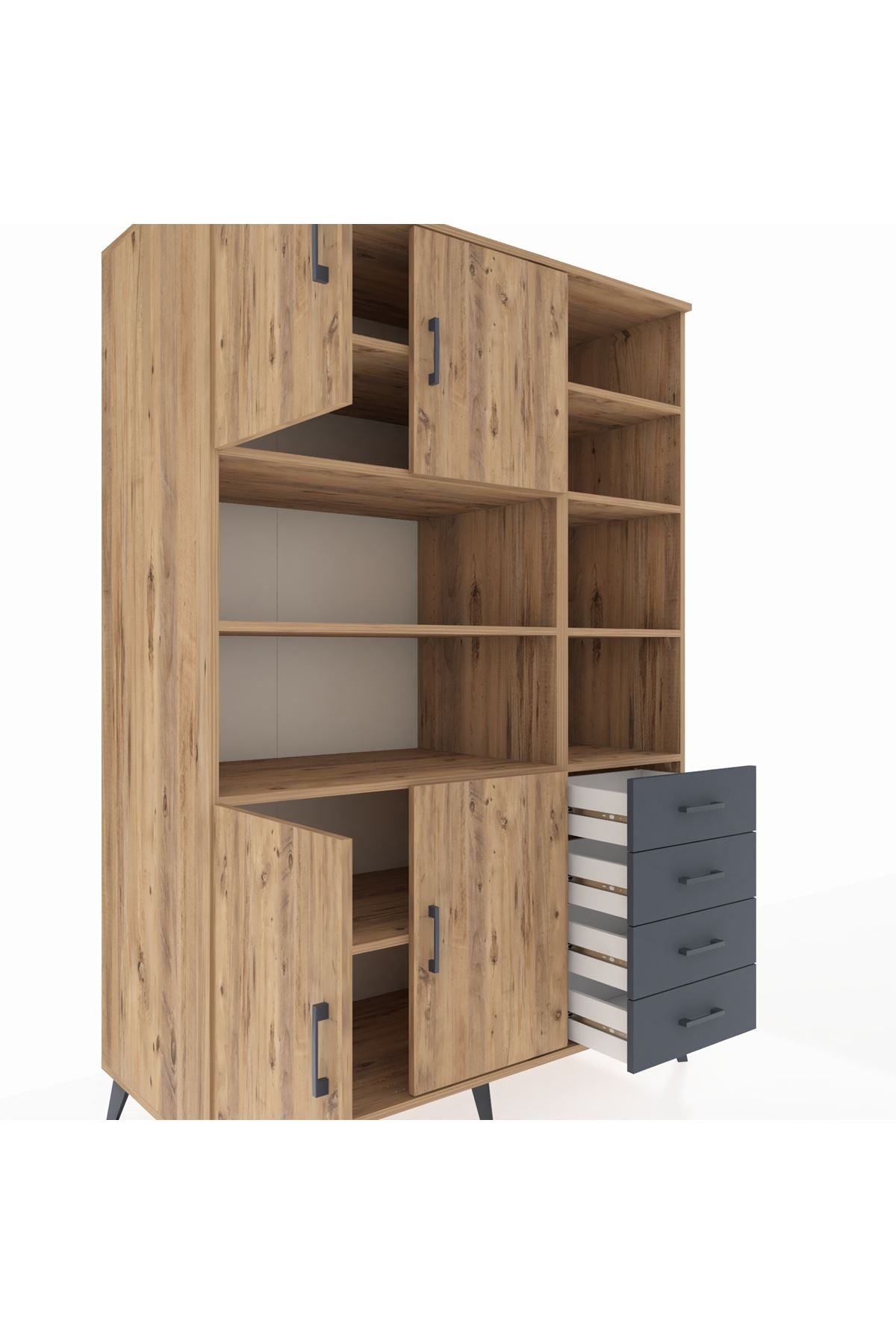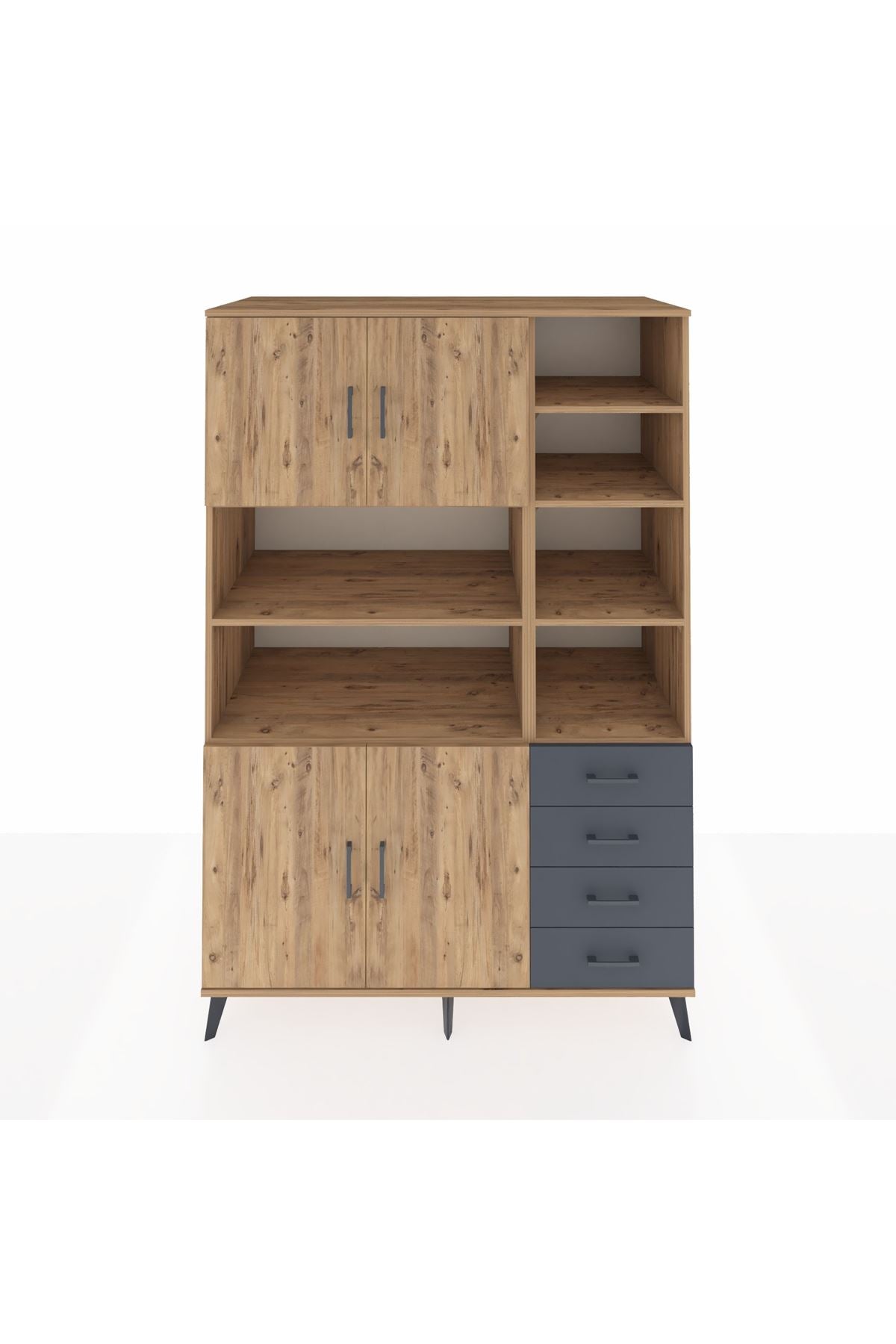 Kronos Dolap 9 Raflı 4 Çekmeceli 4 Kapaklı 132x59x195 Çam-Çam/Antrasit