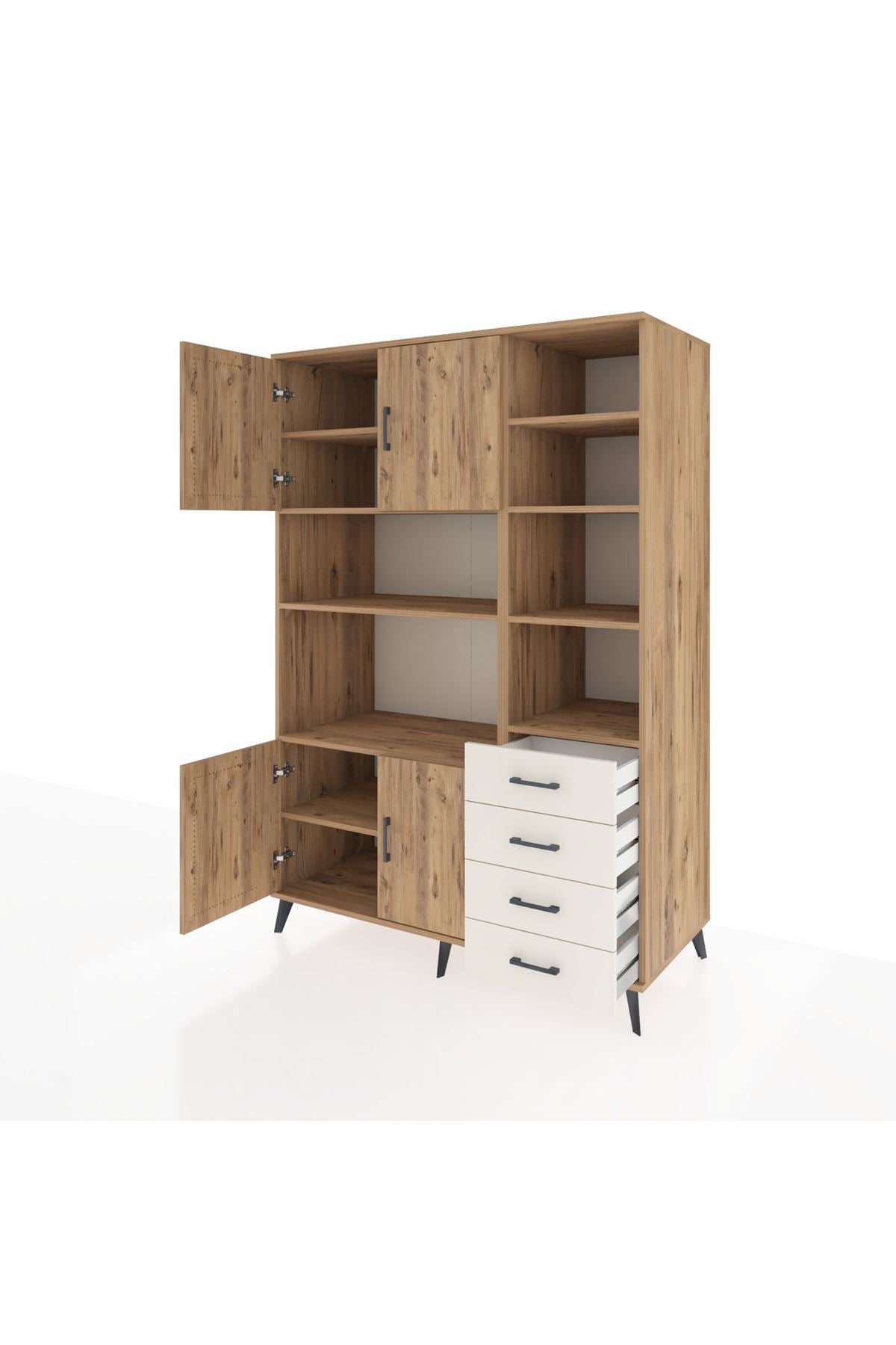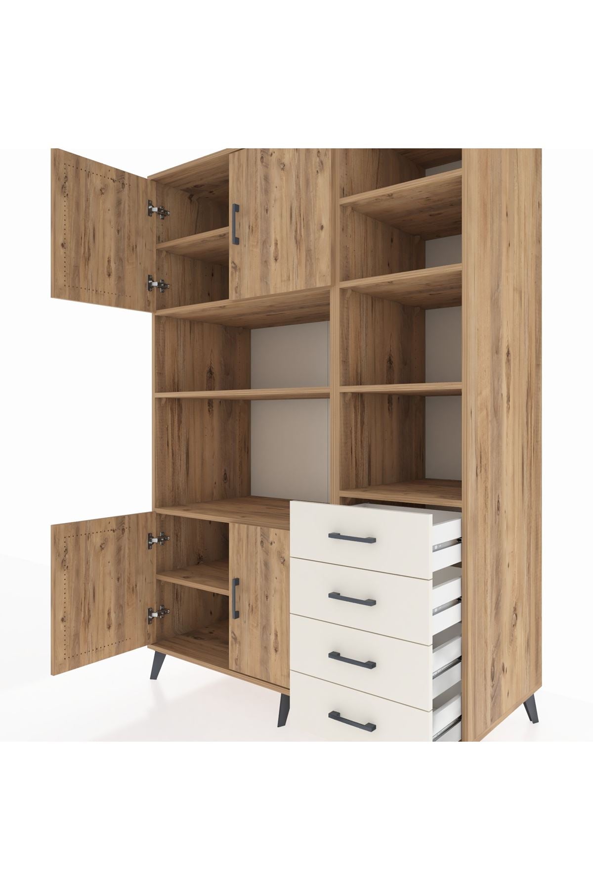 Kronos Dolap 9 Raflı 4 Çekmeceli 4 Kapaklı 132x59x195 Çam-Çam/Aytaşı