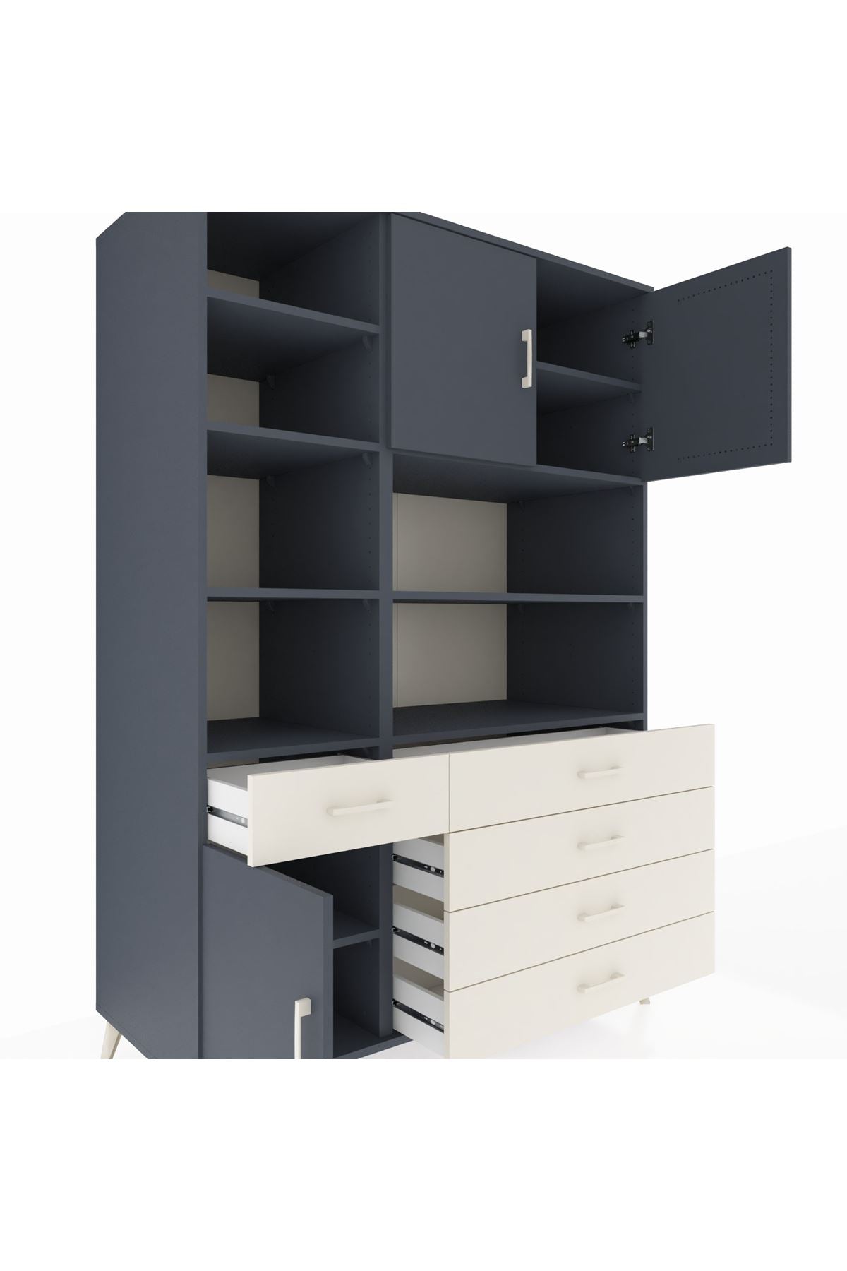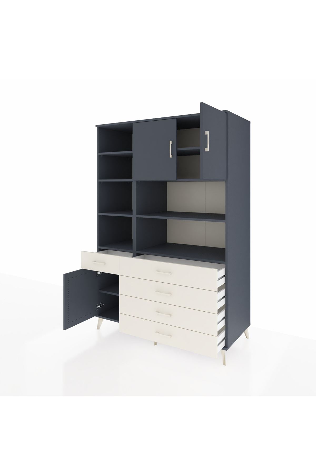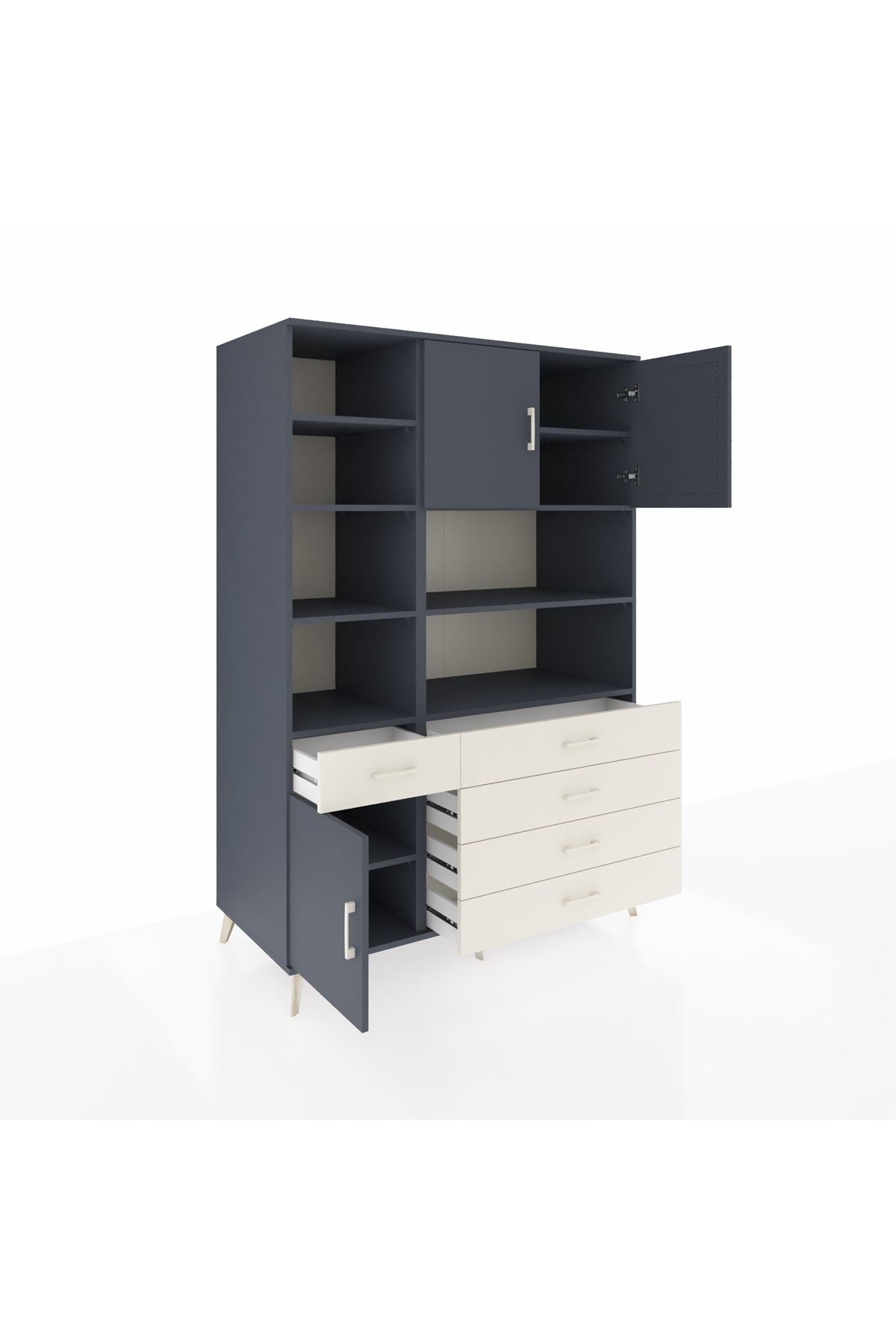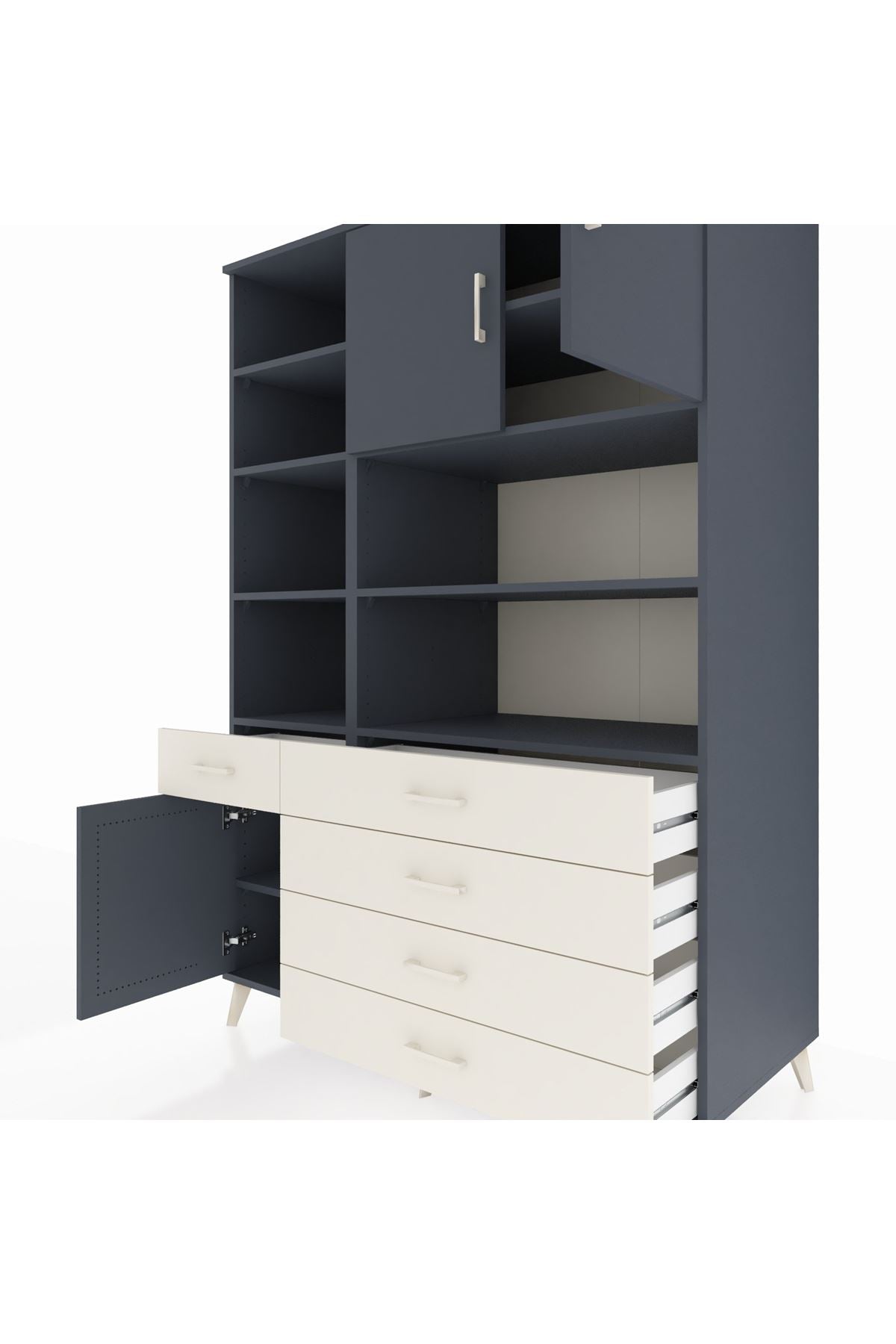 Tam 9 rafı, 5 geniş çekmecesi ve 3 sağlam kapağıyla evinizdeki her alanda ihtiyaçlarınıza kusursuz uyum sağlar