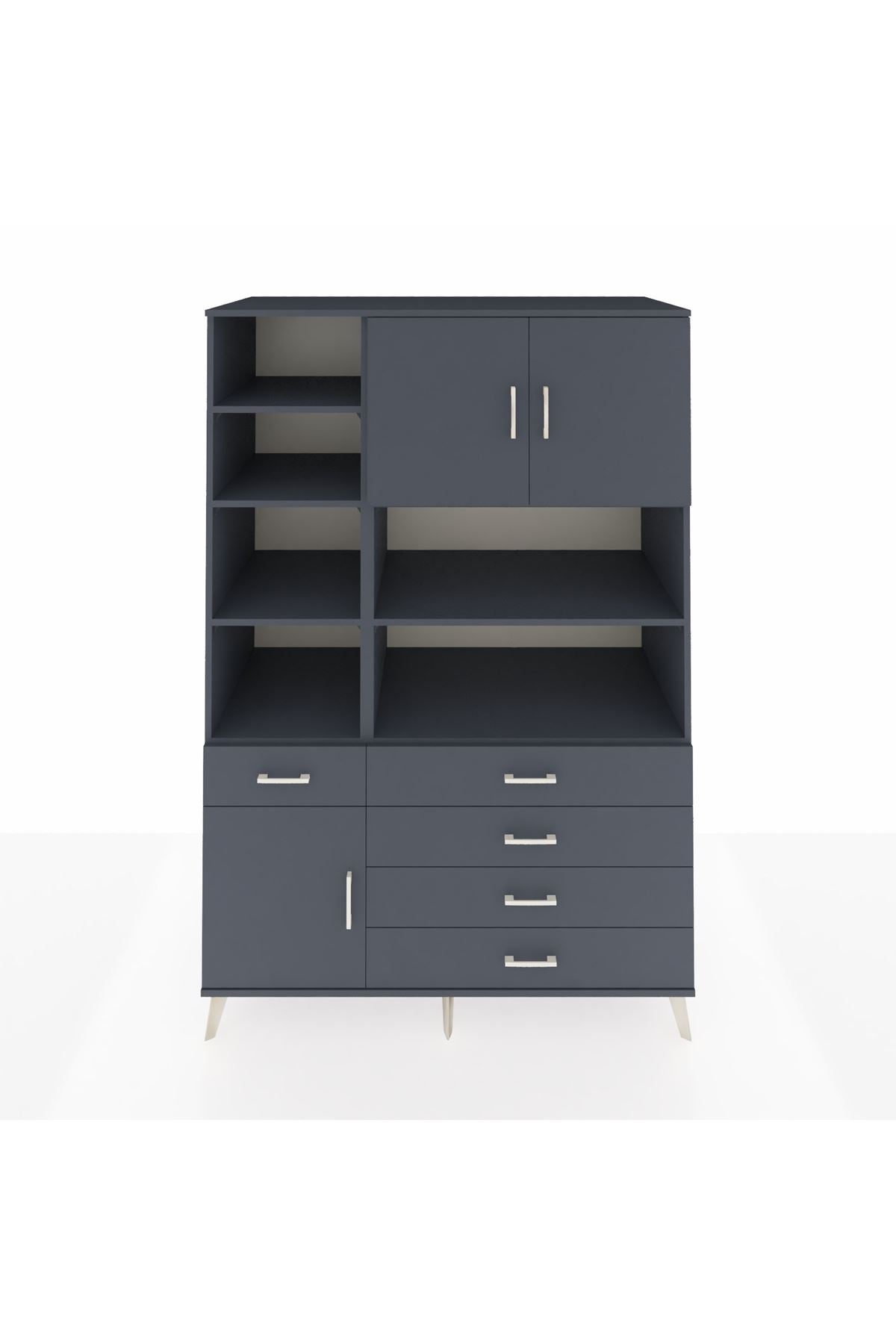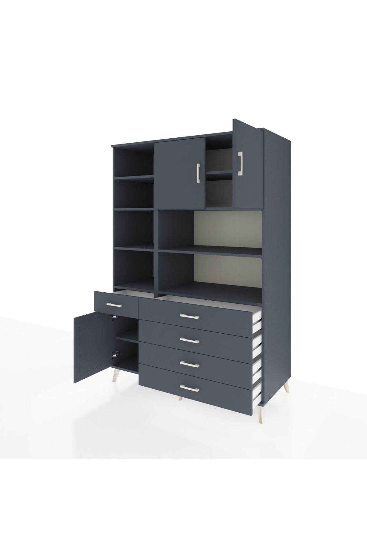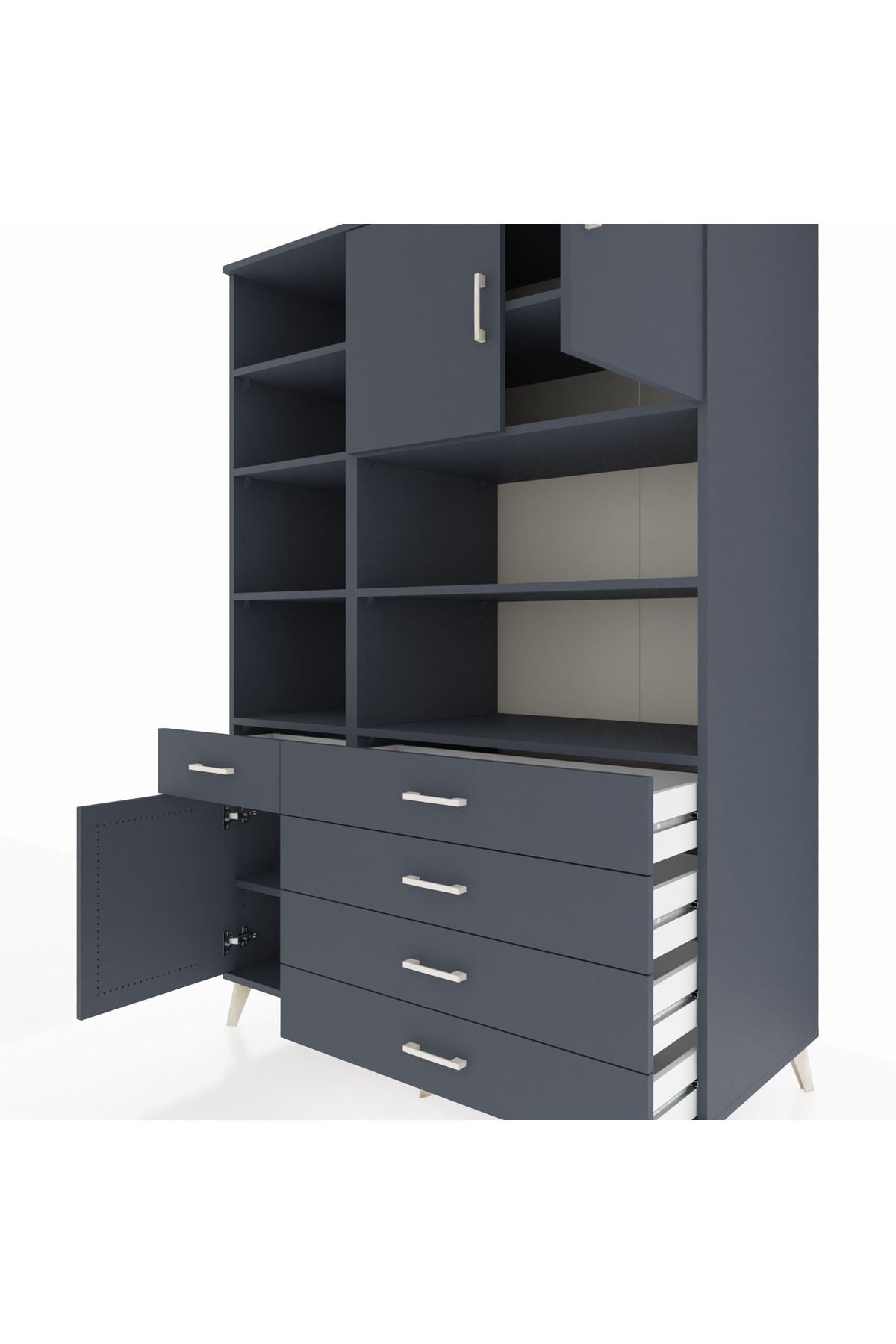 Kronos Dolap 9 Raflı 5 Çekmeceli 3 Kapaklı 132x59x195 Antrasit-Antrasit/Antrasit