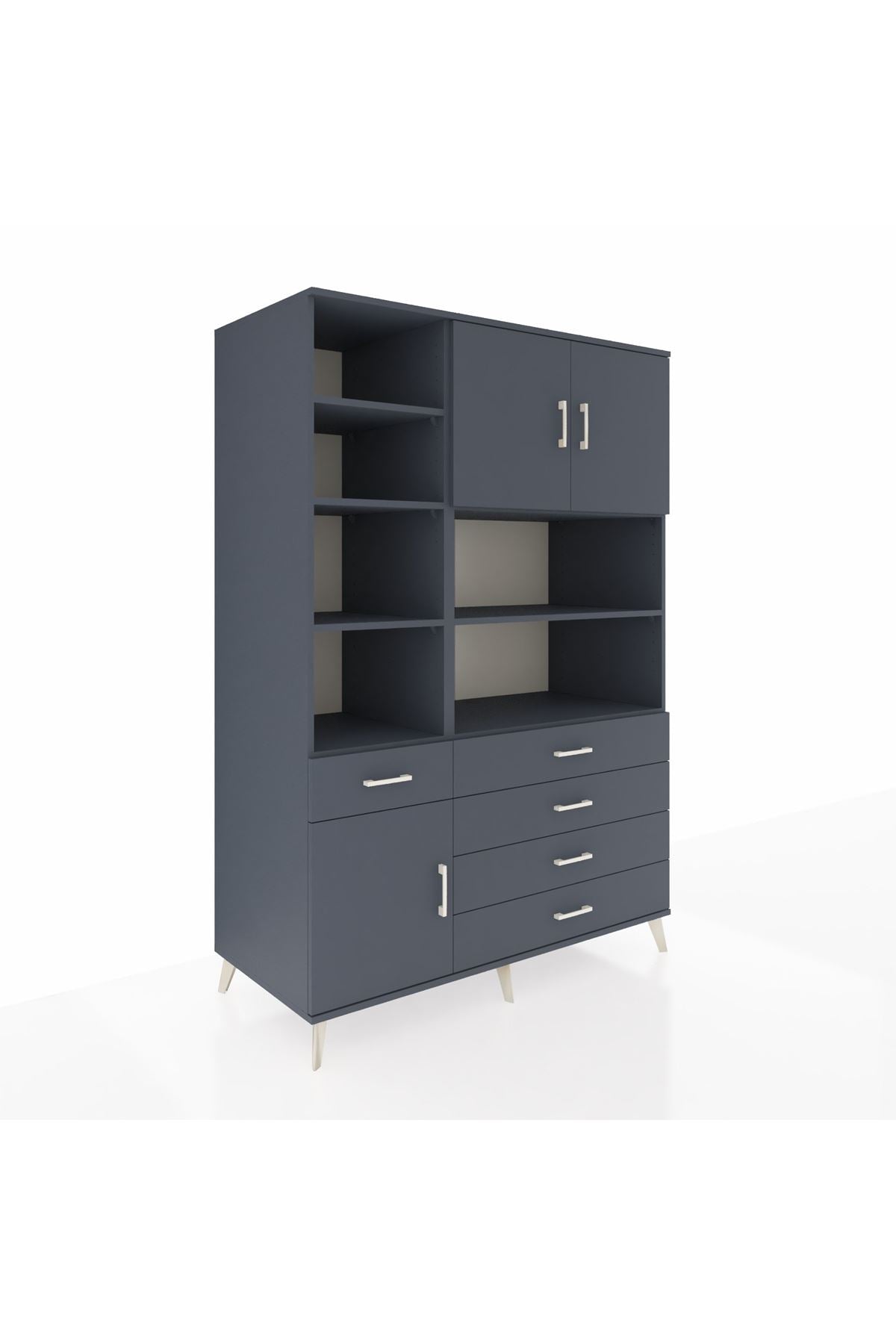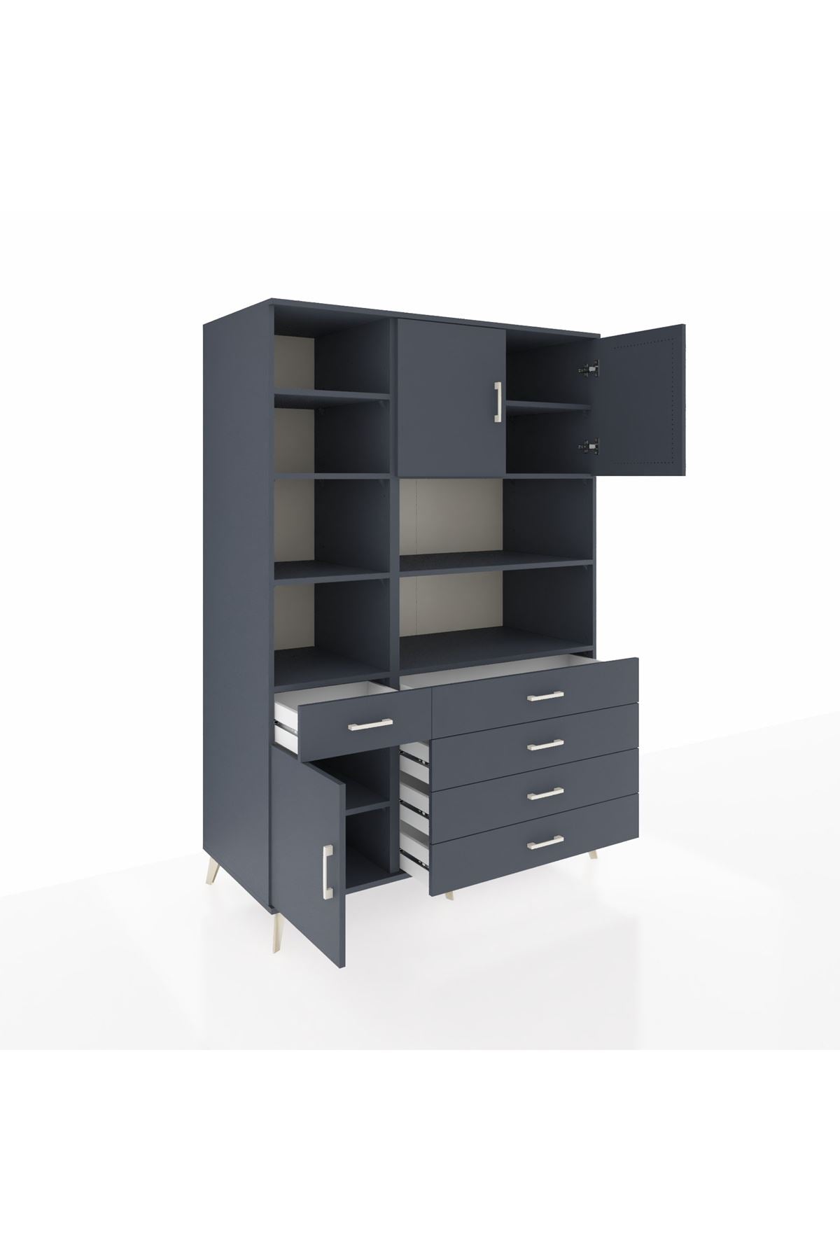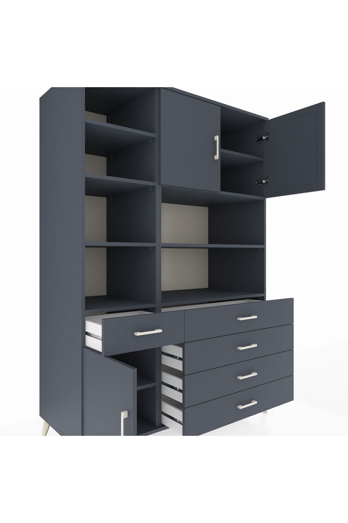 Kronos Dolap 9 Raflı 5 Çekmeceli 3 Kapaklı 132x59x195 Antrasit-Antrasit/Antrasit