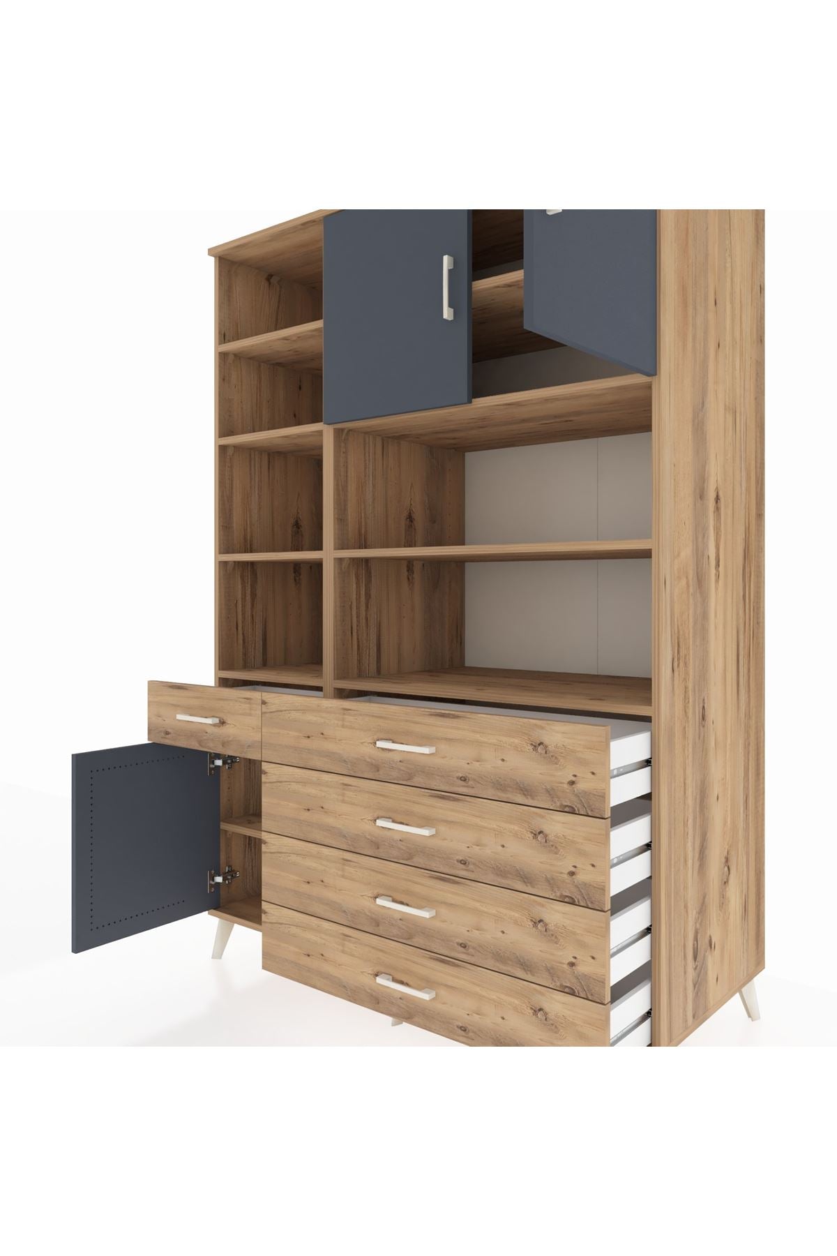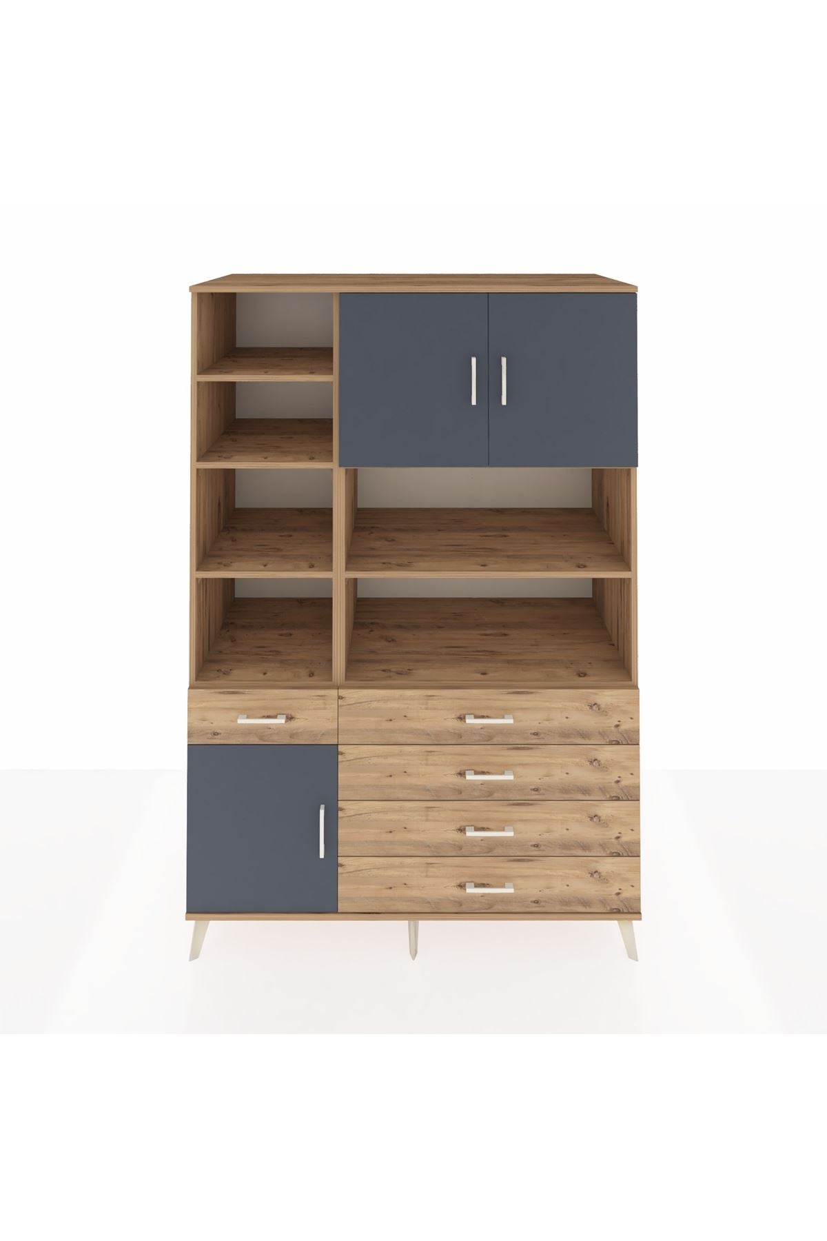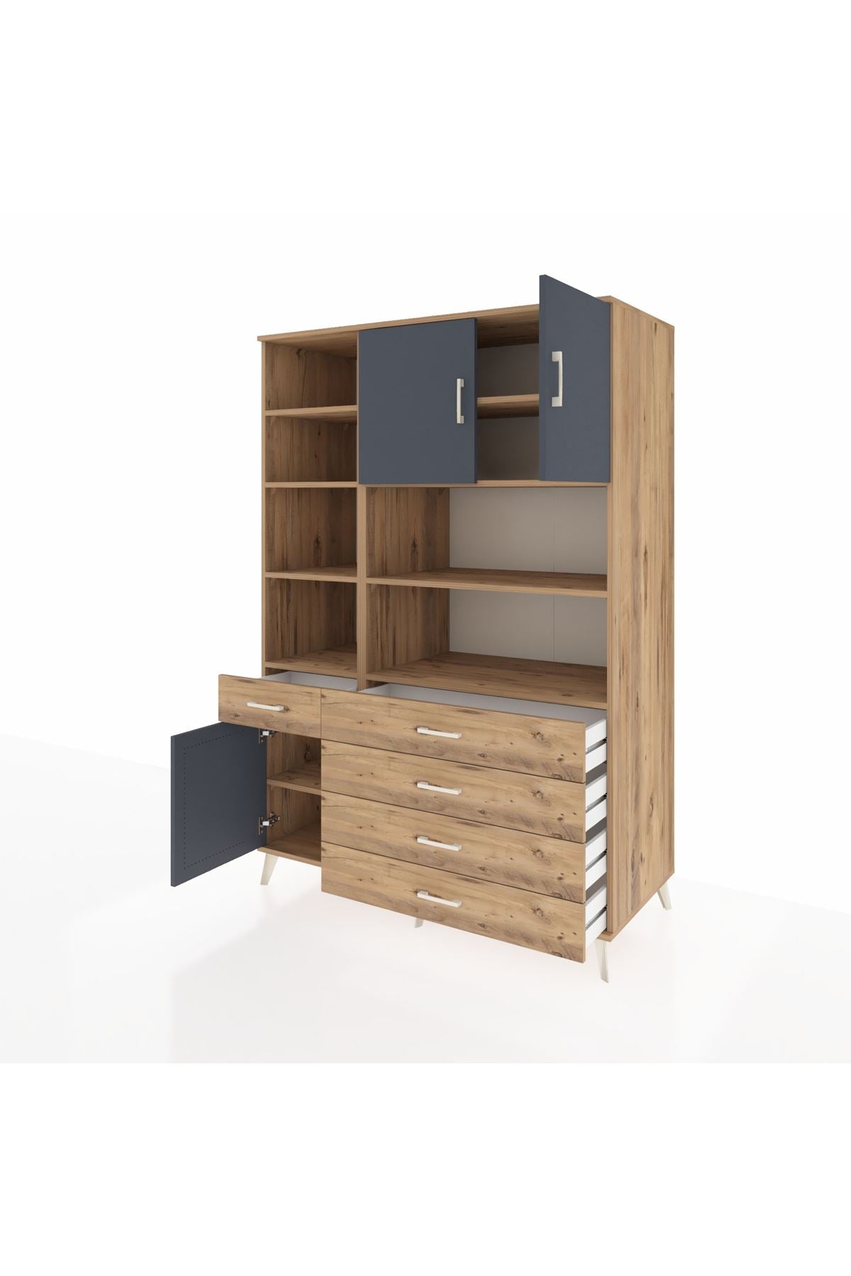 Kronos Dolap 9 Raflı 5 Çekmeceli 3 Kapaklı 132x59x195 Çam-Antrasit/Çam