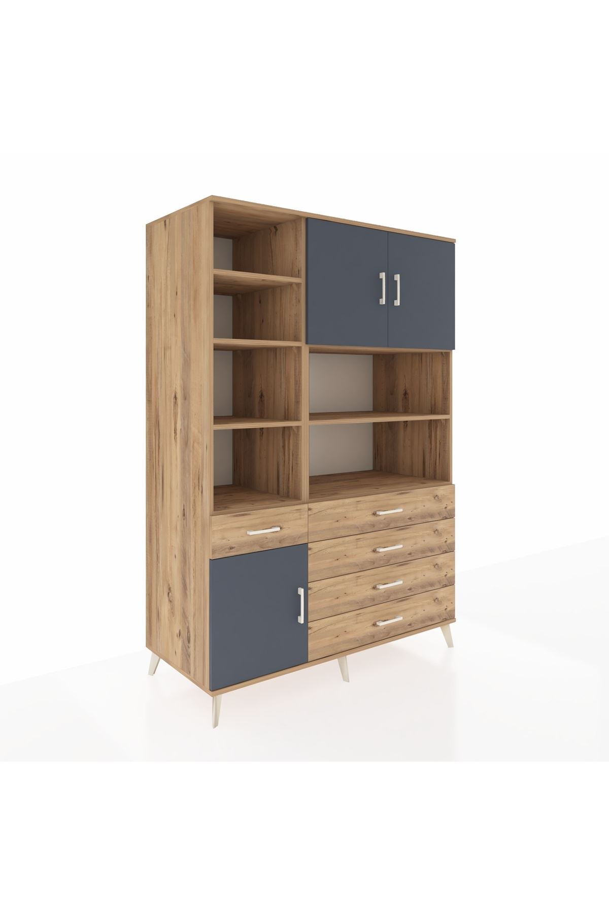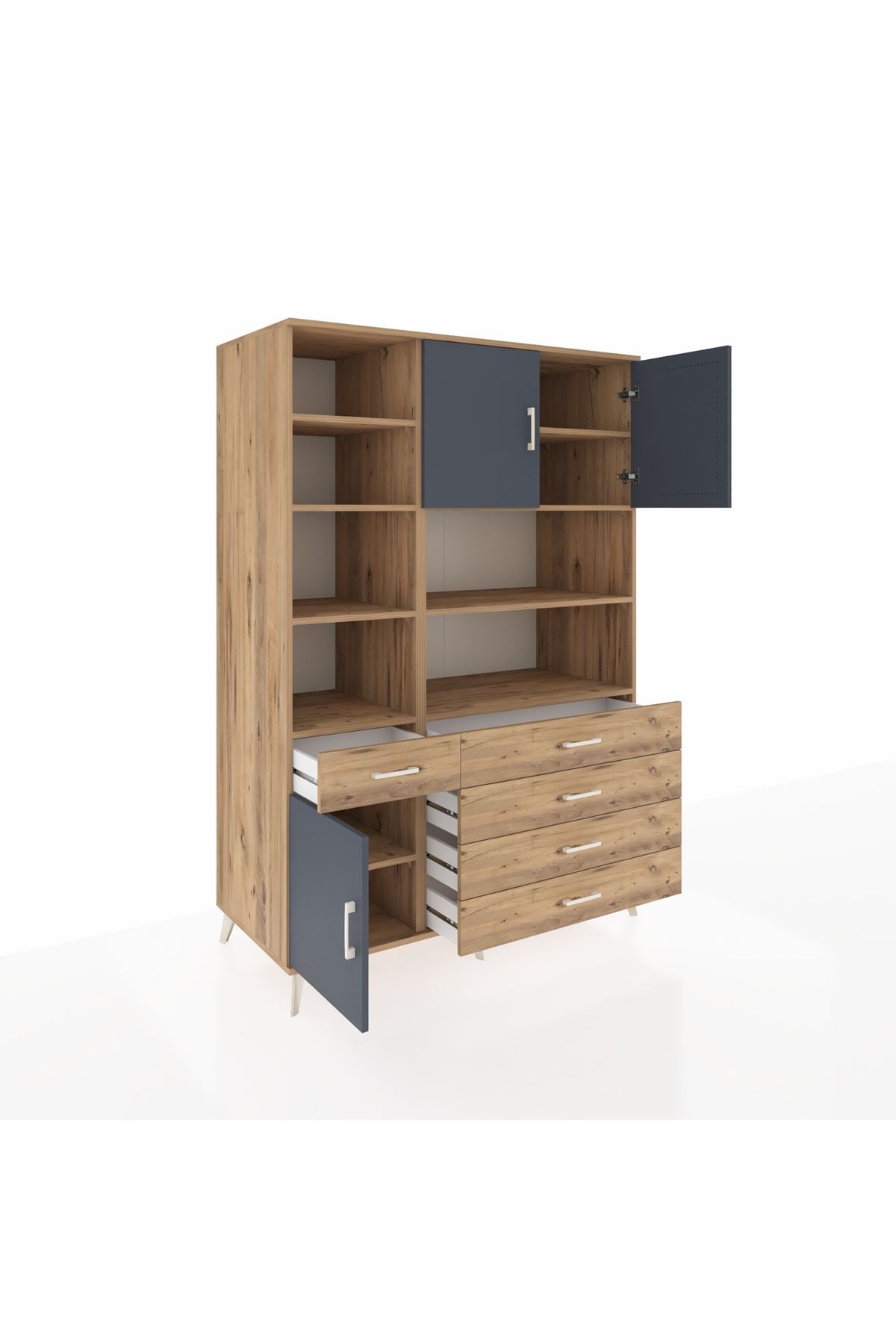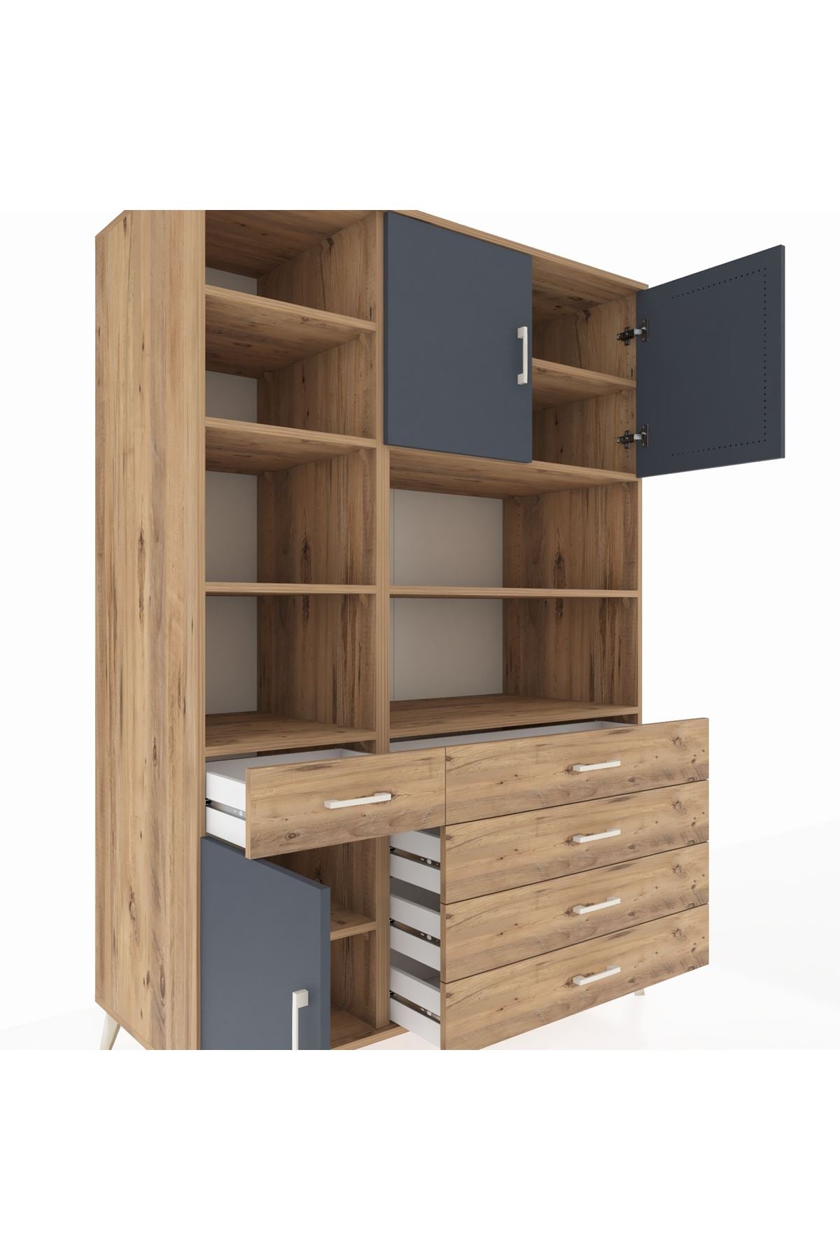 Kronos Dolap 9 Raflı 5 Çekmeceli 3 Kapaklı 132x59x195 Çam-Antrasit/Çam